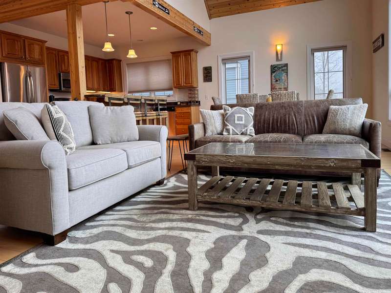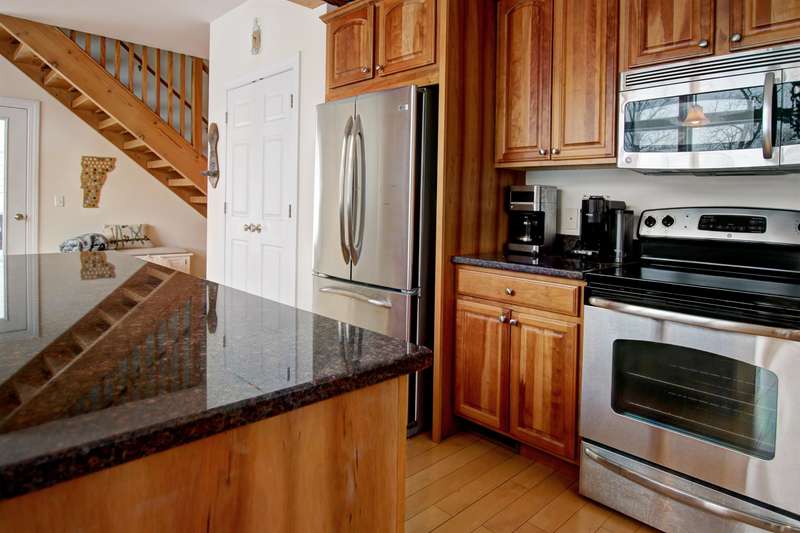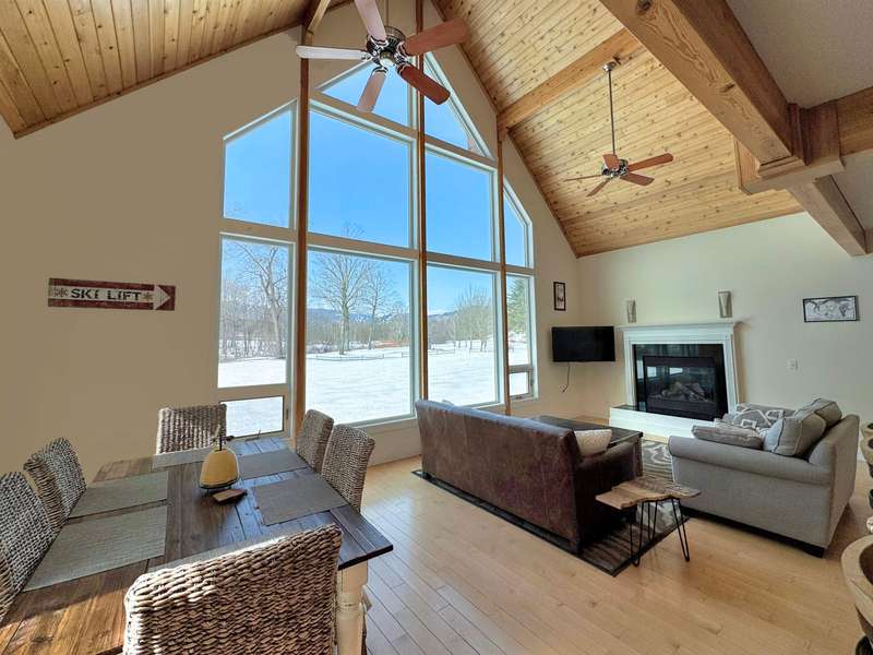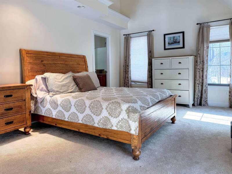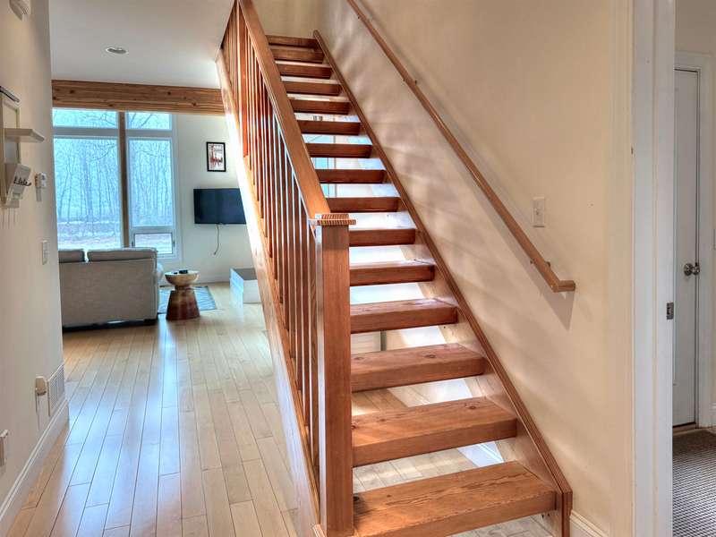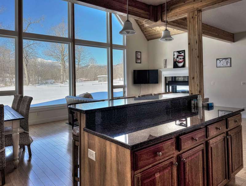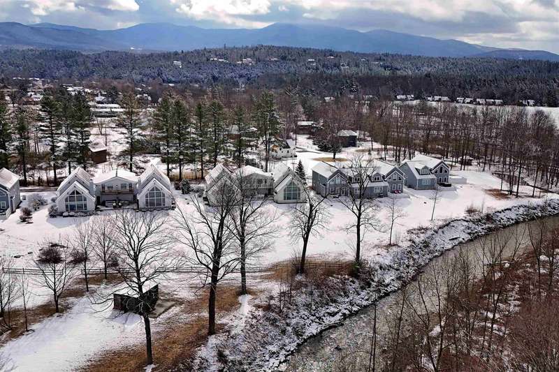 This well located Stowe 3 bedroom Condo is just off the Mountain Road and and borders the West Branch River with views toward Mt. Mansfield. It features a primary suite on the main level, a 2nd primary suite on the 2nd level and a studio with bedroom, kitchen and full bath on the 2nd level. The main living area has cathedral ceiling and large windows to take advantage of the views. Enjoy the open kitchen, dining and living room area with wood floors and a gas fireplace. The hot tub will come in handy after a long day of skiing at Stowe. The 2nd floor loft opens up to the main level and has an office area. The studio can be closed off from the main part of the condo. The basement level is finished and can be used as a family room. Owners may have up to 2 domestic pets and may use the property as a rental. Another plus is the low HOA fees - just $3,500 annually for plowing, landscaping, mowing and trash. Also enjoy the attached one car garage. Furnished and ready to go for ...