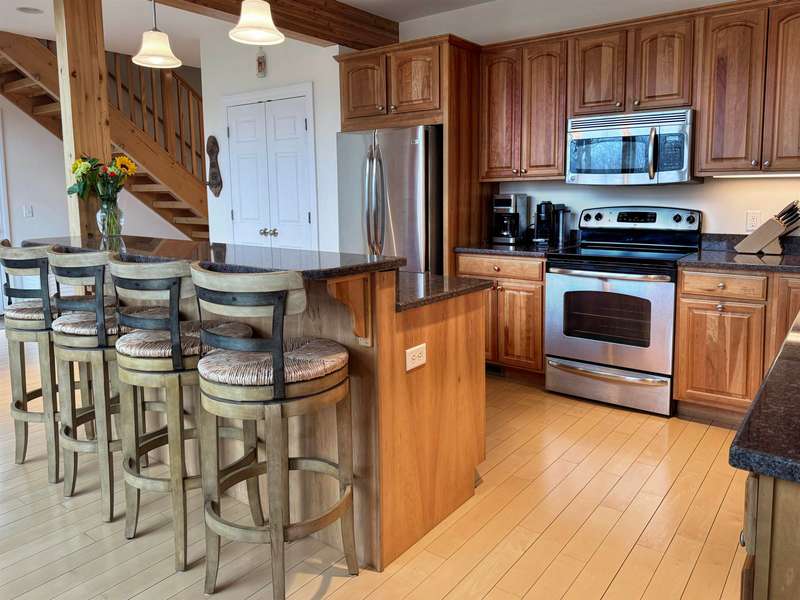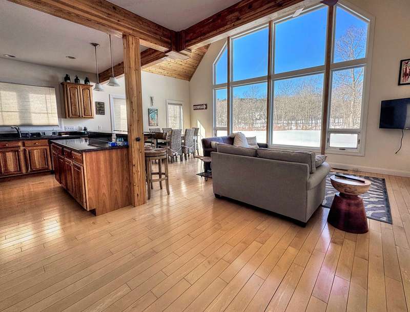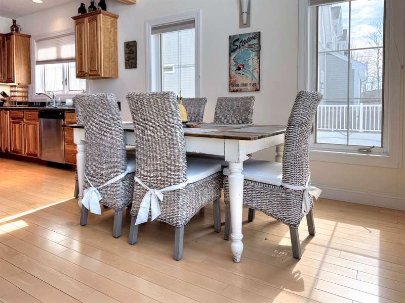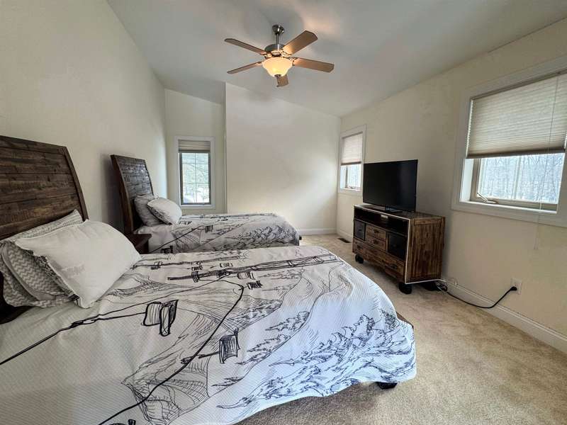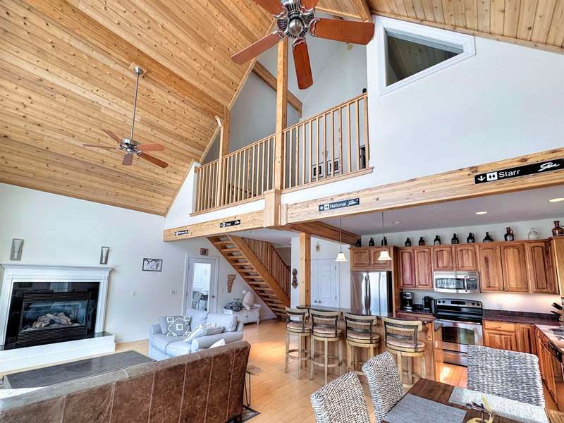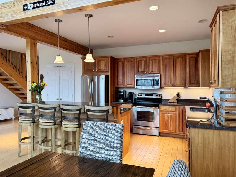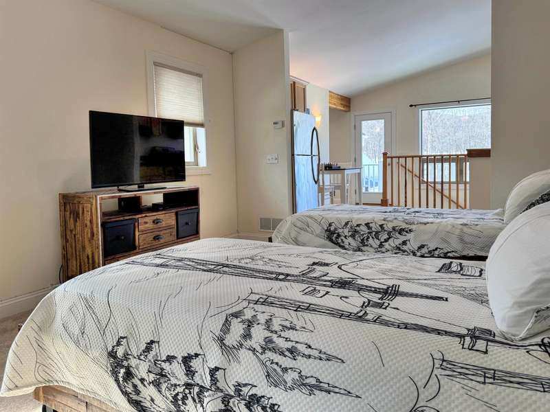 This well located Stowe 3 bedroom Condo is just off the Mountain Road and and borders the West Branch River with views toward Mt. Mansfield. It features a primary suite on the main level, a 2nd primary suite on the 2nd level and a studio with bedroom, kitchen and full bath on the 2nd level. The main living area has cathedral ceiling and large windows to take advantage of the views. Enjoy the open kitchen, dining and living room area with wood floors and a gas fireplace. The hot tub will come in handy after a long day of skiing at Stowe. The 2nd floor loft opens up to the main level and has an office area. The studio can be closed off from the main part of the condo. The basement level is finished and can be used as a family room. Owners may have up to 2 domestic pets and may use the property as a rental. Another plus is the low HOA fees - just $3,500 annually for plowing, landscaping, mowing and trash. Also enjoy the attached one car garage. Furnished and ready to go for ...