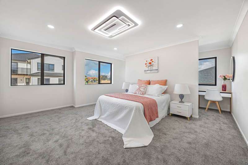 Welcome to this stunning, architecturally designed home offering the ultimate in space, style, and convenience – ideal for large or extended families. Set on a 451m² freehold section with an impressive 490m² floor area, this brand new home features 9 bedrooms, including 4 master suites, and 4 spacious living areas spread across multiple levels. The layout is thoughtfully designed with modern family living in mind. At its heart is a sleek open-plan kitchen complete with a scullery, perfect for everyday cooking and entertaining. You'll also find two bar areas, a separate office, making it ideal for working or studying from home. Enjoy year-round comfort and style with electric fireplaces, feature walls with built-in storage, and four private balconies showcasing elevated city views. The two top-floor master suites offer a peaceful retreat with generous walk-in wardrobes, makeup/study zones, and panoramic views – perfect for relaxing at the end of the day. Zoned for top local schools – Mission Heights Primary, Junior College, and Ormiston Senior College – and just a short walk to Ormiston Town Centre, this location is second to none. Contact us today to book a private viewing – this exceptional home won't last long!