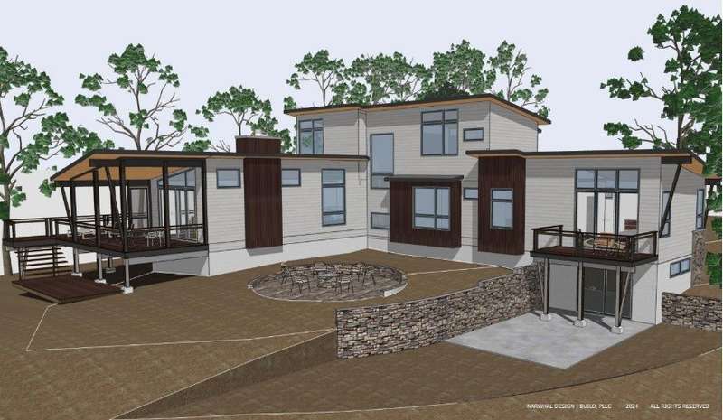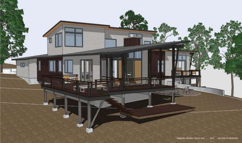 *NOW under construction* Located in one of the wooded high valleys of Bright's Creek Golf/Equestrian gated community this new construction project is a collaboration from Modern Mountain Builders and Narwhal Design, blending contemporary aesthetics and functional design to create a serene mountain home. This home provides main level living with contiguous Kitchen/Dining/Living wing with large screen porch and deck, two bedrooms with en suite baths, pantry, mudroom and two-car garage. The upper level features two additional bedrooms with en suite baths and an office nook. An unfinished lower level offers the opportunity for a large rec room/home theater, additional full bath and access to an outdoor patio. The gentle sloping lot allows ample space for outdoor living & entertaining. Once completed it will be NC GreenBuilt Certified, low maintenance finishes, wood timber & stone accents, large glazing for views & light and built-in cabinetry round out this home with simple elegant detail.