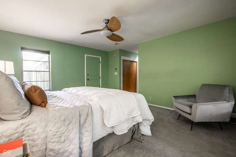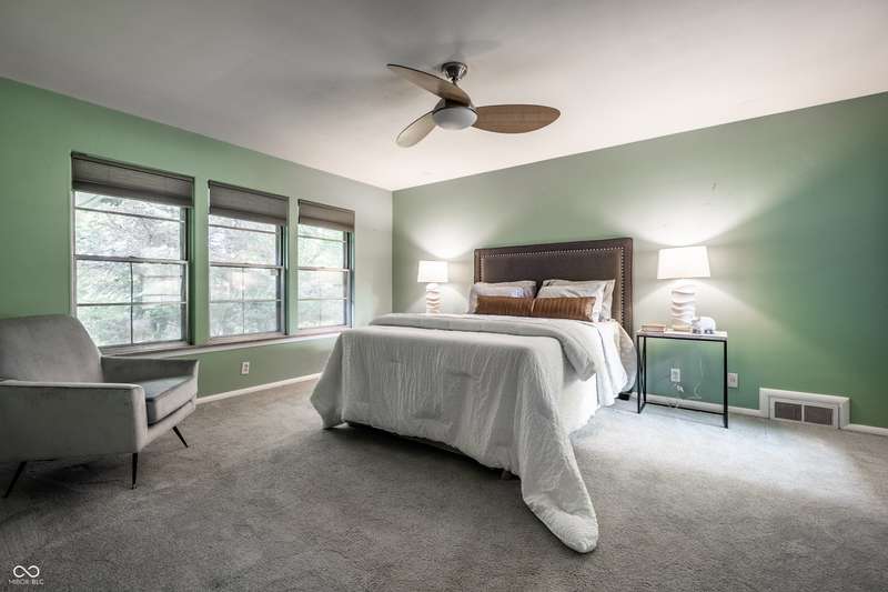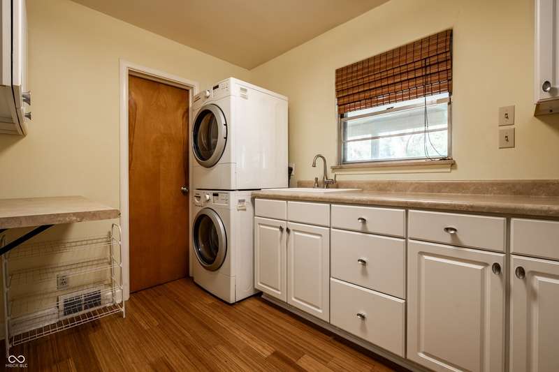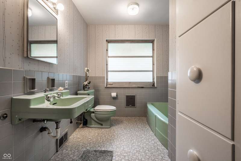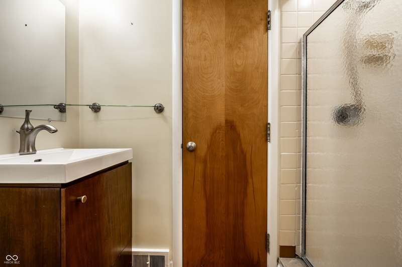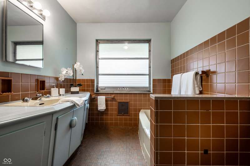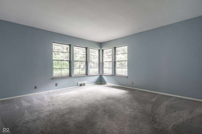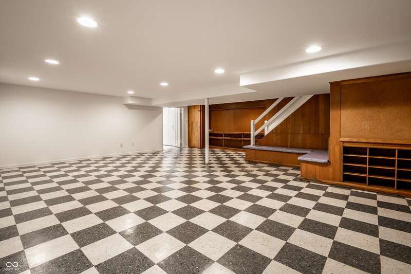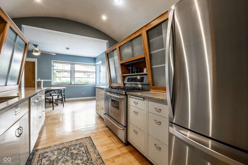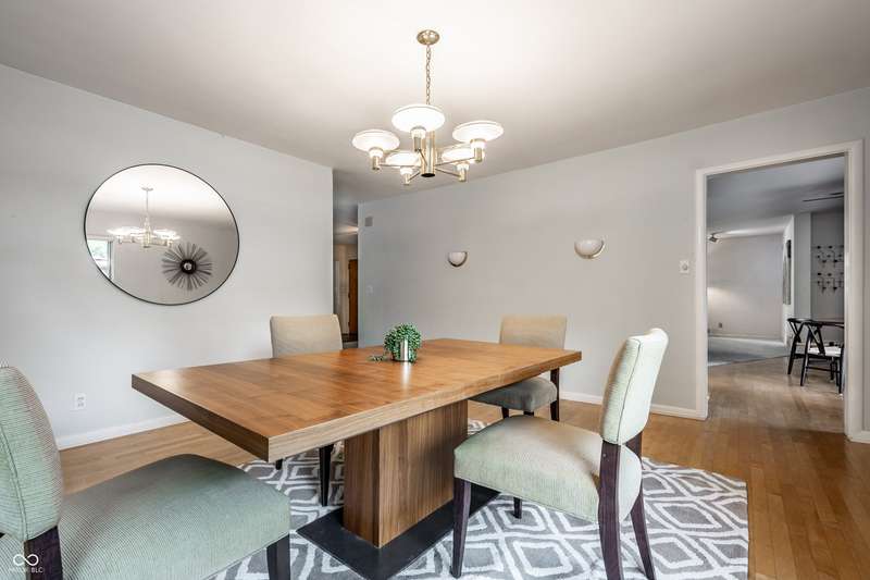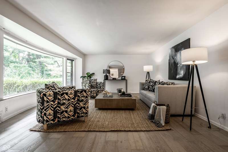 Mid-century modern masterpiece, unique design, fine craftmanship, open floor plan and quality construction featuring curved windows and walls, solid oak doors, marble window sills and slate entrance foyer, hallway and gas fireplace. Updated kitchen with stainless steel appliances, arched ceiling, hardwood maple floors and granite countertops - yet mid-century elements have been maintained with original sliding glass doors and Jamestown steel cabinets. Bathroom plumbing has been updated, but again the stylistic integrity of the house has been maintained with ceramic tile and solid wooden cabinets. Large spacious bedrooms with an abundance of windows and light. Full 3500 square foot basement, with a finished study and playroom. House lies on close to an acre, immediately across from Indianapolis jewel, Holliday Park, currently undergoing a $6,000,000 renovation to what will soon be a state-of-the-art playground. Centrally located, only 20 minutes from downtown, this house seeks buyers who appreciate fine craftmanship, excellence in home-building, architectural integrity and materials and style that are rarely found in contemporary homes: Indiana limestone, slate, solid oak and steel.