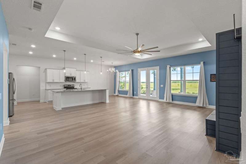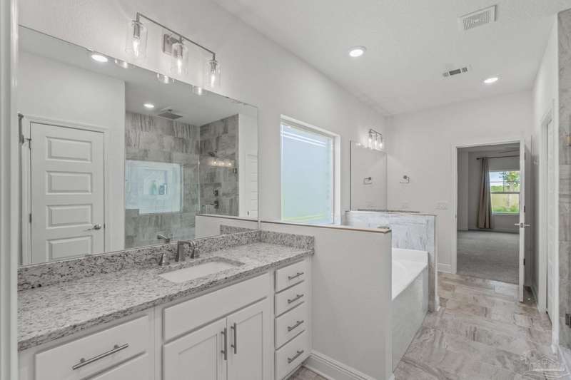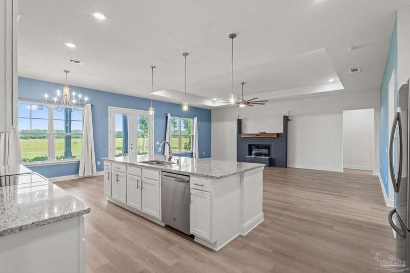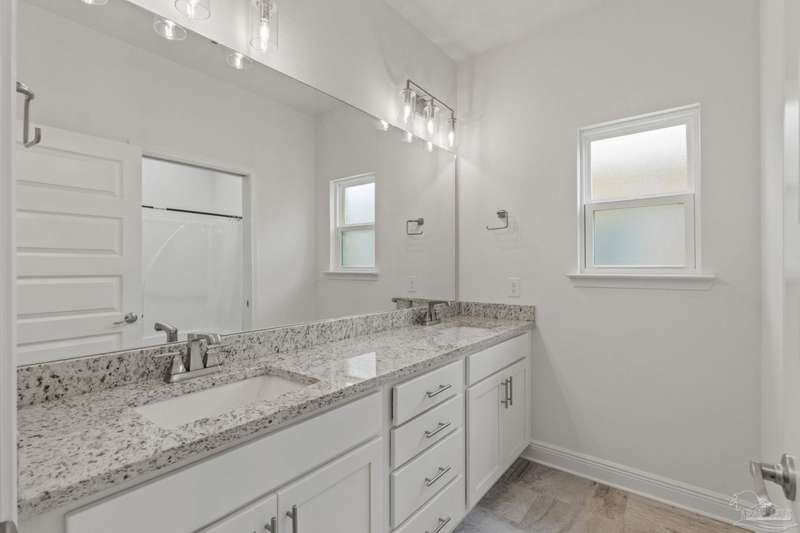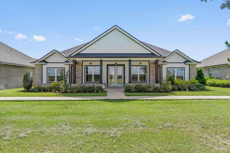 Low rate assumable loan available for qualified buyer. Welcome to your dream home in the highly sought-after Yellow River Ranch community of Milton! This beautifully designed 4-bedroom, 2.5-bathroom residence features an open design concept that is perfect for entertaining family and friends. As you step inside, you'll be greeted by a spacious living area adorned with luxury vinyl wood flooring that flows seamlessly into the modern kitchen. The kitchen is a chef's delight, boasting granite countertops, a large island, walk in pantry, Shaker cabinets with dovetail soft-close drawers and doors, and high-end stainless steel GE appliances, including a range, microwave hood vent, and dishwasher. The spectacular primary suite is a true retreat and features a tray ceiling. The beautiful primary bathroom offers double vanities with granite countertops, a separate tiled shower with a rain head, and a large garden tub with a tiled surround-perfect for unwinding after a long day. Step outside to enjoy the large covered back patio, ideal for alfresco dining or gatherings with neighbors and friends. This home is equipped with modern conveniences, including an irrigation system, gutters over the front porch area, a tankless gas hot water heater, a Taexx pest control system, and is pre-wired for surround sound and a Nest thermostat. Located in the picturesque Yellow River Ranch, this property is perfect for those seeking a modern, comfortable lifestyle. Don't miss the community pool and playground. Pickleball and tennis courts to be built in the future! Solar panels will be paid off at closing with acceptable offer.