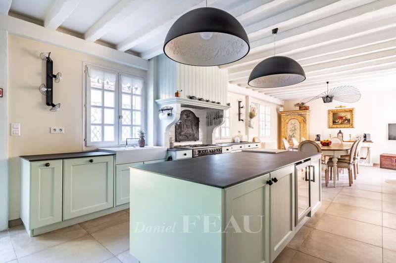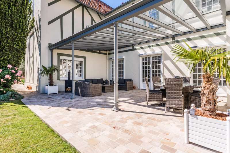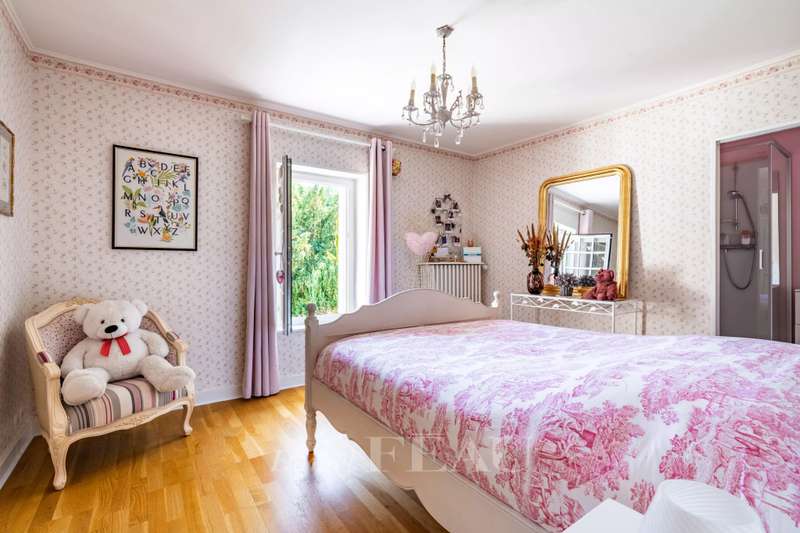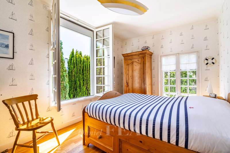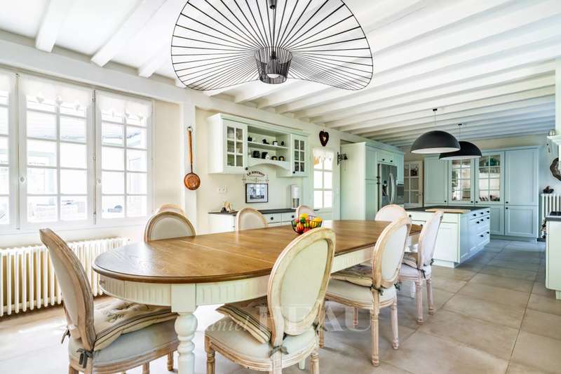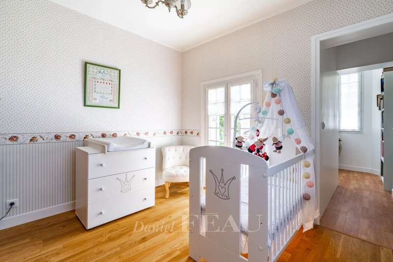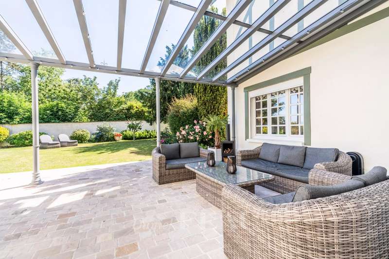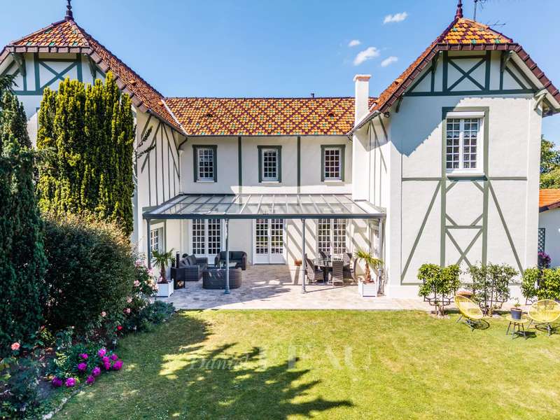 This delightful listed 19th century belle-Epoque style property is set in a leafy 985 sqm plot just a five-minute walk from the station, and near the shops and the schools. In perfect condition, it includes a spacious entry with a cloakroom, a utility room and a guest wc, a drawing room, a living/reception room with a fireplace, a 44 sqm kitchen with dining facilities, and an adjacent pantry. Upstairs are two suites, a study, three bedrooms, a shower room and a separate wc. On a total basement with a superb wine cellar, a boiler room and storage space. With a convertible annex, a 2-car garage and outdoor parking space. A swimming pool would be possible.