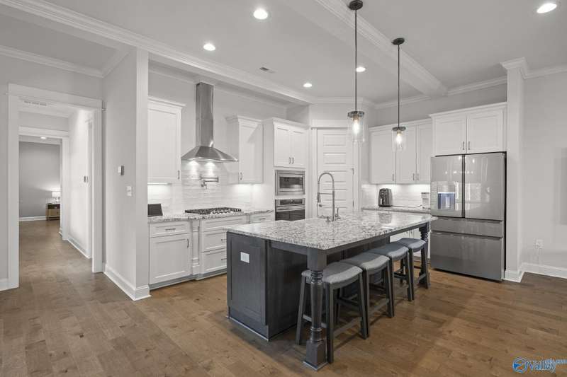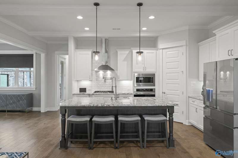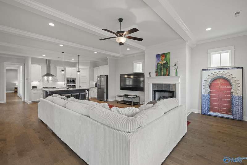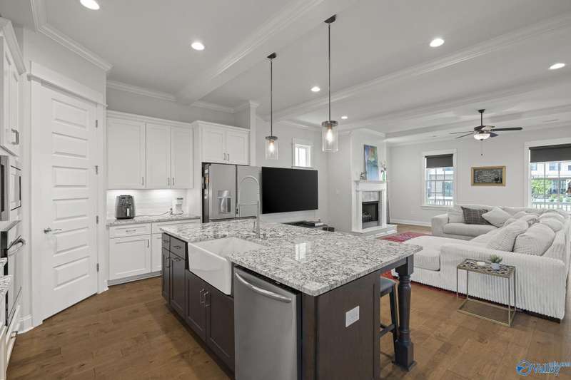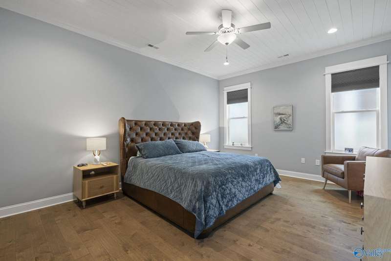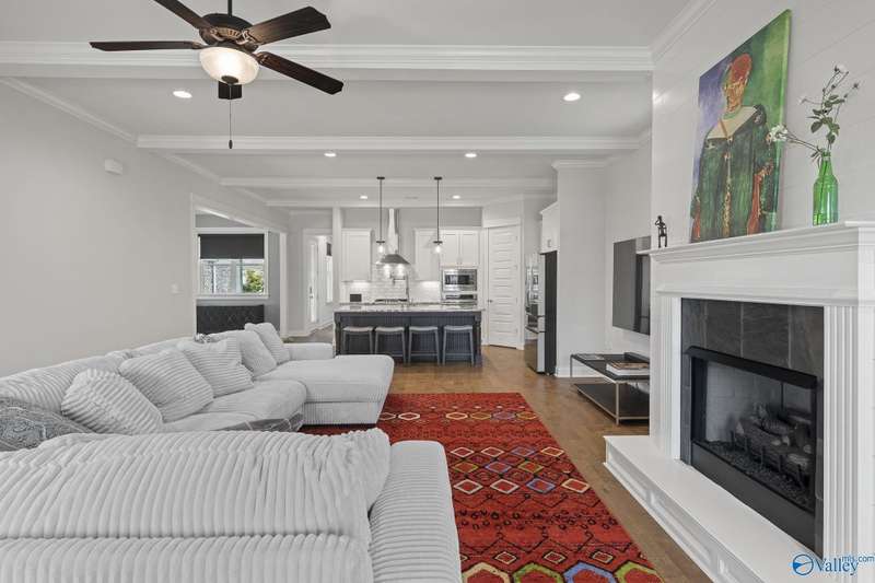 Enjoy the live/eat/play design and amenities of Town Madison. This 4 bed, 3.5 bath home features a CHEF'S KITCHEN with GAS COOKTOP and walk-in pantry. 10' ceilings on the first floor, with a two-story foyer. Large primary SUITE on the first floor with his and her vanities and tile shower. Upstairs features a large loft area and 3 additional bedrooms, one of which has an en-suite bath. Outside, enjoy the large covered front porch, or the privacy of a covered, tranquil side porch. SMART FEATURES galore, including security system, video doorbell, and smart locks. Custom window blinds. Tankless water heater & Spray foam insulation offer energy efficiency.