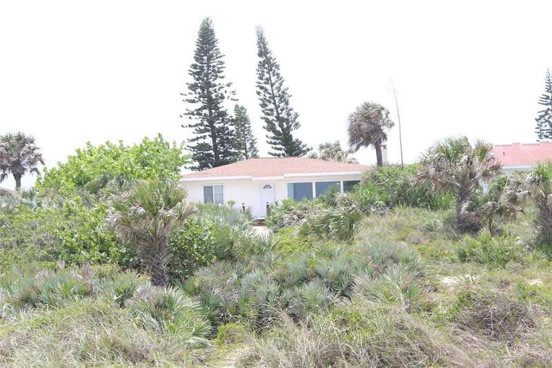 Direct oceanfront 3 bedroom 3 bath home located on North beach, one of the most desired locations in New Smyrna Beach. This home has an expansive patio that spans the width of the home, providing ample space to entertain your friends oceanside. This home has terrazzo floors throughout. Sit by the fireplace while enjoying the full view of the ocean from the large living room windows. The bathrooms have been updated to include beautiful tile showers, the master shower has dual shower heads. Separate laundry room. Open concept kitchen with plenty of counter space. Separate dining room. Deck on back of the home provides even more outdoor space. There is an additional home on the property which is currently rented and does not convey with this property. Lawn care is provided.