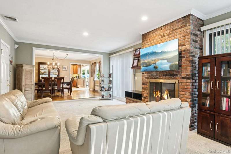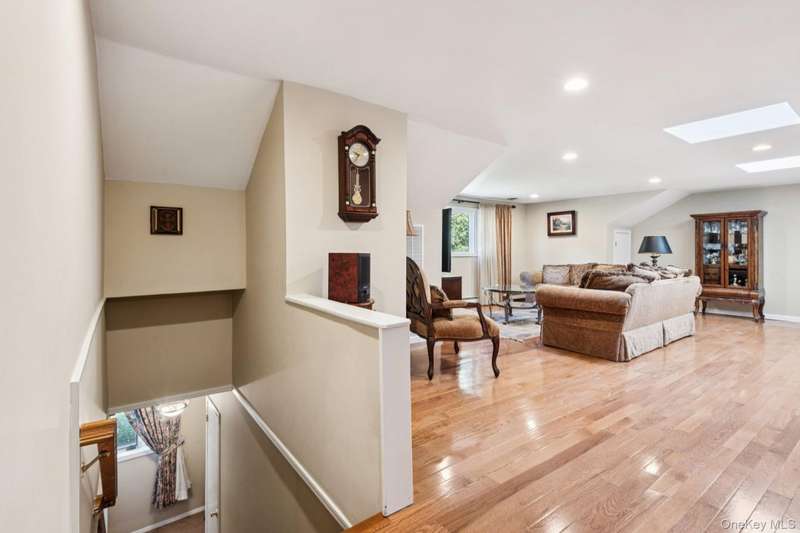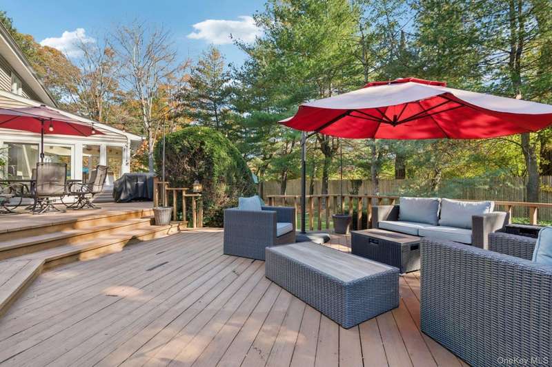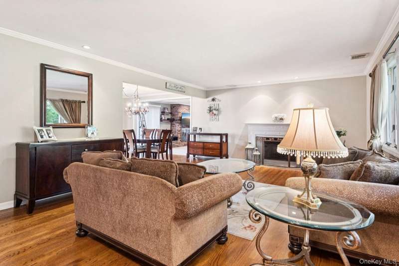 COLD SPRING HILLS! Spacious Farm Ranch with First Floor Primary Suite! Versatile Floor Plan on 2nd Floor. Perfect Layout for Multi-Generational Living! Separate Living Space for Parents or Teens w/Private Entrance. Or Great as Single Family Home. Pretty Redone Eat-In-Kitchen w/Stainless Appliances, Center Island & Breakfast Bar. Kitchen Opens to Pretty Sun Room/Breakfast Nook w/Vaulted Ceiling, Skylites, Wall of Windows & Sliding Doors to Deck. Generous Sized Rooms w/Hardwood Floors & Hi-Hat Lighting Throughout the Home. Formal Fireplace in Living Room & Brick Fireplace in Family Room. Primary Suite & 2nd Bedroom on Main Floor. 2nd Floor: 2 Bedrooms, Large Full Bath w/Shower & Jacuzzi Tub & 3 Additional Spacious Rooms for Office or Entertainment Space. 2nd Staircase with Private Entry to Main Floor. Lovely Front Porch. Vinyl Shakes & Siding w/Stone Trim. 2 New Cesspools 2010. Weil McLean Oil Boiler & Bock Hot Water Heater 2021. 4 Zone Hot Water Heat w/Baseboards & Cast Iron Radiators. 2 Zone Central Air. Generator Hook-Up. 2nd Floor Dormered 2010. Huge Unfinished Basement. Fenced 1/2 Ace Setting with Multi-Level Decking. Room for Pool. 2 Car Attached Garage w/Large Driveway. Set Just Across from Cold Spring Golf Course w/Winter Views. Convenient to Cold Spring Harbor Train Station & Highways.