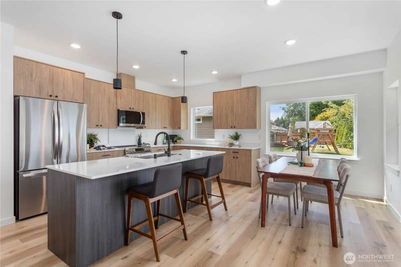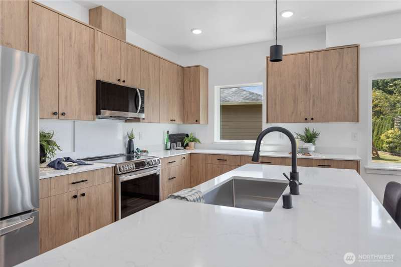 Brand new 2025 stick-built home in quiet Anderson Park - No HOA! This 3 bedroom, 2.5 bath home sits at the end of a cul-de-sac and features a wide 2-car garage plus off street parking. Inside, enjoy a modern layout with all bedrooms upstairs, downstairs in a large gas fireplace, ductless heat pump for efficient comfort and stylish Quartz countertops in both kitchen and bathrooms. The partially fenced yard offers privacy and room to play. Just minutes to the beach, parks and amenities - this is a fresh start in a great location!