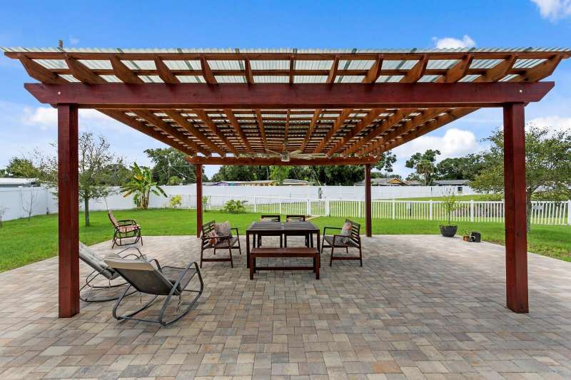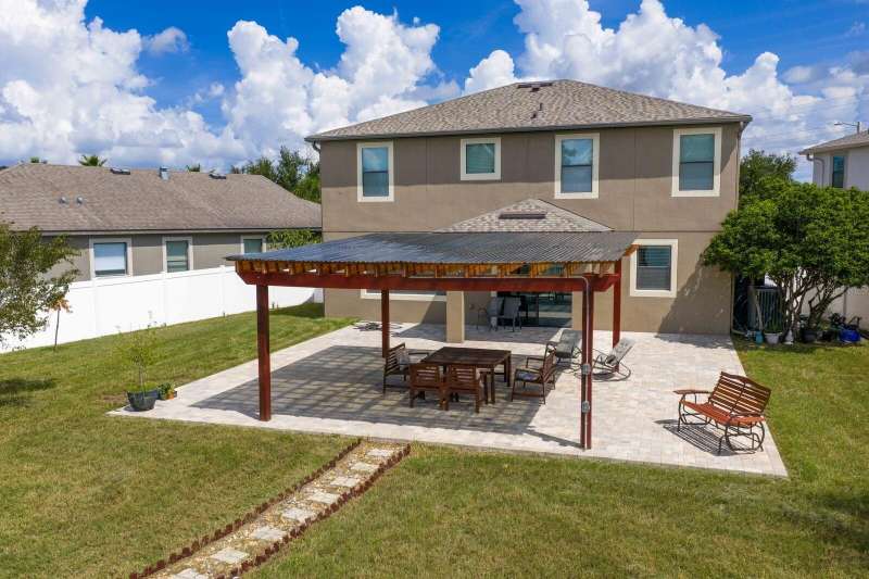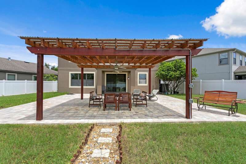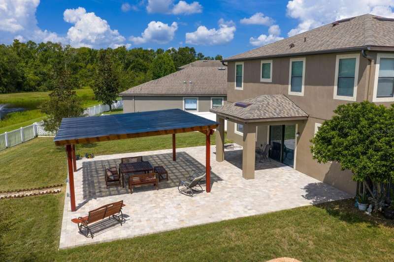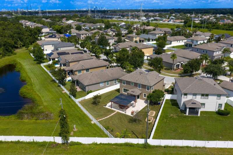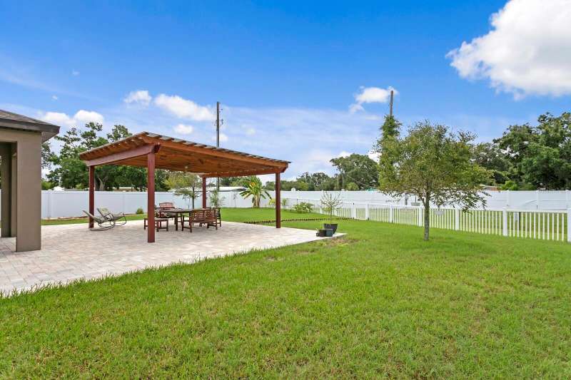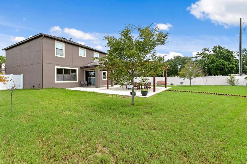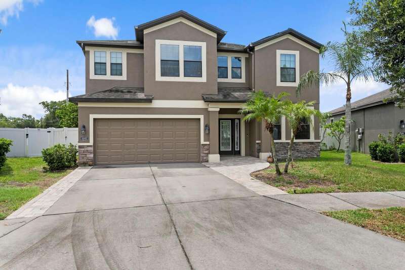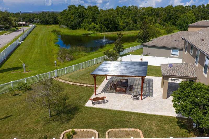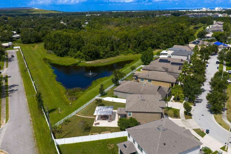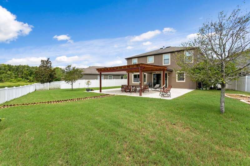 Under contract-accepting backup offers. One or more photo(s) has been virtually staged. Easily could become 4 or 5 bedrooms - Spacious over 2500SF 3-Bedroom + Den/Flex + Huge 18X17 Bonus Room + Huge Fenced Yard and Pond Views. Like-New Home in Prime Tampa Location! Welcome to this beautifully maintained home in the desirable low low hoa cost Camden Woods community! Built in 2014 by M/I Homes (Santa Barbara II model), this stunning property offers 2,516 sq ft of move-in-ready living space designed for modern comfort and flexibility. Downstairs, you'll find an elegant layout featuring a private den with French doors, ideal for a home office, gym, or flex space. Upstairs, enjoy the expansive bonus room – perfect as a game room, second living area, or playroom – along with all three generously sized bedrooms and a convenient upstairs laundry room. The chef’s kitchen is a showstopper with rich 42” dark wood cabinets, granite countertops, stainless steel appliances, and an open design that flows into the family room, making entertaining effortless. The oversized owners' suite offers a peaceful retreat, complete with a cozy sitting area, a large walk-in closet, and a luxurious spa-inspired bath featuring dual sinks with a makeup station, a garden tub, and a multi-head tiled shower. Step outside to your fully fenced, oversized backyard overlooking a tranquil pond with no rear neighbors. This is one of the largest lots in the neighborhood and includes a huge brick-paved patio, custom pergola– perfect for outdoor entertaining or quiet evenings under the stars. The yard is also adorned with gardening boxes, and in order from the boxes, these trees: mango, key lime, peach, pomegranate, guava, banana, grapefruit, lemon, another guava, and a fig, for a tropical touch and fresh fruit all year round. Additional highlights include a freshly painted exterior (2022), new A/C (2022), new roof (2025), neutral interior tones, a 2-car garage, and low HOA fees. On the doorstep to downtown Tampa, this home offers unbeatable access to all that Tampa has to offer. Just minutes from Causeway Boulevard and Downtown Tampa, as well as Brandon, you'll enjoy close-by proximity to shopping centers, restaurants, and a variety of retail destinations. Commuting is a breeze with quick access to the Lee Roy Selmon Expressway, I-75, I-4, I-275, and Highway 60—making it easy to get around the entire Tampa Bay area. You're also within a convenient drive to MacDill Air Force Base and the stunning white sand beaches along the bay.
