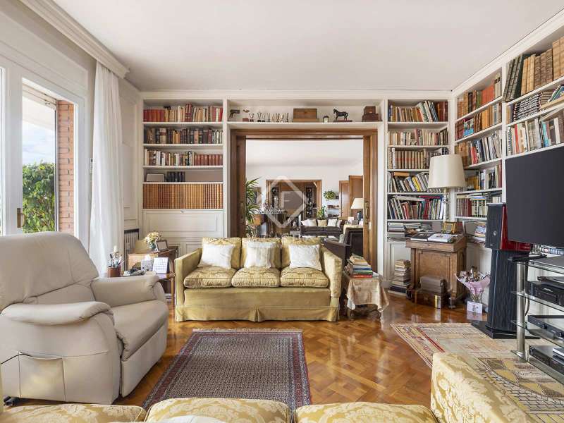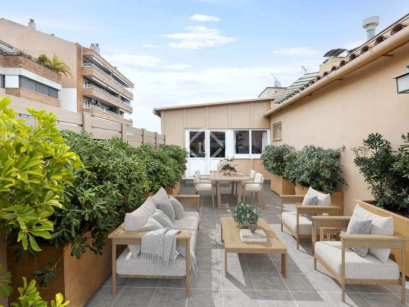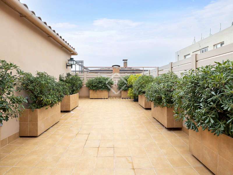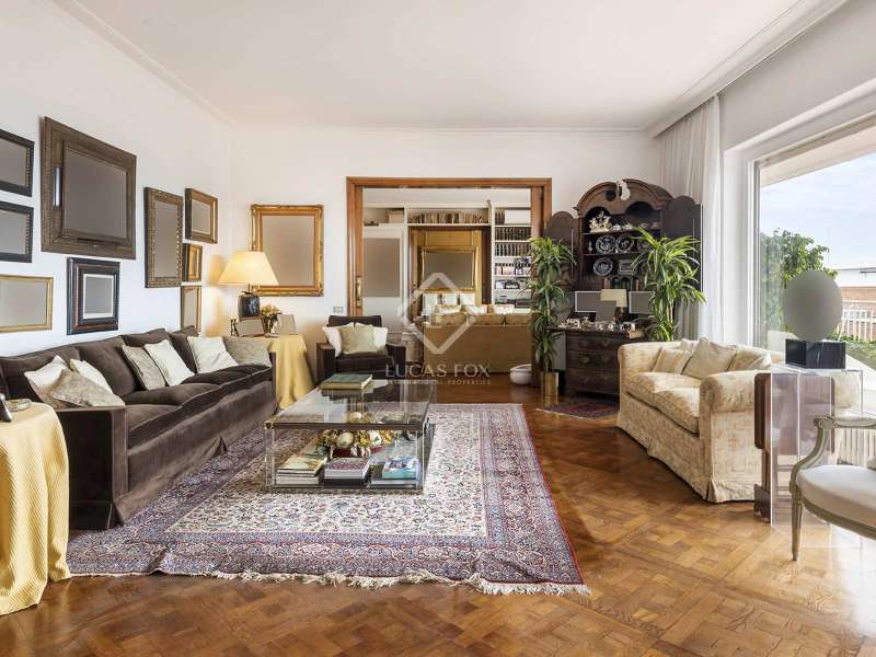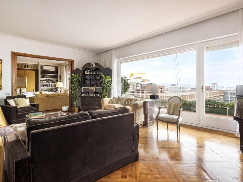 Lucas Fox presents this wonderful completely exterior duplex penthouse in the coveted neighbourhood of Tres Torres. The property has an area of almost 600 m², plus a 55 m² terrace facing southeast and another 68 m² facing the mountains. It stands out for the spaciousness of its spaces and for its high ceilings of more than 3 meters. The main floor clearly differentiates the day area and the night area and has two entrances, the main one and the service one. We enter the property and find a large entrance hall that leads to two large rooms, one of 20 m² and another of almost 40 m², which communicate with each other. Next, there is a large 27 m² library and a 30 m² dining room . The entire day area benefits from direct access to a large 55 m² terrace facing southeast. The dining room communicates directly with the 25 m² kitchen and this, in turn, leads to the service area, which is made up of a laundry room, a gallery, a storage area and two service bedrooms with a shared bathroom . In the night area, we find the master suite of almost 40 m² with a dressing room of almost 8 m² plus a complete bathroom . In addition, the property has another five bedrooms, three of them with private bathrooms, plus a full bathroom for the rest. From an internal staircase located on the main floor , we access the upper floor . Here, we find a large 67 m² solarium terrace with a 50 m² multipurpose room and storage area. This classic and spectacular property with its double orientation, two living rooms and large terraces with views can be turned into a unique and exceptional penthouse. The building has a porter and concierge service and the property includes two private parking spaces and a storage room in the garage. Get in touch for more information.