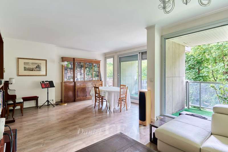 This 115.62 sqm apartment is on the second floor of a mid 1970s building surrounded by leafy greenery. Benefiting from an optimized floor plan, it includes a double living/reception room opening onto a continuous balcony, a fitted kitchen opening onto a little terrace, three bedrooms (two overlooking a garden), two bathrooms and two wc. With a lock-up garage and a cellar.