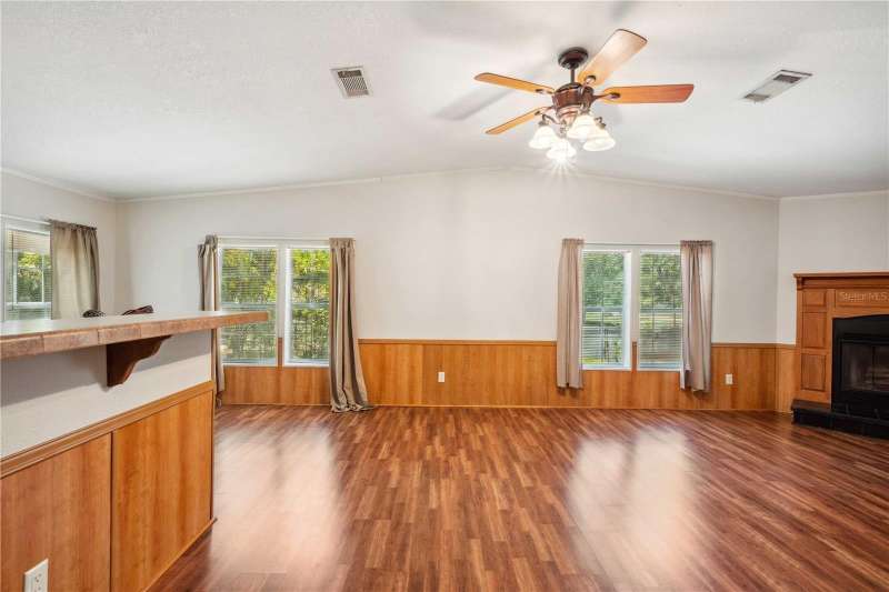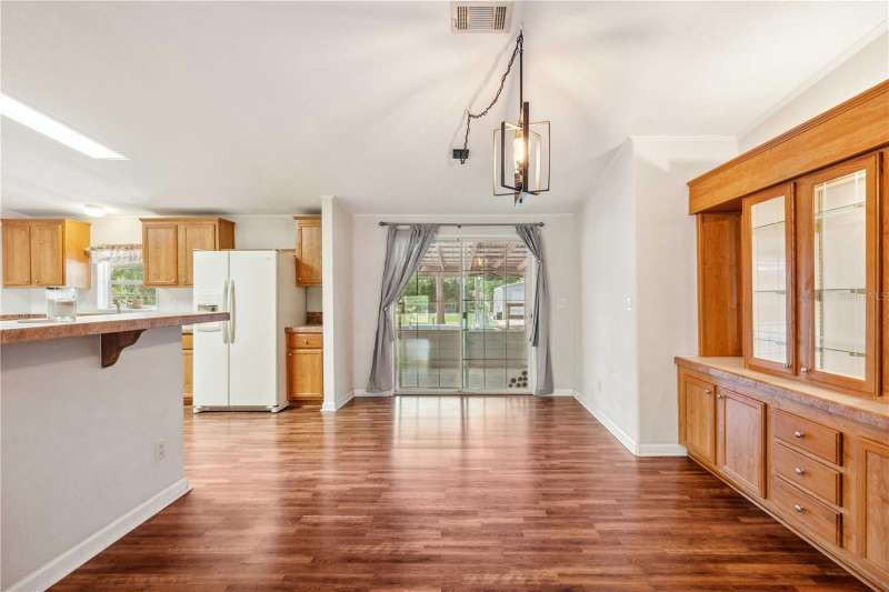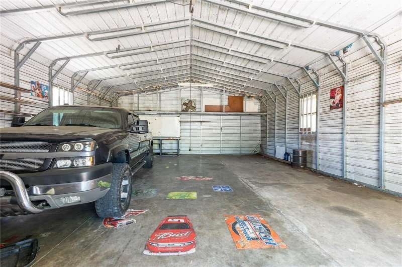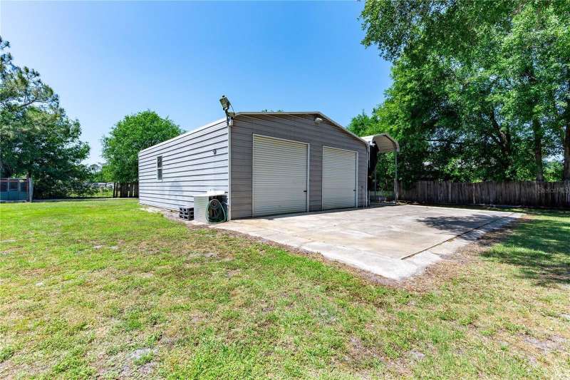 MOTIVATED SELLER ! Discover this conveniently located move in ready 4 bedroom 2 bath home in a quiet neighborhood with no HOA or deed restrictions. Upon arrival you will notice the mature landscaping and extra privacy as you enter the secured fence with paved driveway. While walking into the home you will notice the natural light from the oversized windows. Featuring a spacious and open floor plan comprised of a living room/dining room/kitchen, the space is great for entertaining family and friends. Step into your oversized kitchen which includes a large island and walk in pantry. The sprawling floor plan has a 2-way split allowing room and privacy for all. Master on one end featuring a shower and garden tub, double vanities and walk in closet. Down the oversized hall which includes built in cabinets for storage and a small desk area you will also find 3 more bedrooms and a full bathroom. Indoor laundry with access to bathroom makes for a great pool bath. Off the back of the home you will find a large private room with french doors, an oversized kitchenette and wood burning fireplace. The perfect space for an in-law suite or a movie room. The relaxing large lanai which is accessible through the sliding glass doors through the dining, gives you quick access to entertaining while also enjoying the above ground pool which just had a new liner installed. Upgrades include A/C replaced in 2024, and new metal roof in 2021. Bring your boat, jet-ski’s, trailers, RV’s because this has room for it all inside the 1,200 sqft metal building which includes water and electric. Plus an additional 11X40 carport for the camper. Completely fenced and ready for your animals! This home really offers that county living feel with still the convenience of being just minutes from I-75, and only 30 minutes to Tampa. Call today to schedule your private showing!