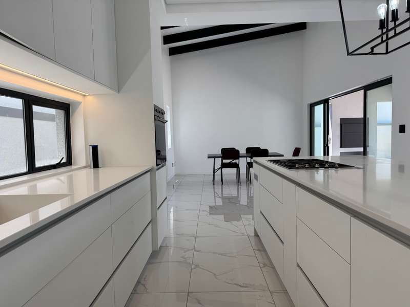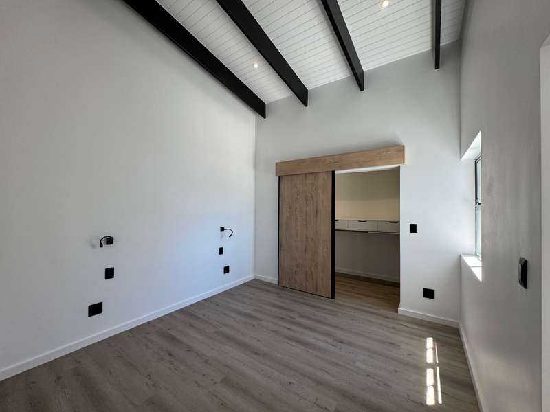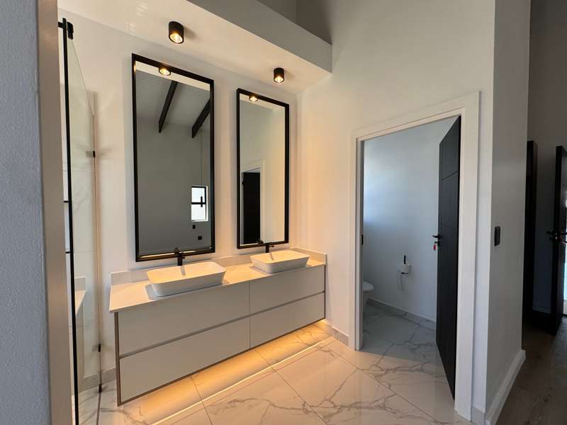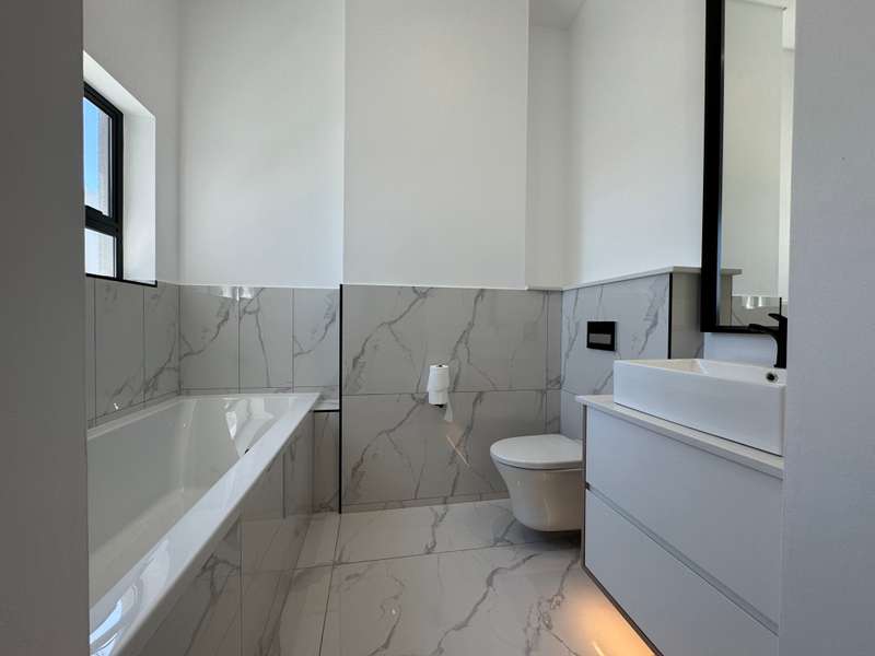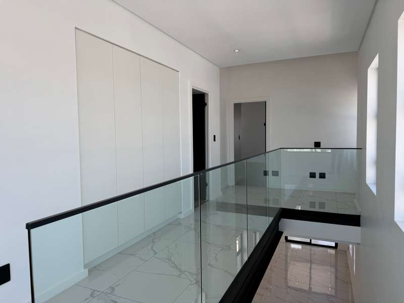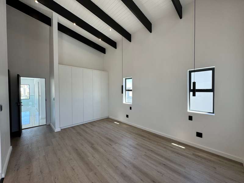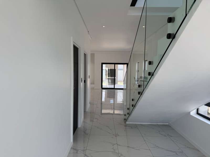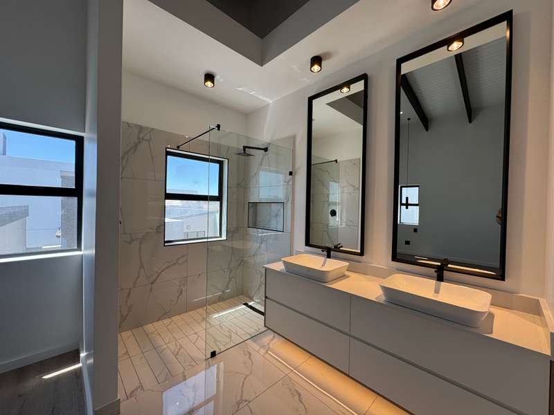 This brand-new home in the latest phase of the sought-after Sandown Lifestyle Estate is designed to impress even the most discerning buyers. Offering the pinnacle of luxury living, it provides an unparalleled lifestyle. The property boasts three generously sized bedrooms, each with its own en-suite bathroom, ensuring comfort and privacy. The stunning kitchen is a chef’s dream, featuring a spacious center island, sleek engineered stone countertops, ample top-to-bottom cabinetry, and a hidden scullery equipped for all appliances. Expansive living areas seamlessly flow from the lounge and dining room to a sheltered, wind-free braai patio, overlooking a sparkling blue pool—perfect for entertaining. The double automated garage offers direct access to the home for added convenience. With no transfer duty payable and immediate availability for occupation, this is an opportunity you don’t want to miss. Call us today—you’ll be glad you did! Contact agent for street address.