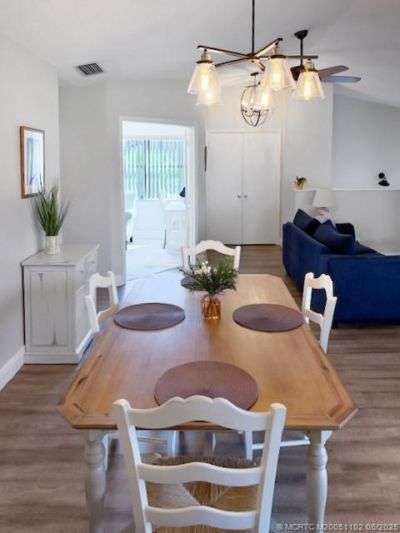 Fully furnished, turnk?y Clubh?use C?urt ???nd? ??n th? heart of Palm City now ?va??lable for the 2025/2026 season OR annually! After you walk up one small flight of stairs, all living is on one floor. Renovated and updated, furnished with all kitchen necessities and fresh bedding and linens, screened porch overlooking golf. Granite counters, stainless steel appliances w/ both eat-in kitchen and dining table. Two bedrooms PLUS office/den outfitted with a daybed & desk. Owner holds a membership to the grounds of nearby The Village Club & Preserve for use by the tenants during their lease term, giving access to tennis and pickleball courts, pools, basketball, fitness trail, & other recreational facilities (see www.villageclubpreserve.org for more info). Golfers have two separate course options, conveniently behind the guard gate, to explore. Schedule your showing today and secure your perfect spot to enjoy Florida this winter or annually! Trucks permitted!