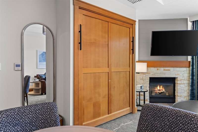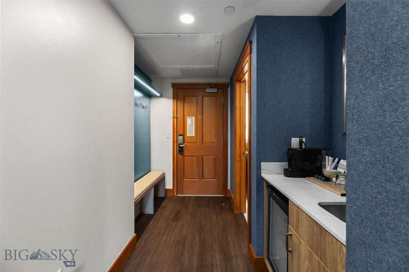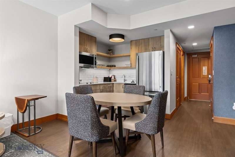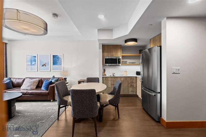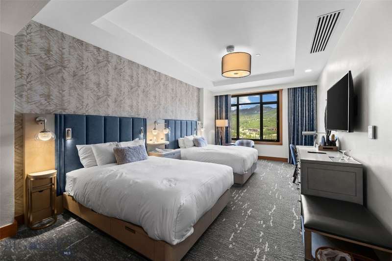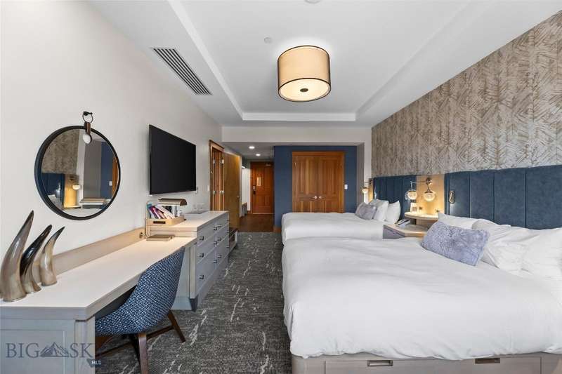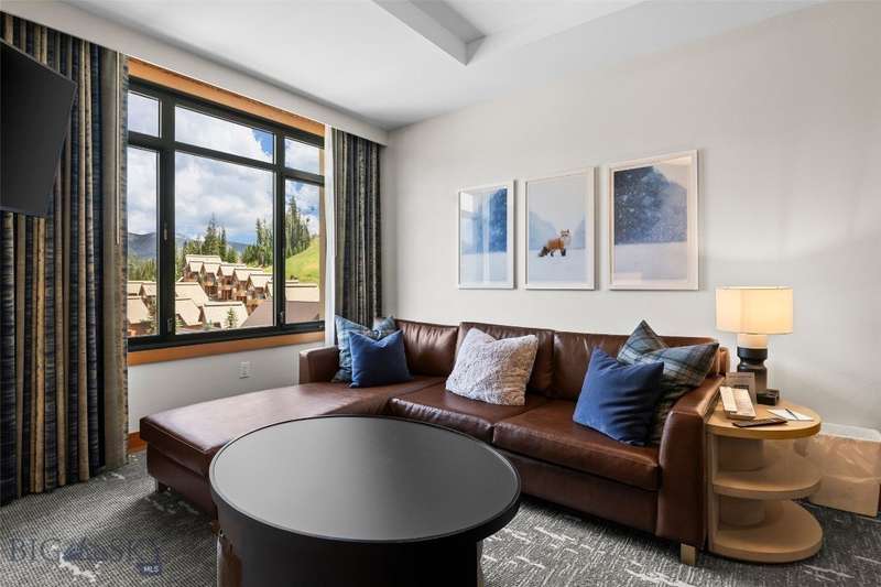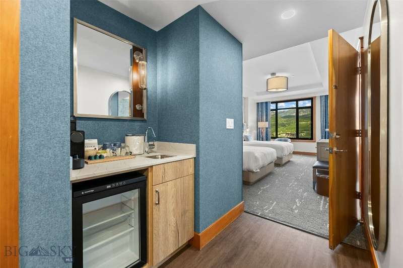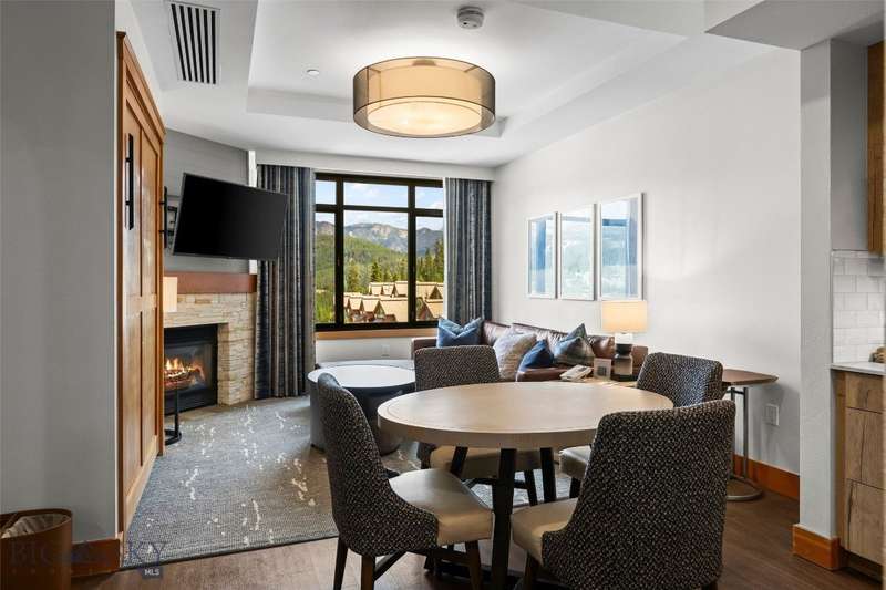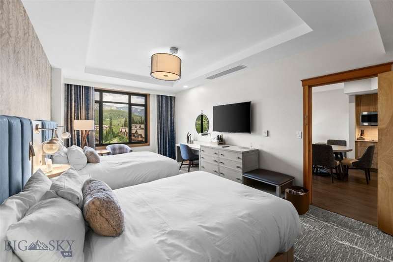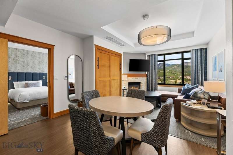 Own a piece of the premier 4-star Summit Hotel in Big Sky's iconic Mountain Village. This spacious 6th floor, 1-bedroom lock-off unit is the only Spanish Peaks facing unit on the market in the Summit! This gorgeous, recently updated condominium offers one of the quietest locations in the Summit Hotel. Enjoy flexibility and comfort with two interconnecting rooms featuring two queen beds in the main bedroom, along with a wet bar and a bath, and a Murphy bed and fold-out sofa in the adjoining suite, which also offers a kitchen, dining area, fireplace, and another bathroom. Ideal for both personal use and rental income, this unit sleeps up to 8 guests comfortably. The interconnecting rooms offer a unique benefit over other condominiums in Big Sky in that owners have the option to use one of their rooms while keeping the other room in the rental pool, thus an owner can still collect income while staying in their unit. This unit has consistently been a high-income earning property, please ask your agent for the rental history! Enjoy the best, and one of Big Sky's only "all season" ski-in/ski-out properties just steps from the slopes. Relax apres-ski in the newly renovated pool and spa area, featuring a Himalayan salt sauna, heated indoor/outdoor pool, large fitness center, and outdoor hot tub with mountain views. With full hotel amenities, concierge services, valet, underground parking, large owner storage area, and fine dining on-site, you will experience the ultimate in alpine luxury.