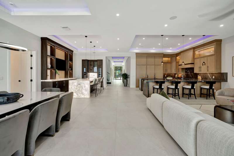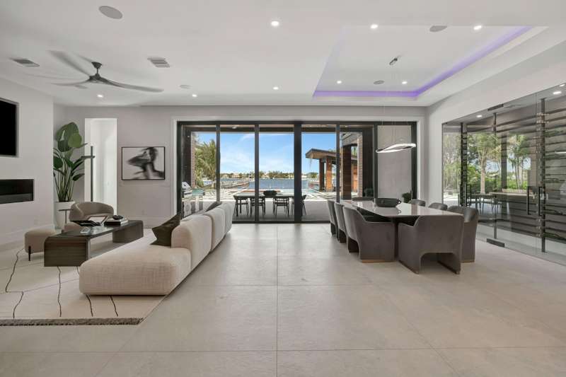 Brand-new gated intracoastal estate in prime Lantana location! Brand new 385 foot dock with 32k boat lift and pilings to tie up your very large vessels. This is the lowest price per square foot new construction on the direct intracoastal in Palm Beach County! Walk to the beach, Eau Resort & Spa, and top dining spots. Just 1.5 mi to I-95, minutes to PBI & private jet access. This smart, energy-efficient compound offers ultimate privacy with unobstructed water views, upstairs/downstairs living rooms & master suites. Loaded with upgrades: Sonos, security, landscape lighting. Backyard is a showstoppera$500K+ resort-style pool, sunken firepit, waterfall gazebo w/ 10 stools, and multiple fire features. Luxury living at its finest!