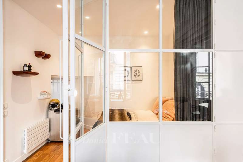 Odeon neighbourhood. This 44 sqm apartment is on the 1st floor of a revamped 18th century building with a lift in the immediate vicinity of the shops, the schools and Place Saint Michel in the heart of the Latin Quarter. Renovated by an interior decorator, it includes a spacious living room featuring exposed beams, an equipped kitchen, a peaceful bedroom with a skylight, a shower room and a fitted walk-in wardrobe.
