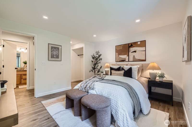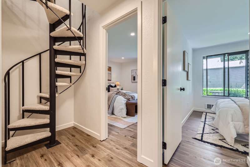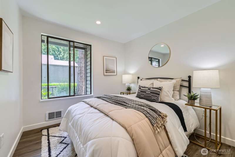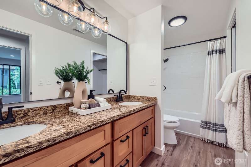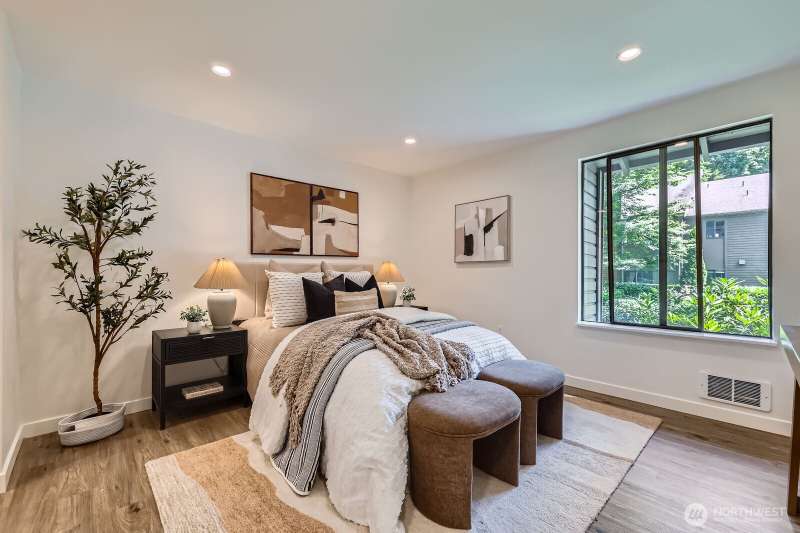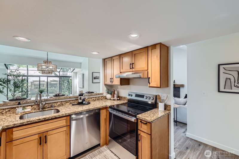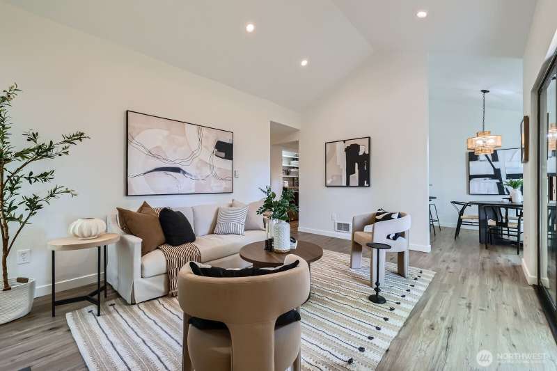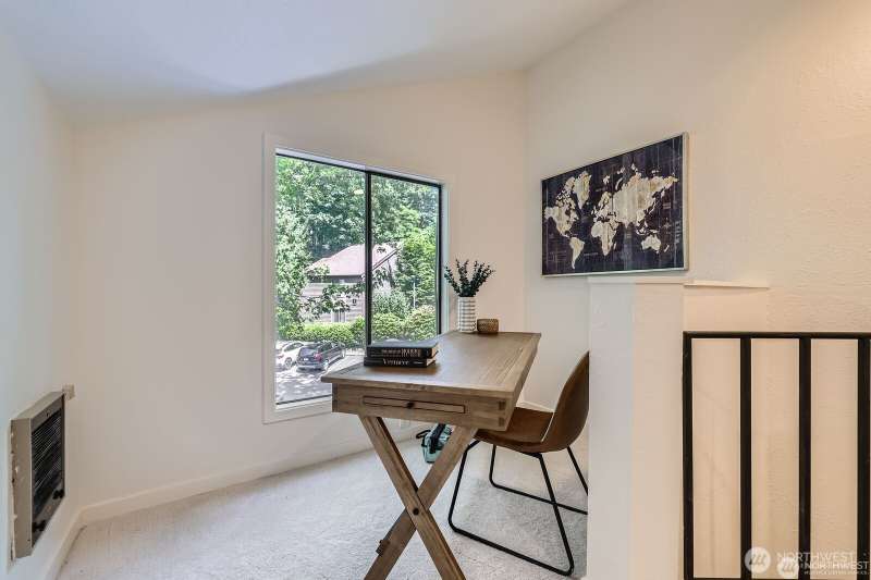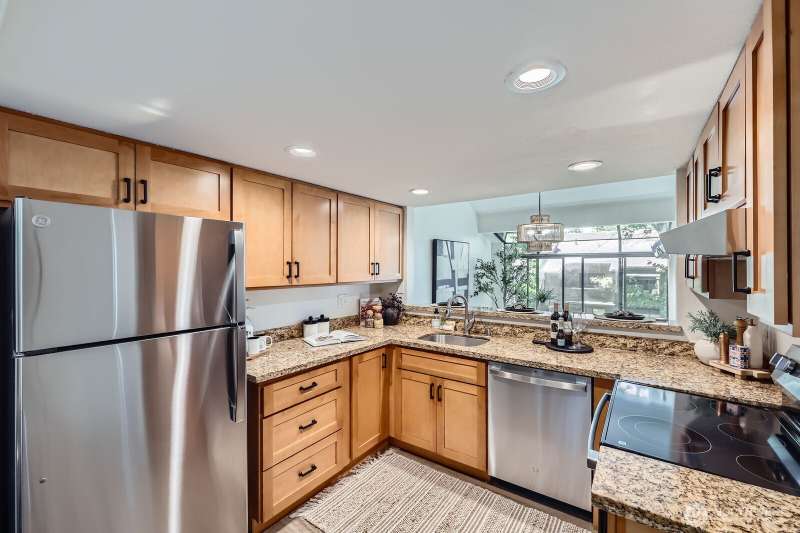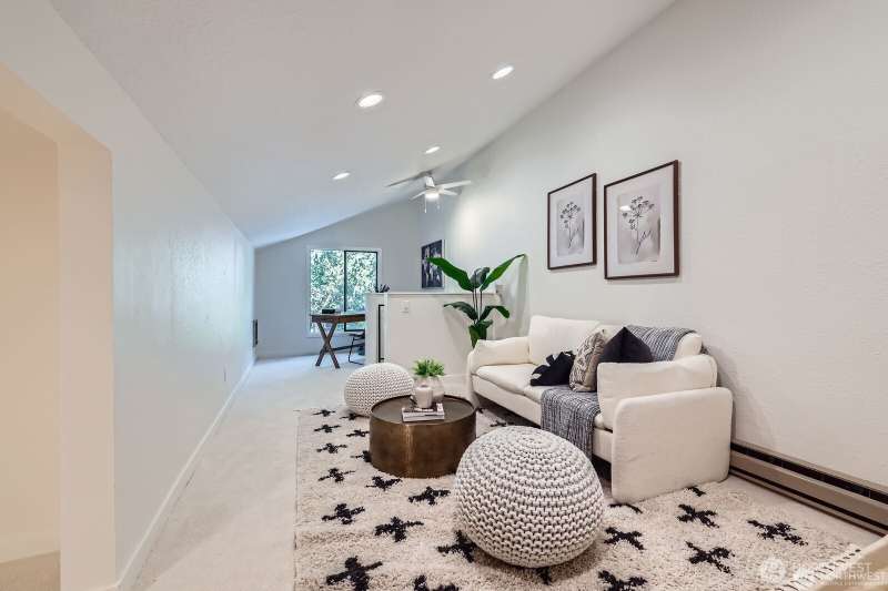 Your Kirkland lifestyle upgrade awaits! This rare top unit lives large like a 3-bedroom home, complete with a spacious loft + bonus storage - perfect for a den, office, or guest retreat (& no bumping your head!). Soaring vaulted ceilings paired w/ NW-facing windows flood the home with light and views of treetops. Discover fresh paint, new lighting, & brand-new luxury vinyl plank flooring + plush carpet throughout. The kitchen shines with granite countertops, stainless steel appliances, & a brand-new W&D. It's move-in ready comfort meets everyday convenience. Low HOA dues, no rental cap, prime location just steps to Juanita Beach, on bike trails & minutes to Totem Lake's dining, shops, and commuter routes. Own instead of rent in Kirkland.