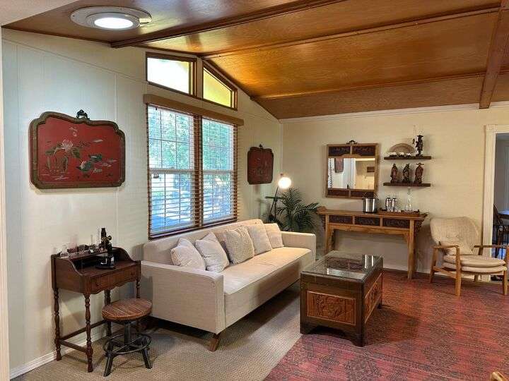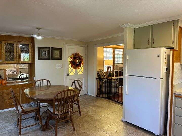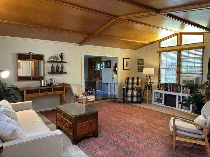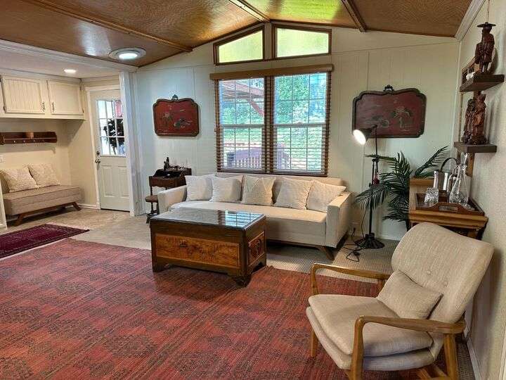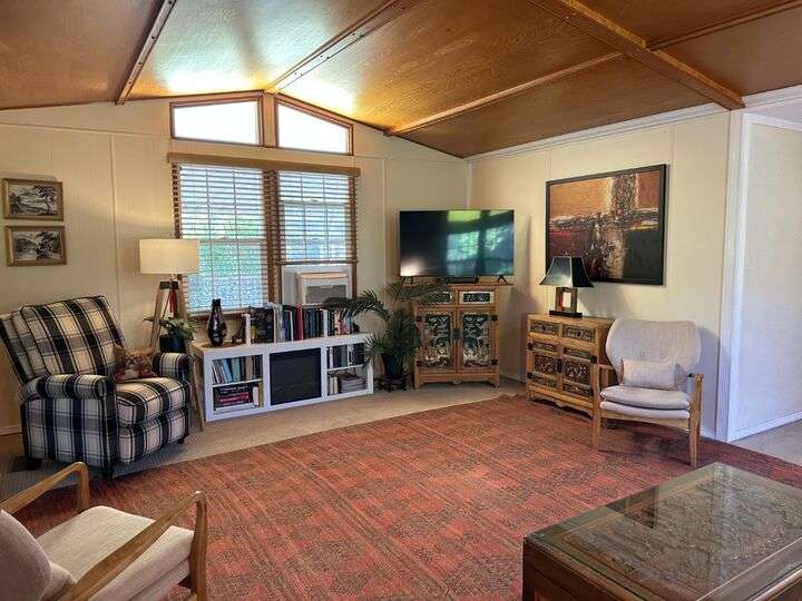 Welcome to this well maintained 2 bedroom, 1.5 bath home nestled in a court within the Cold Springs Mobile Manor community. Step inside to a spacious living area that flows seamlessly into an open kitchen and dining combo, perfect for everyday living and entertaining. Enjoy the outdoors with multiple private patio spaces, a sunroom, beautiful decks, and a fenced-in yard offering privacy and room to relax. The property also includes a carport plus two additional parking spaces for your convenience. Additional highlights include inside laundry and a new furnace installed in September 2025. This inviting home combines comfort, functionality, and outdoor living, ready for you to move in and enjoy!