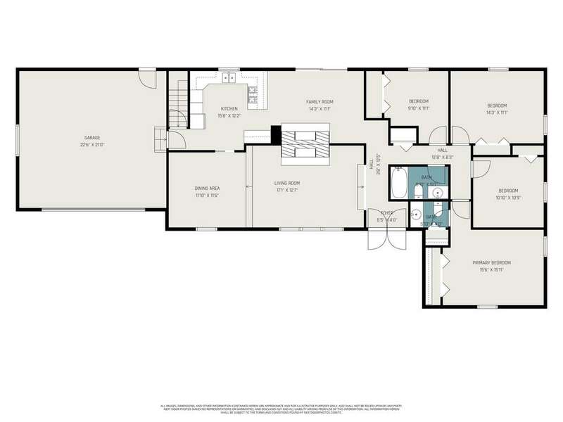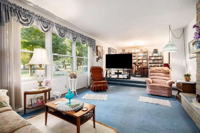 Nestled on nearly an acre of land, this spacious 4-bed/2-bath ranch home offers plenty of space and endless potential. The property features an attached 2-car garage and a fenced-in backyard, perfect for pets and playing! Inside you'll find a traditional floor plan with a double sided fireplace that connects the family and living rooms. Hardwood floors, sizable bedrooms and replacement windows add comfort throughout. The primary suite offers a private bath and the full basement-with laundry and a handy storage cellar-adds even more space and versatility. While some cosmetic updates could make this home truly shine, it has been well cared for and offers a solid foundation to make your own.