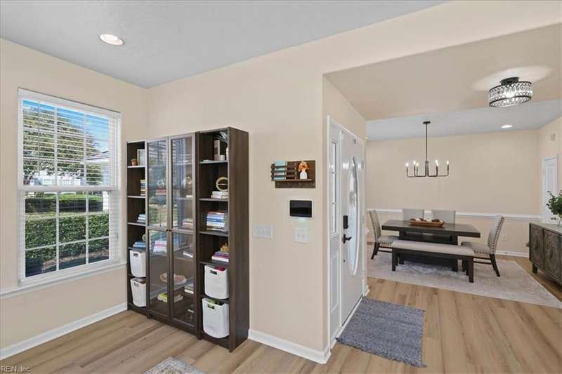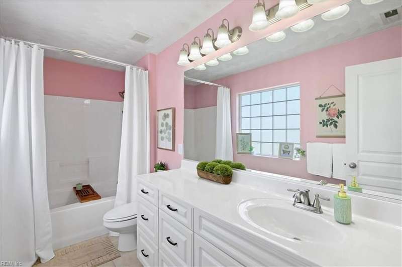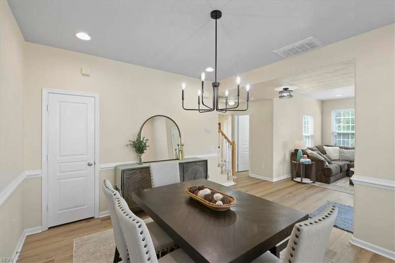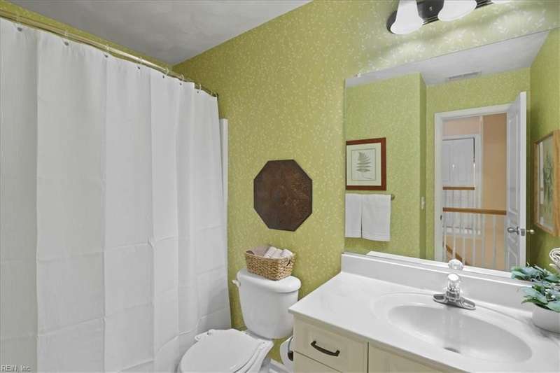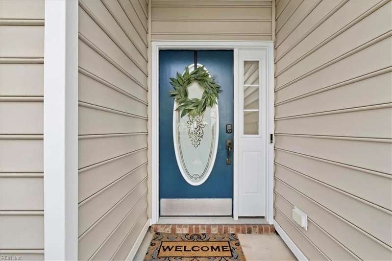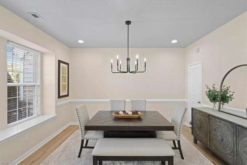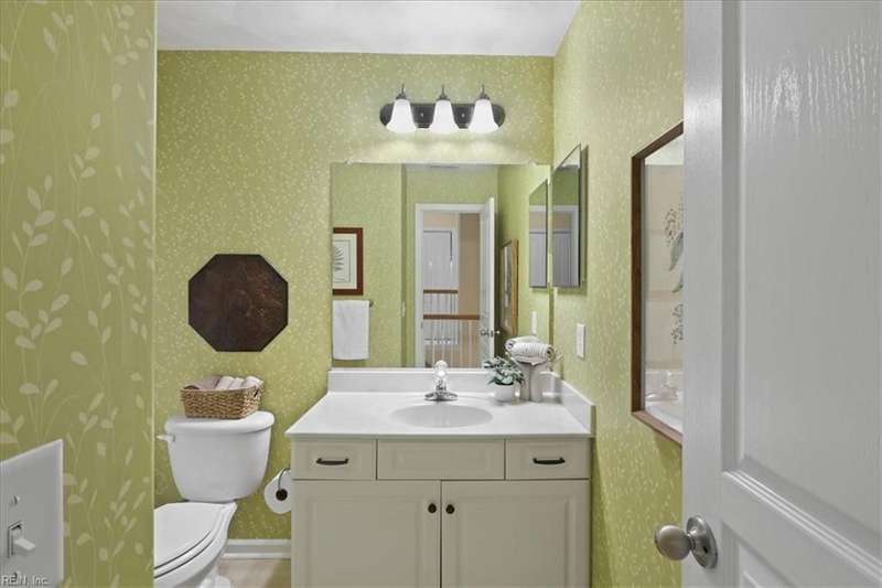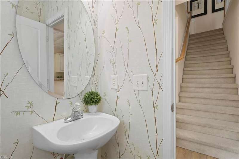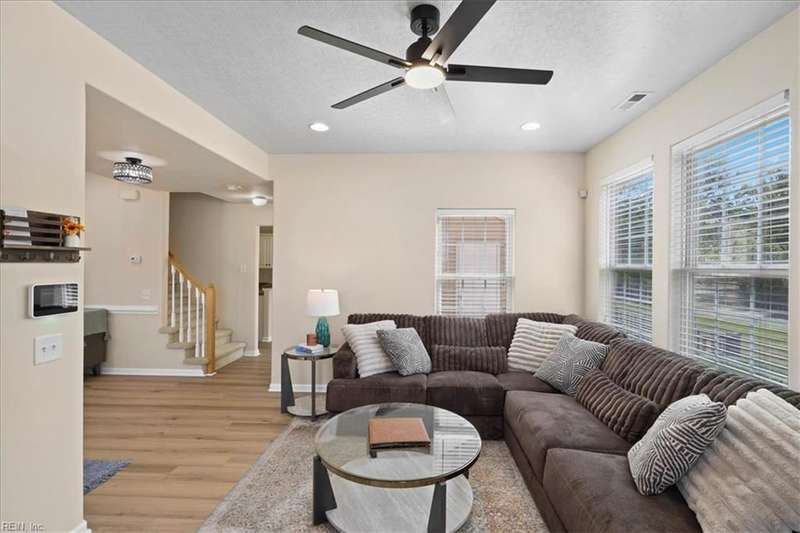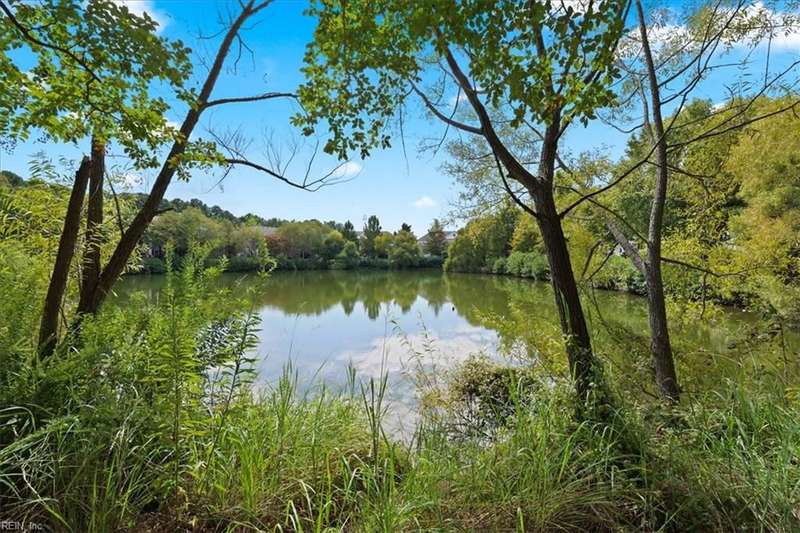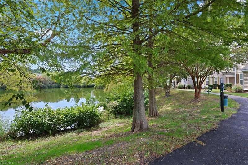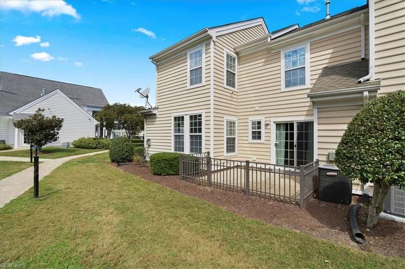 Beautifully maintained former model home in Hampton Roads Crossing! This prime location corner unit offers abundant natural light and an inviting living room centered around a cozy fireplace. Recent updates include: LVP flooring (2025), fresh interior paint, modern light fixtures & water heater (2025). The versatile dining area flows into the kitchen, which features stainless steel appliances, a gas stove, ample counter space, bar seating, and a deep pantry. Upstairs, the oversized primary suite includes an en-suite bath. A spacious second bathroom, full bath, and convenient laundry space completes the upper level. Enjoy the fenced patio with storage area and serene pond views. Community amenities include a clubhouse, pool, fitness center, walking trails, and a playground. Ideally located near shopping, dining, parks, and major highways. This home combines comfort, convenience, and lifestyle.
