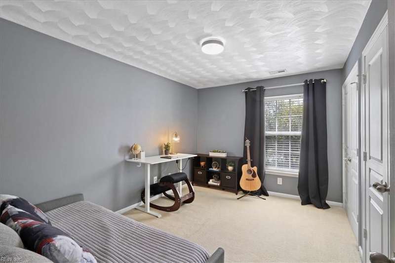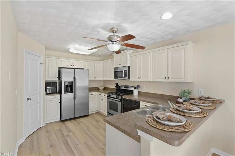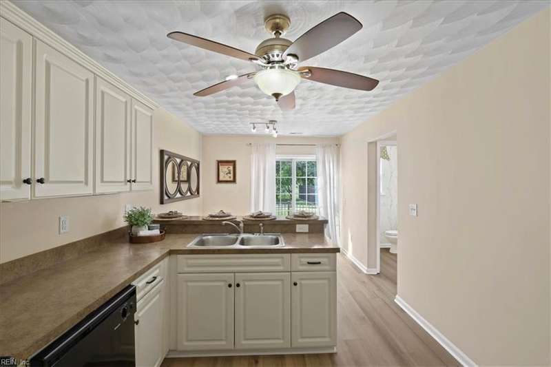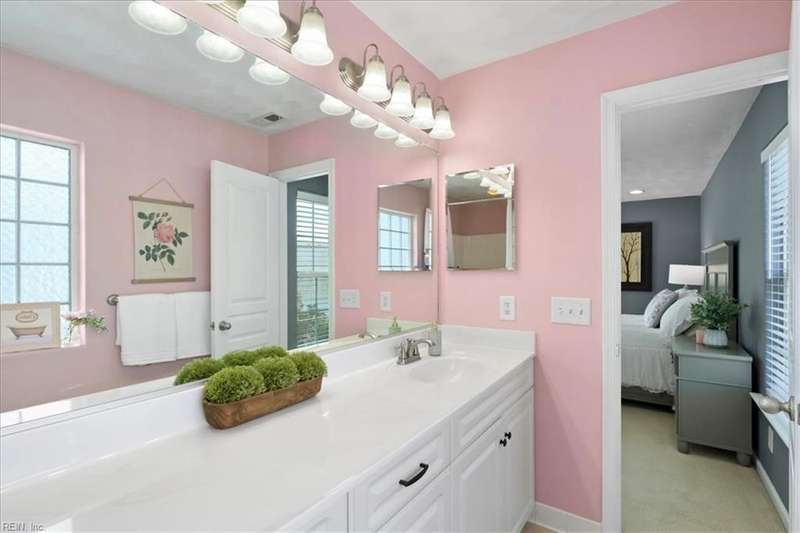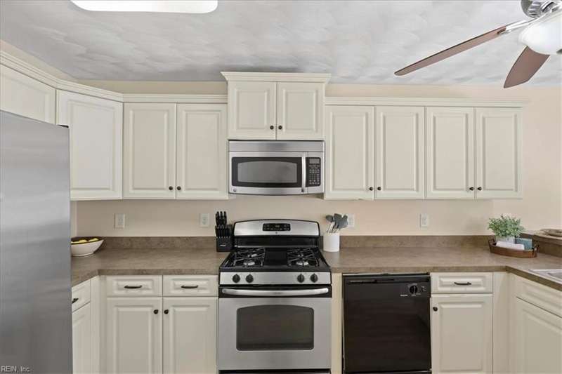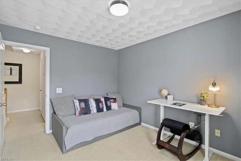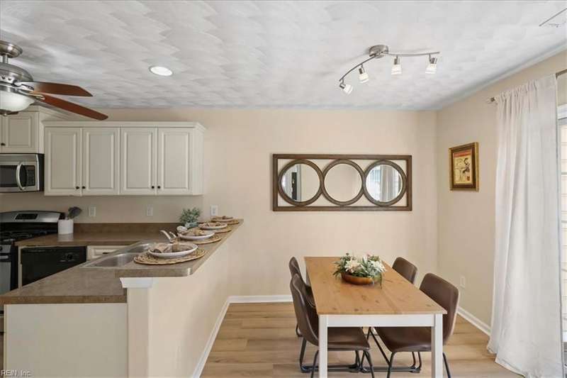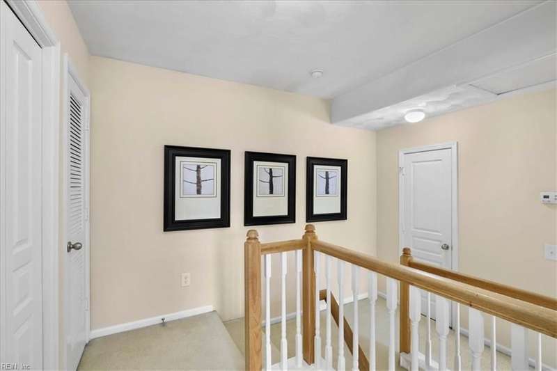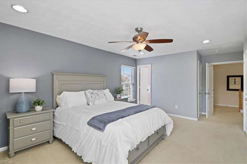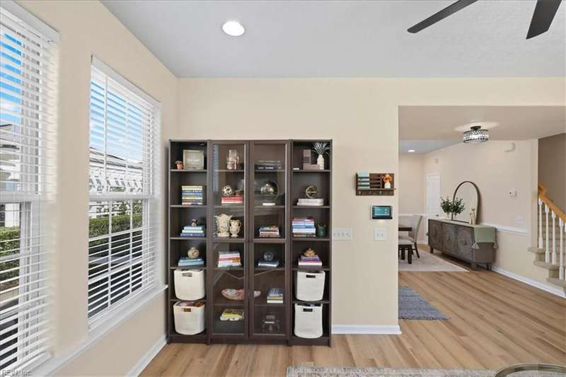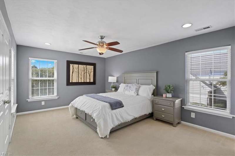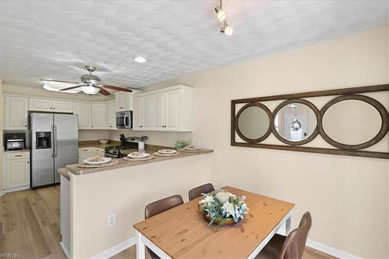 Beautifully maintained former model home in Hampton Roads Crossing! This prime location corner unit offers abundant natural light and an inviting living room centered around a cozy fireplace. Recent updates include: LVP flooring (2025), fresh interior paint, modern light fixtures & water heater (2025). The versatile dining area flows into the kitchen, which features stainless steel appliances, a gas stove, ample counter space, bar seating, and a deep pantry. Upstairs, the oversized primary suite includes an en-suite bath. A spacious second bathroom, full bath, and convenient laundry space completes the upper level. Enjoy the fenced patio with storage area and serene pond views. Community amenities include a clubhouse, pool, fitness center, walking trails, and a playground. Ideally located near shopping, dining, parks, and major highways. This home combines comfort, convenience, and lifestyle.