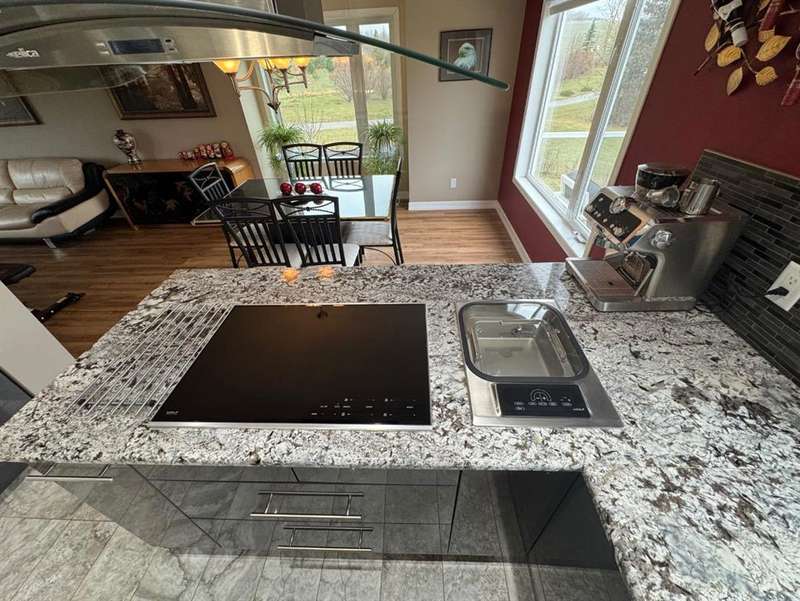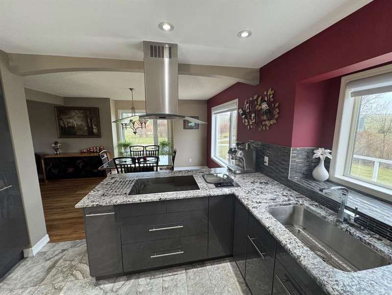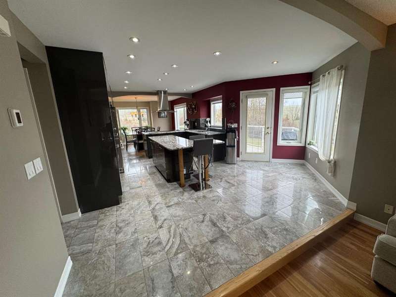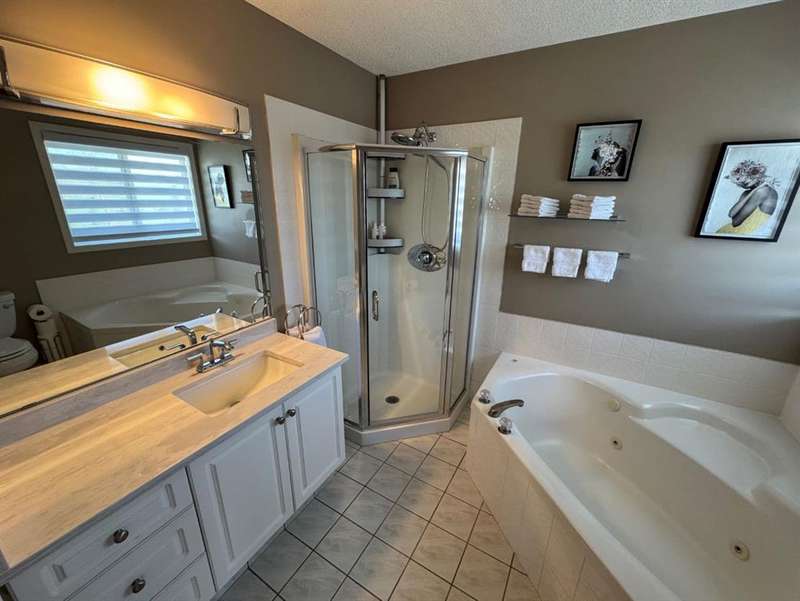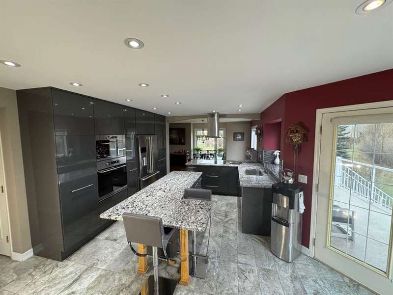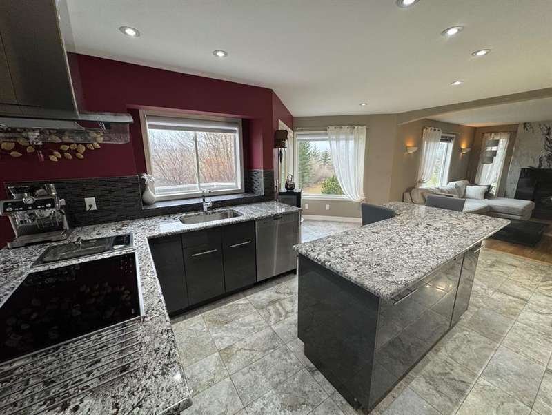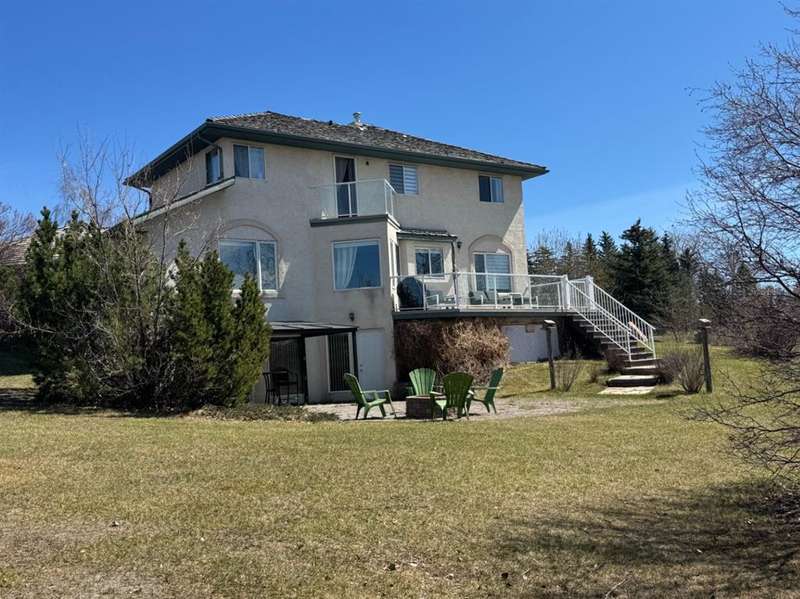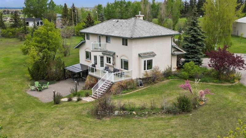Discover the perfect blend of luxurious country living and city convenience with this exceptional two storey walkout home with over 2830 square feet of livable space, nestled on 5 immaculate acres just 5 minutes from Calgary’s southern city limits, a truly rare opportunity. Thoughtfully designed for both everyday living and upscale entertaining, the home features a sunlit, modern gourmet kitchen with stylish cabinetry a spacious dining nook, granite countertops, stove, drop down hood fan, and dishwasher. Host in style in the elegant formal living and dining rooms, or relax in the cozy family room, complete with rich high quality vinyl plank floors and a gas fireplace. Escape to the luxurious master retreat, where a spa-inspired ensuite with a jacuzzi tub, heated floor, walk-in closet, and private balcony awaits, all overlooking your expansive estate. The fully developed walkout lower level offers incredible flexibility, perfect for an entertainment haven, guest suite, or private space for extended family. Recent upgrades include fresh paint, new vinyl plank flooring, modern light fixtures, and stylish window coverings throughout. Enjoy year-round comfort with premium features such as in-floor heating on the lower level, dual hot water tanks, a water softener, water filtration system, and built-in Vacuum system. Outdoors, the beauty continues with professional landscaping that includes stamped concrete front porch, rock gardens, winding brick pathways, and a tranquil seasonal pond. The south-facing backyard fills the home with natural light, while the stucco exterior and durable shake roof offer long lasting peace of mind. The entire property is fully fenced with a gated entrance and includes a separate pasture — ideal for horses or pets. A 1,410 sq/ft insulated shop with bright halogen lighting, a large overhead door, 220V power, and an oversized double attached garage add even more functionality for hobbies, business, or storage. All the upgrades are complete — just move in and embrace your dream rural lifestyle, with all the convenience of the city just minutes away.