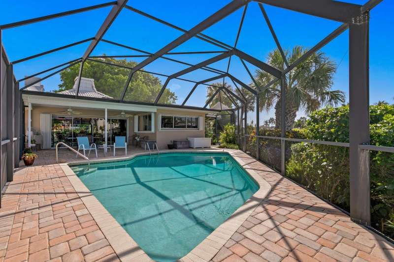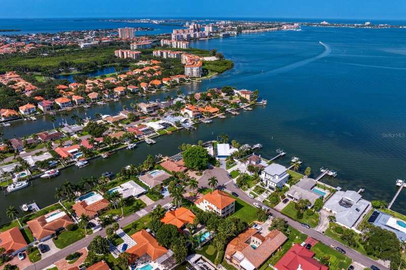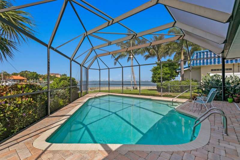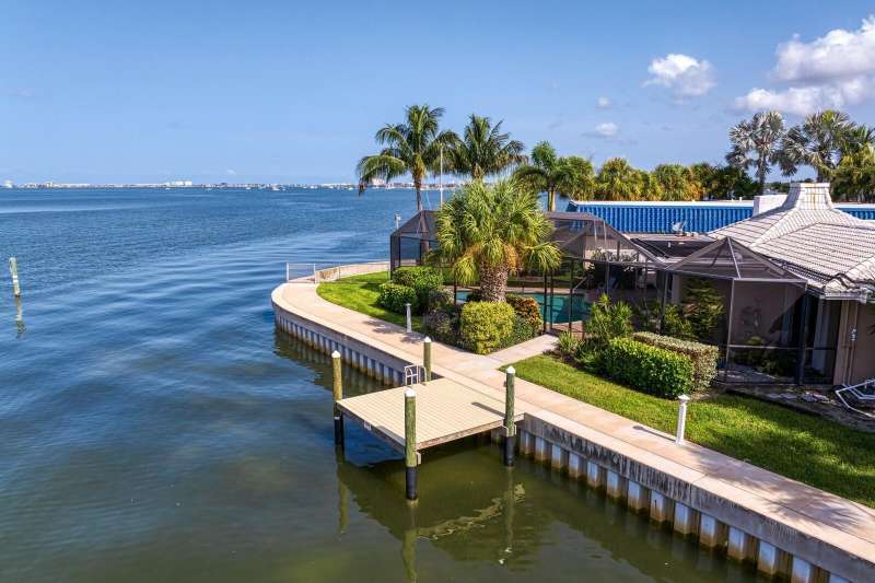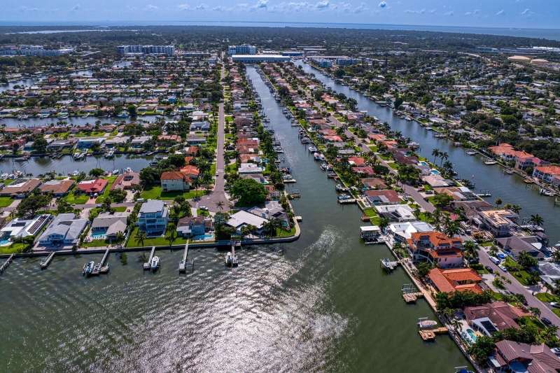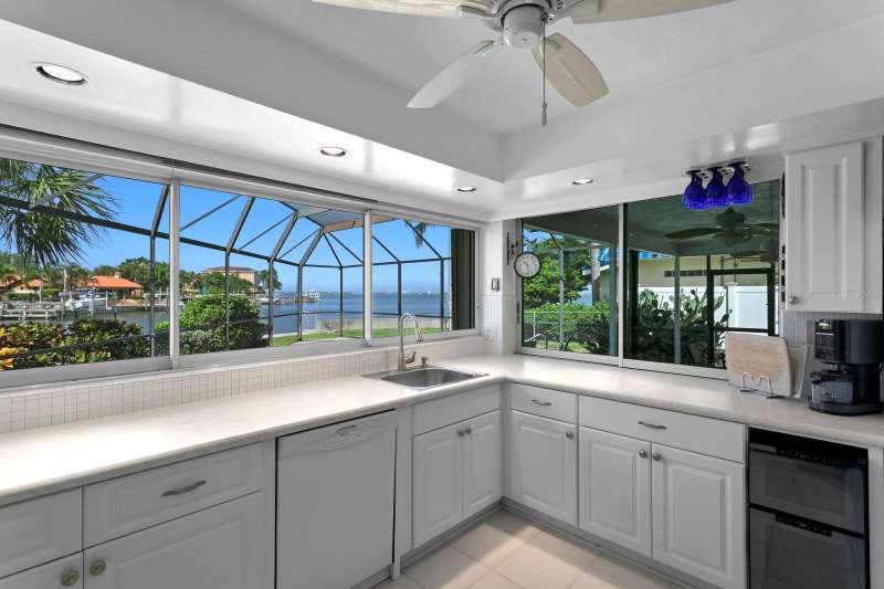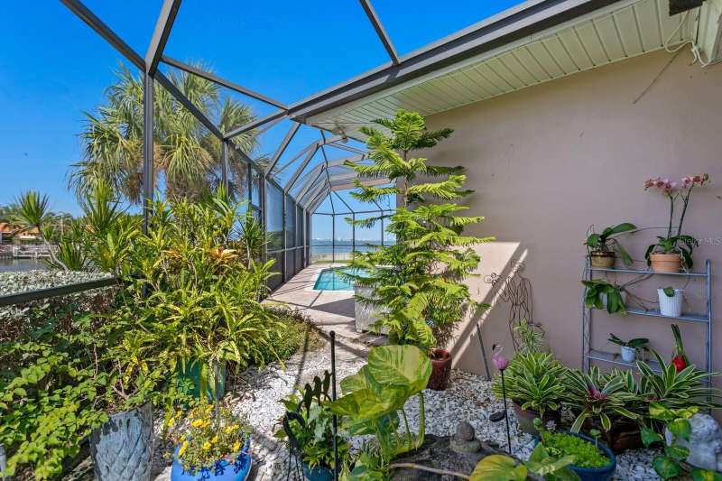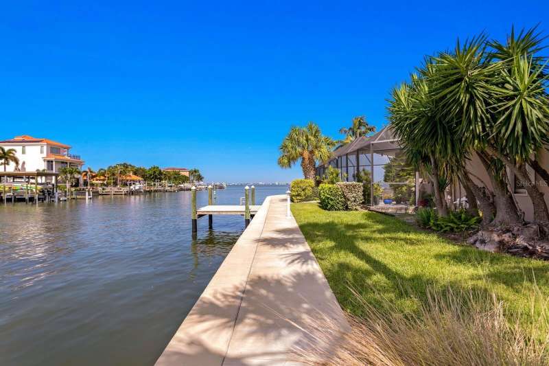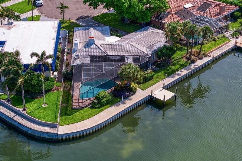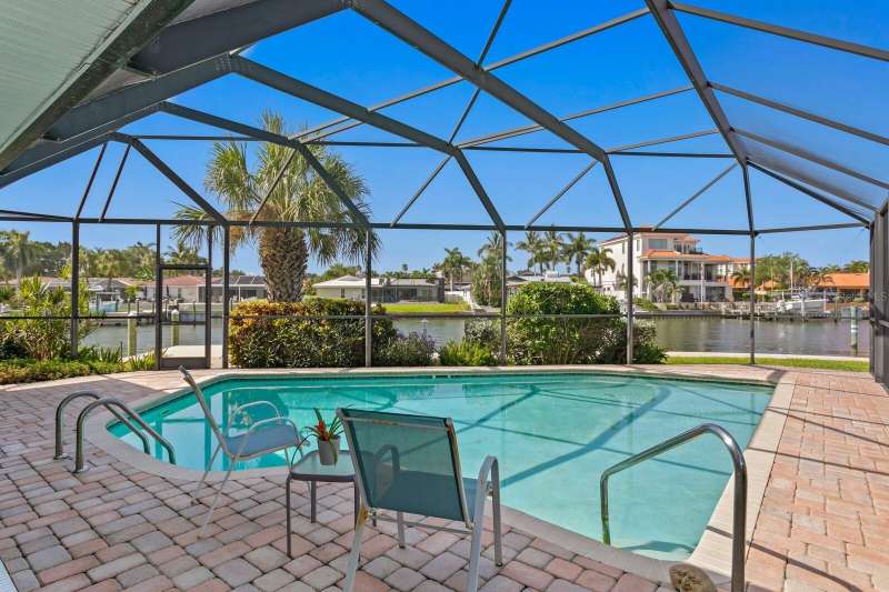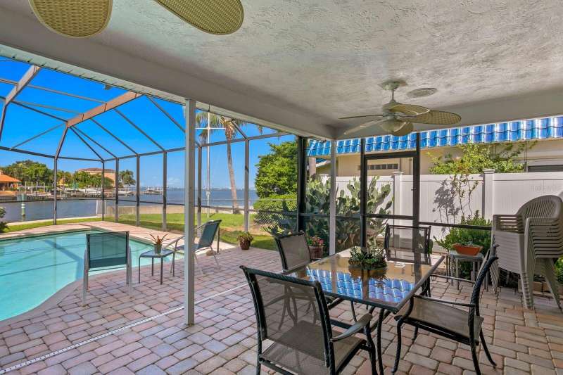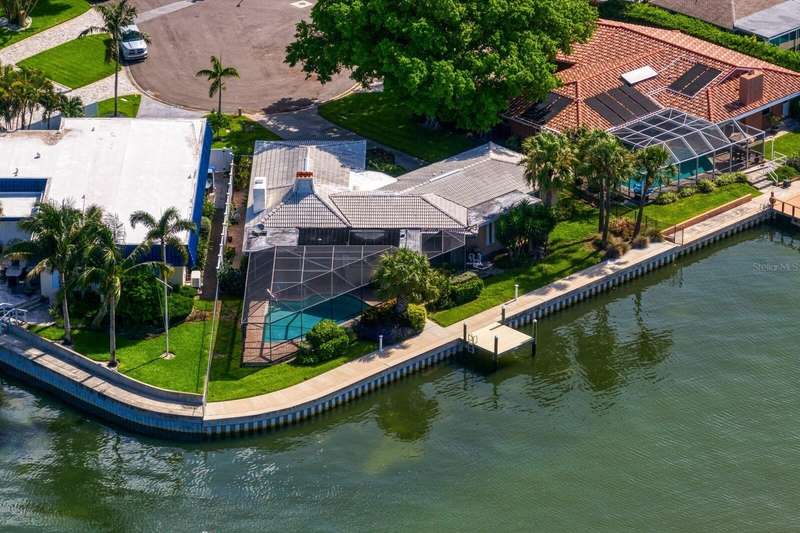 Under contract-accepting backup offers. If you live here, you’ll feel like the sunset belongs to you! On a wide canal opening out to Boca Ciega Bay, this location offers the best of Florida’s boating and waterfront lifestyle, Inside, you’ll find vaulted ceilings and a bright open layout. Kitchen duty certainly won’t be a chore with outstanding water views, lots of counter space and a breakfast bar. Pocketing windows allow for easy indoor-outdoor living. The living room focuses on a wood-burning fireplace, and the bedrooms are split for privacy. In the primary suite, there’s a large bedroom, an en suite bathroom with dressing area, shower and separate tub, and there’s a large walk-in closet. Sliding glass doors open to a private garden area that’s within the birdcage screen enclosure. The other two bedrooms each open through sliding glass doors to a side paver patio and garden area. Outside, relax under the covered lanai poolside and take advantage of the tremendous views. There’s nearly 125 feet of seawall on this pie-shaped lot, with a new dock and wrapped tie poles. The established Broadwater neighborhood is lush and well-maintained, with easy access to Ft. DeSoto and the Gulf beaches, or hop on I-275 to head south over the Sunshine Skyway Bridge to Sarasota, or be in vibrant downtown St. Petersburg in fifteen minutes. Sure, you’ll want to update this home to suit your taste, but the bones and the location are truly remarkable, and there was no water intrusion from the hurricanes! Make an appointment to see it for yourself today!