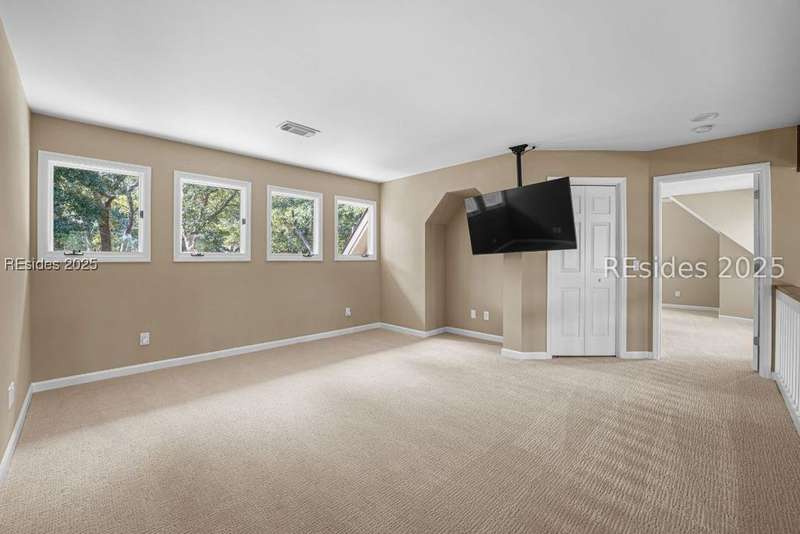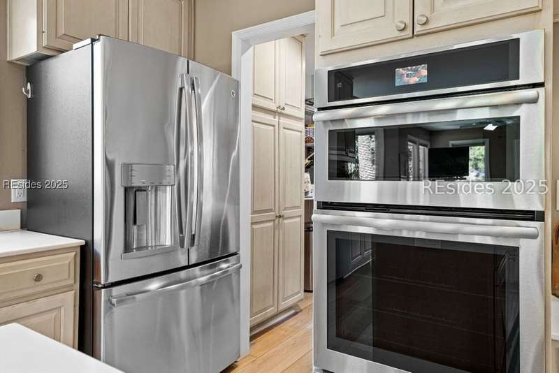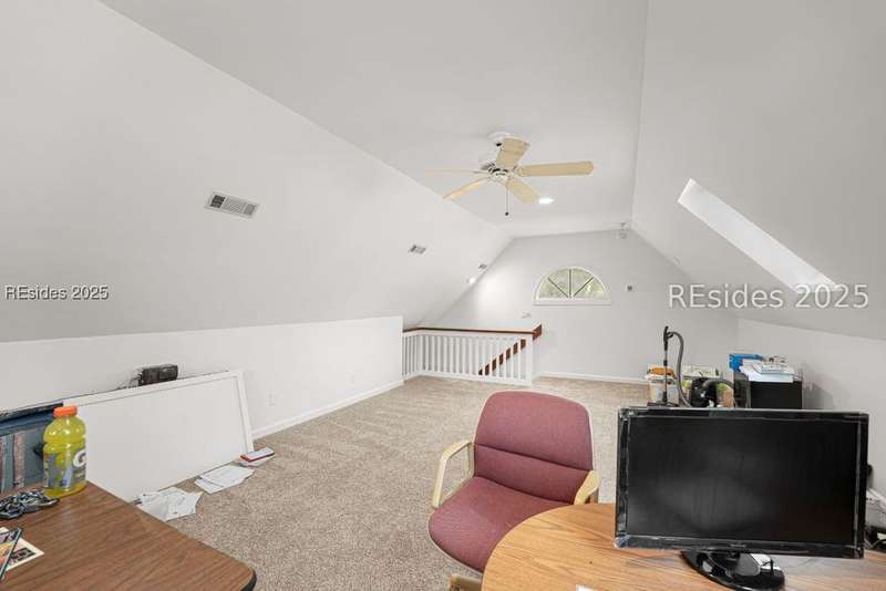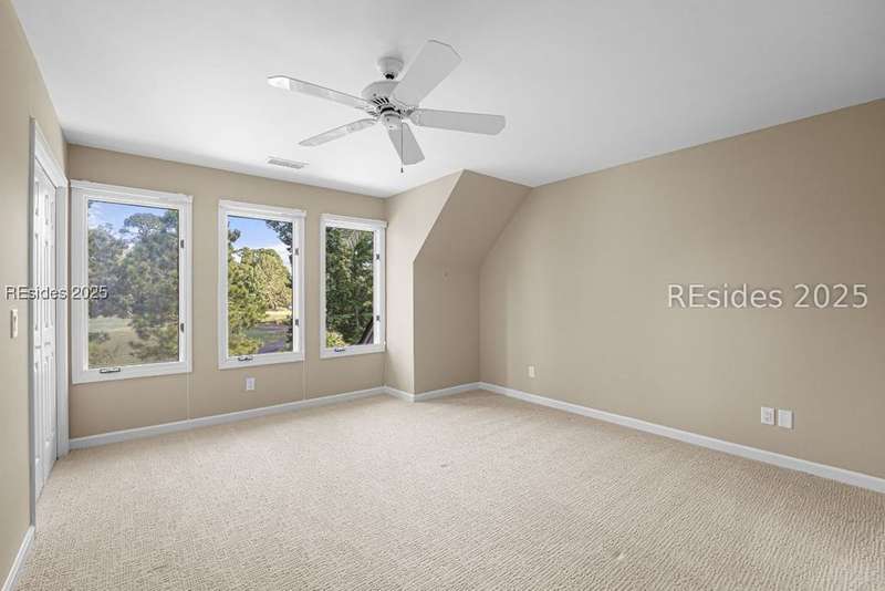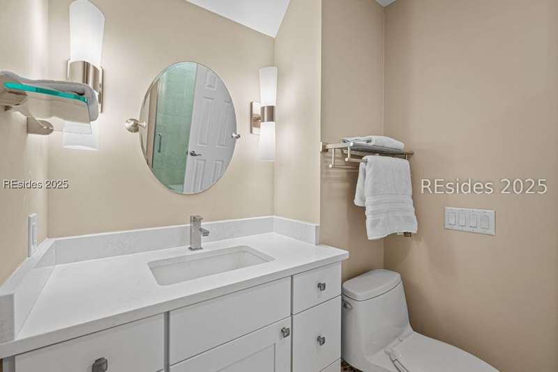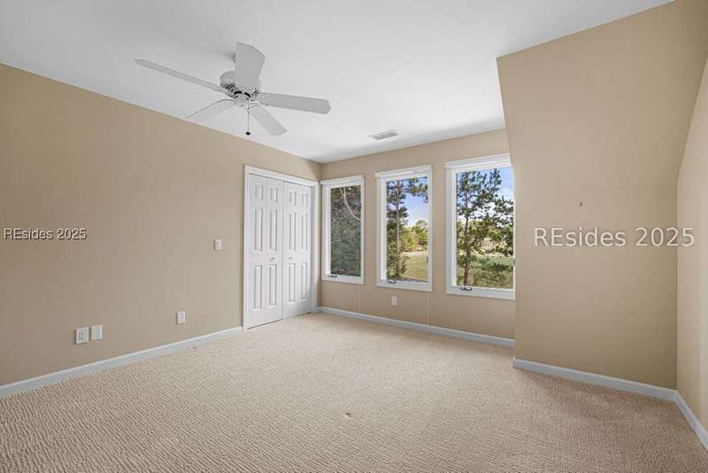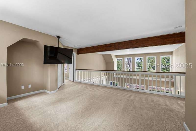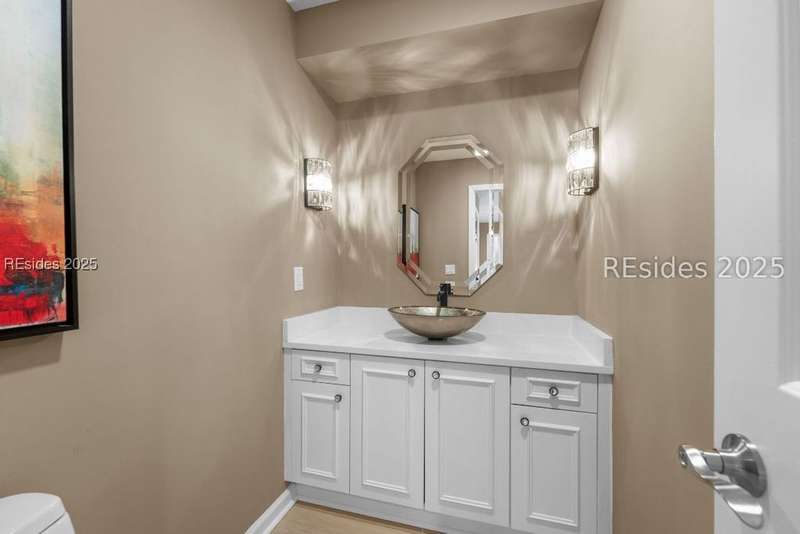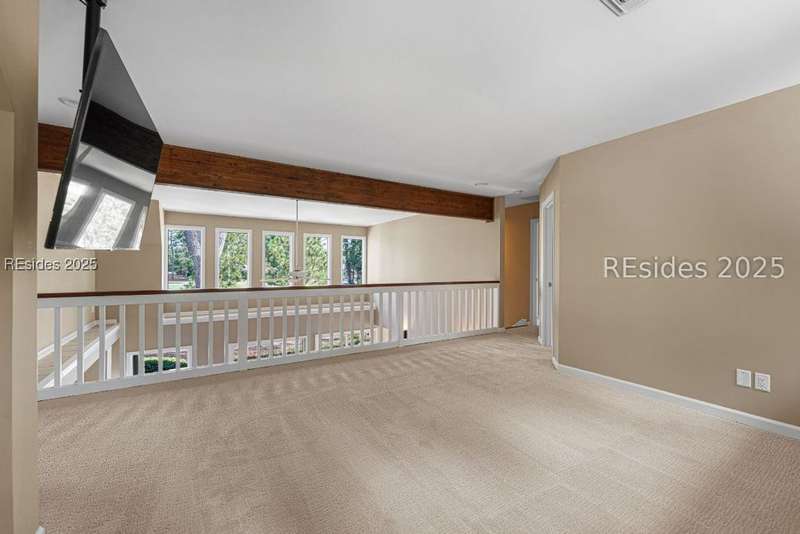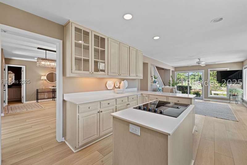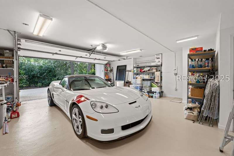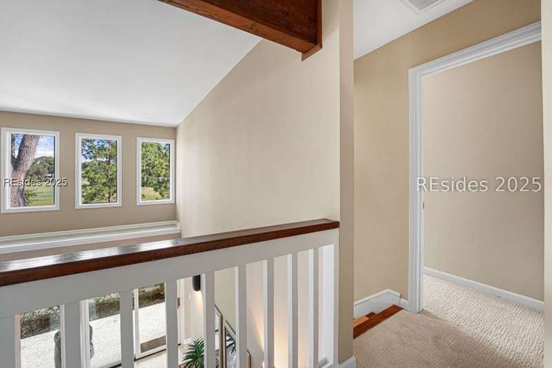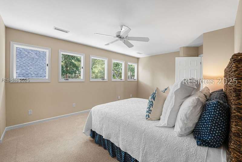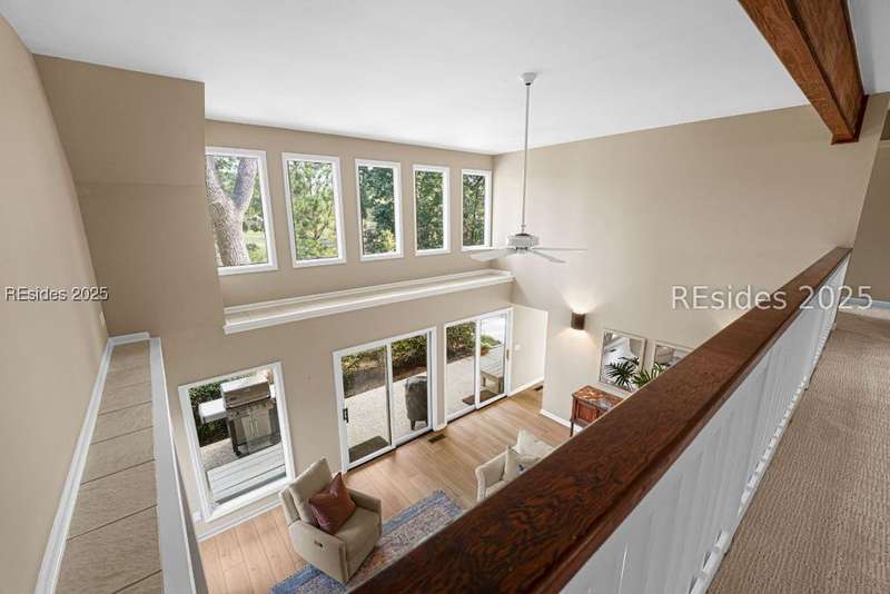 An extraordinary Lowcountry residence crafted by the acclaimed architect Kermit Huggins, offering expansive views of the 10th green of Oyster Reef Golf Course. This timeless home showcases distinct elements of Huggins' modern architecture, highlighting clean lines, warm neutral tones and a harmonious balance with nature, influenced by mid-century European aesthetics. Floor-to-ceiling windows and doors flood the home with natural light and allow for outstanding views of the lush and serene, private backyard. This spacious and well-appointed home has been meticulously maintained. The thoughtfully designed eat-in kitchen connects to a cozy family room. Adjoining is the open concept living room with soaring ceilings overlooking the backyard. The formal dining room is ideal for entertaining. The primary suite is conveniently located on the first floor with 3 additional guest bedrooms on the second floor along with a loft/living area. A spacious bonus room is located above the garage that can serve as an office or a 5th bedroom. Outdoor living is enhanced by a wrap-around patio adorned with plants and shrubs, a haven for butterflies and hummingbirds. The home is a masterpiece of Huggins, an intentional work of art designed for modern day living with exceptional views of the Lowcountry landscape from every room.