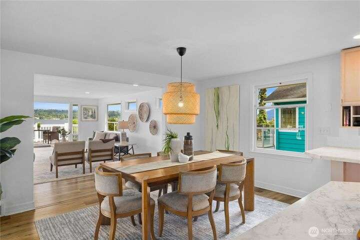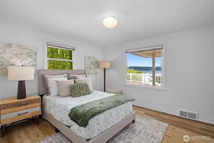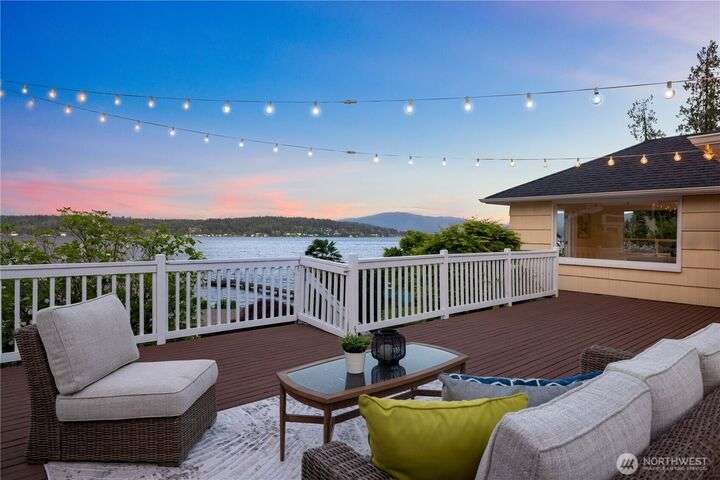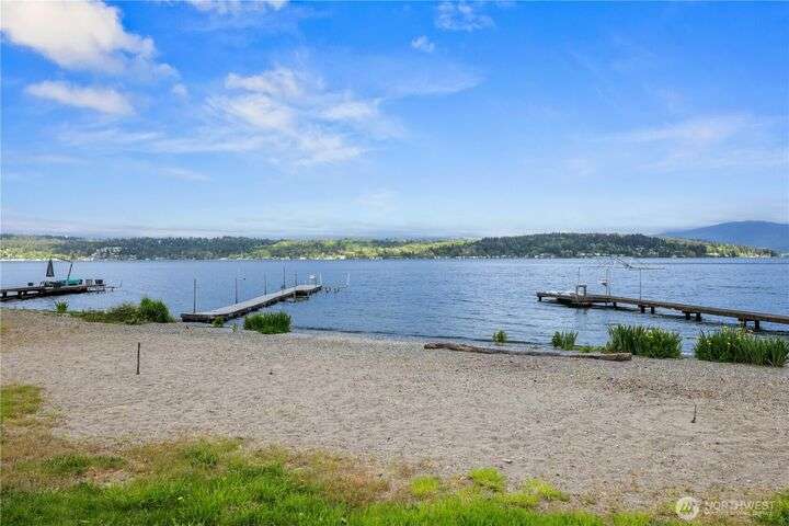 Tucked along a quiet lakeside lane in serene Bass Cove, this rare retreat invites you to live where the days slow and the lake sets the rhythm. Set on a shy half acre with 71’ of Lake Sammamish shoreline, this sun-washed bungalow opens to sweeping views of painted sunrises, distant mountain silhouettes and the lake’s ever-changing shimmer. Mornings begin with coffee on the expansive deck as the water turns to glass; evenings melt into golden hour, strung with lights and laughter, a hot tub steaming beneath the stars. A wide sandy beach and private dock beckon bare feet, idle swims, and sun-drenched hours. With a boathouse, ample parking, and room to stay, rent, or reimagine, every footprint in the sand feels like a memory in the making.