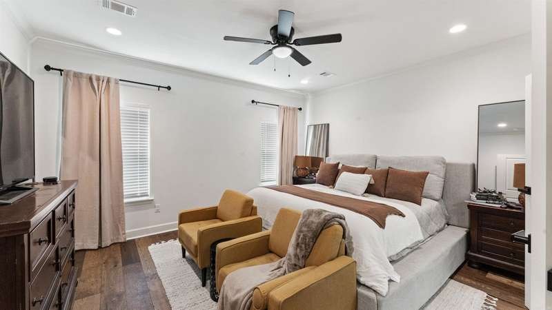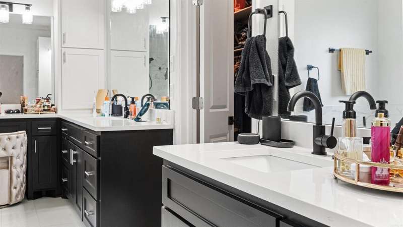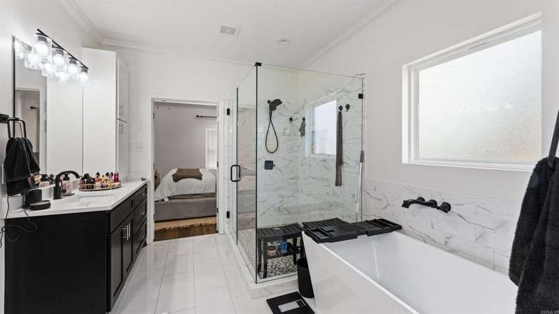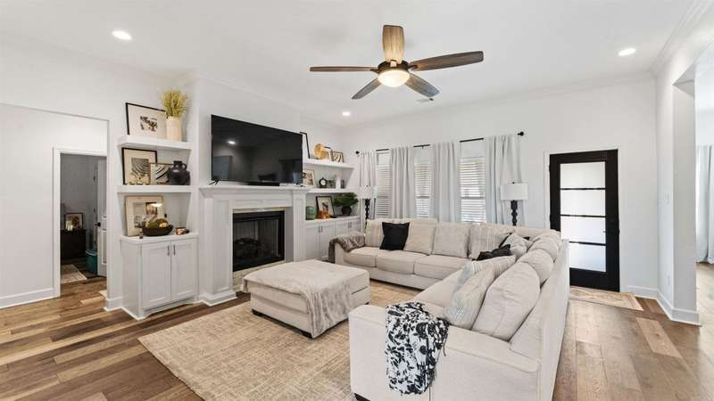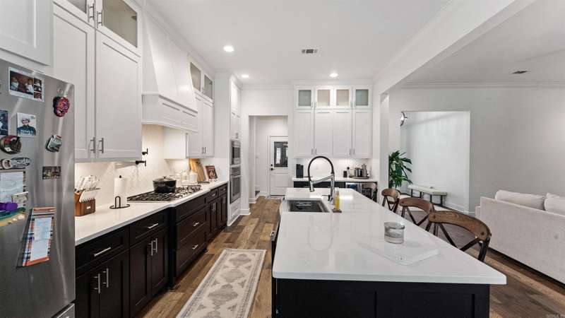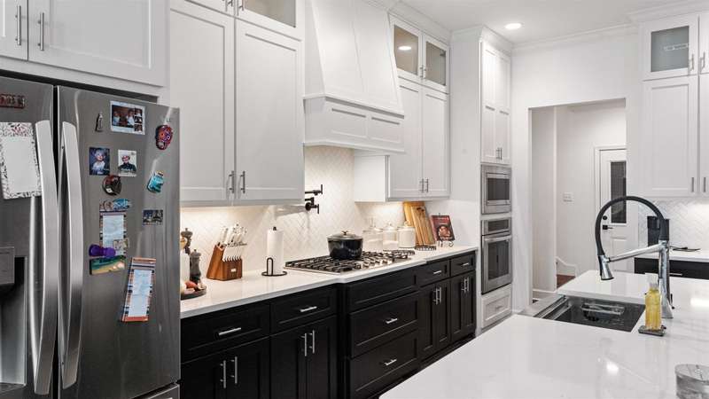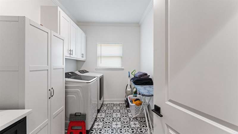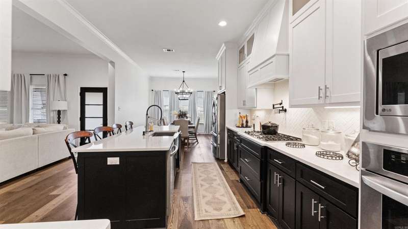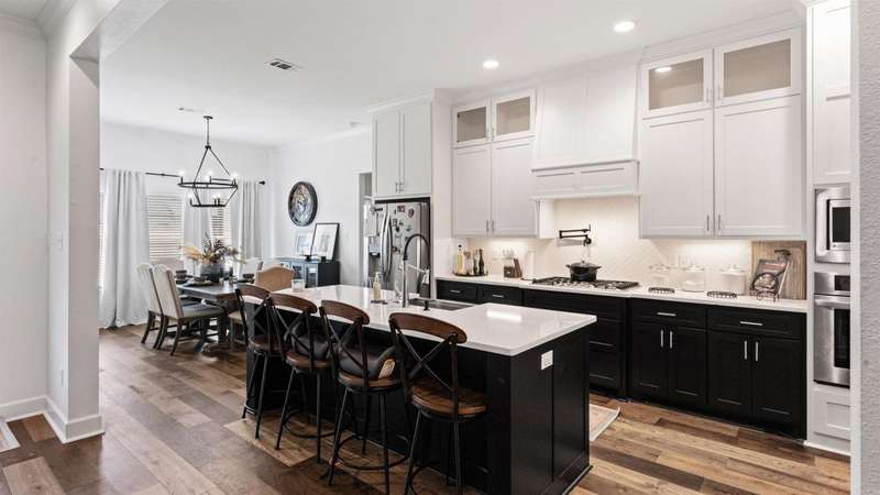 This home has a beautiful covered front porch with cathedral ceiling, custom double front door. Great room has built ins with fireplace, overlooking kitchen with large island, gas cooktop with pot filler, wall oven. Dining area is large with custom lighting. Powder room by laundry rm , walk in pantry. Primary has tile shower with free standing tub, make up vanity and his and her vanities. Other bedrooms have deep closets and have bathroom with double sinks. Upstairs has bonus room or fifth bedroom.