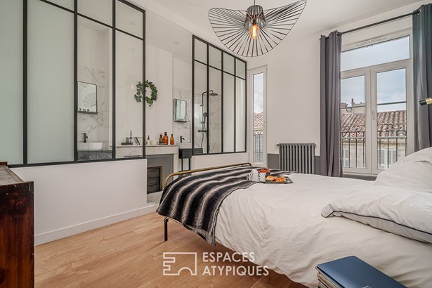 Each material was selected with absolute rigor. The entire complex was designed by the owners, who successfully blended the heritage elements of the old building with a masterful contemporary touch. Moldings, fireplaces, and high ceilings interact with refined volumes and a cozy atmosphere, where every detail contributes to creating a unique living space. The sleeping area is centered around a prestigious master suite with generous volumes, where the room radiates with transparency. The choice of materials reveals a subtle aesthetic, between raw linen, natural stone, and custom-designed furniture. Two other comfortable bedrooms share a functional family bathroom. A separate dressing room can easily accommodate an office or a fourth bedroom, depending on needs.