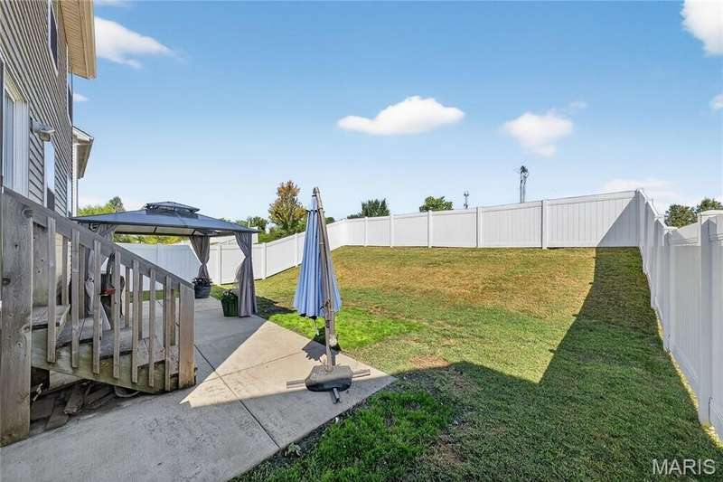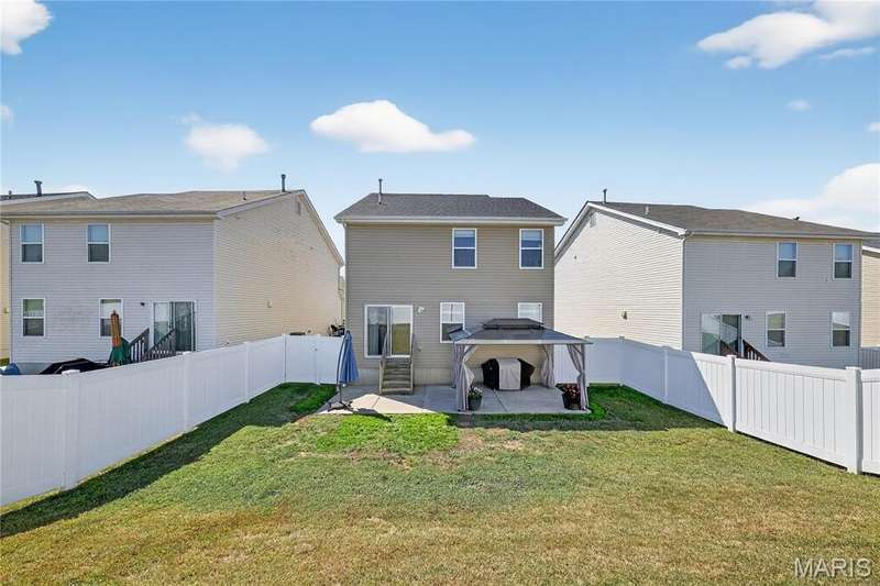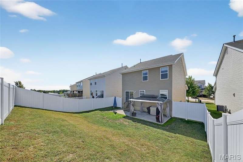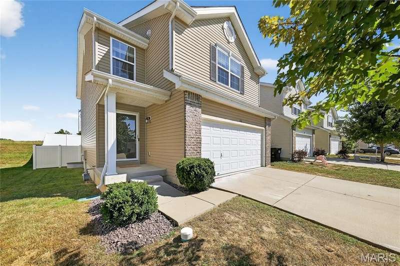 Charming Home in Prime Location Discover comfort, convenience, and an unbeatable location in this beautiful home! Featuring an open-concept living room with elegant laminate flooring, a bright kitchen and dining area that opens to a extended private patio and 6 ft privacy fenced backyard—perfect for entertaining or relaxing outdoors. Main level powder room offers added convenience for everyday living and entertaining. Upstairs, you’ll find a spacious primary bedroom with two walk-in closets one as large as 11 x 6 ft. and a full en suite bathroom with large shower. Two additional bedrooms each offer their own walk-in closet, ceiling fan, and share a full bath with a tub and shower combination. You will not want to miss the lower level with egress window that allows for perfect light and is ready for your finishing touches. The subdivision offers a playground for family entertainment, sidewalks and street lights. Walking distance to Journey Elementary school. Showing will begin September 10, 2025 Call for you private showing. Additional highlights include an attached two-car garage with automatic openers, a large basement for extra storage, and a top-rated Wentzville School District location, with the elementary school just steps away. Don’t miss your opportunity to make this exceptional home yours—schedule a showing today!