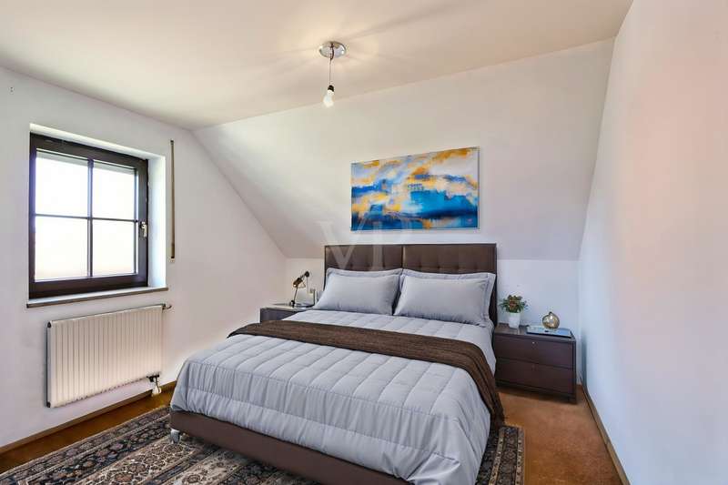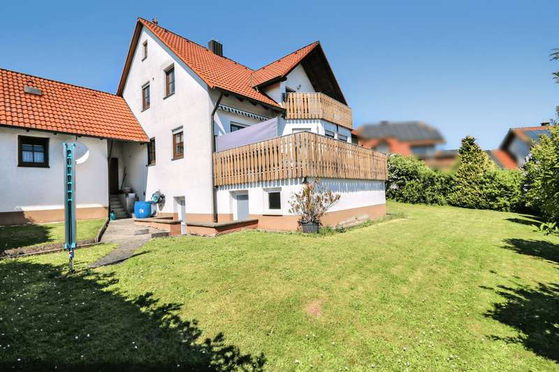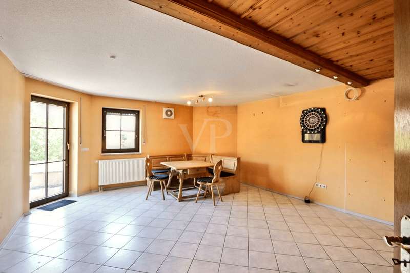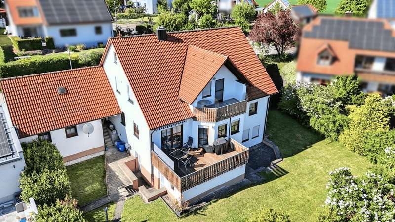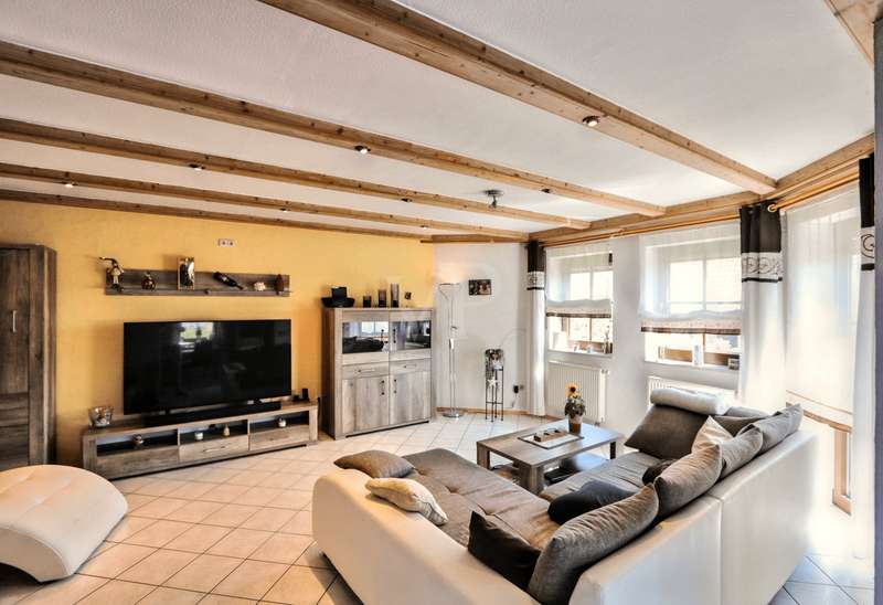 For sale is a well-kept two-family house with granny apartment, which was completed in 1994. This property impresses with its generous living space of approx. 238.93 m² and is situated on a plot of approx. 702 m². The layout is ideal for either generational living or for a large family. The house offers a total of eight rooms, divided into two three-bedroom apartments and an additional granny apartment in the basement. This area offers flexible usage options, whether as a private retreat or as a separate living area for demanding family constellations. The room layout includes open-plan living and dining areas that create an inviting and communicative living atmosphere with a tiled stove and underfloor heating. Two balconies and a terrace offer additional outdoor space to enjoy the grounds, which have been landscaped for easy maintenance. On the first floor, a cozy tiled stove provides pleasant warmth. The property is heated by central heating, which ensures a pleasant indoor climate. The property has always been kept in a well-kept condition, which noticeably enhances the overall impression and allows potential buyers to move in immediately without having to carry out extensive renovation work. The large double garage offers enough space for two vehicles. The location in a popular, quiet residential area underlines the attractiveness of this offer. This residential area is known for its pleasant surroundings and yet offers good connections to all the necessary facilities for daily life, such as shopping facilities, schools and public transport. The size of the plot and offer further potential for personal adaptations or extensions to further increase living comfort or realize specific wishes. The architecture and construction of the house are designed to meet modern living requirements while leaving room for individual design. With its well-kept condition and well thought-out room layout, this property is an attractive option for families looking for a spacious and functional home. The modernizations already carried out and the maintenance of the house contribute to an all-round positive living experience. Please do not hesitate to contact us for further information or to arrange a viewing. Convince yourself of the numerous advantages of this property. We look forward to your inquiry.