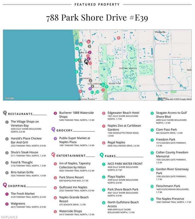 Nestled in the heart of Naples, this charming 2 bedroom, 2 bath condo offers a serene tropical setting that captures the essence of resort-style living. Hidden Lake Villas is located west of 41 in the sought-after neighborhood of Park Shore, where you're just minutes away from pristine white-sand beaches and world-class shopping and dining experiences. Conveniently located between the best of both worlds Olde Naples and Mercato you are minutes to Venetian Village and Waterside Shops. Park Shore Beach offers private beach access for members with a beautiful park, restrooms and private parking lot. Public beaches including Lowdermilk Park, Seagate Beach, and Clam Pass are also nearby, providing endless opportunities to enjoy the white sand and calm Gulf waters. Whether it's morning walks, sunset views, or a full beach day, the coast is always nearby. Residents enjoy a rich array of community amenities, including a resort-style swimming pool, a stylish clubhouse, and well-maintained pickleball and tennis courts for the sports enthusiast. Fitness aficionados will appreciate the gym and fitness center, while book lovers can retreat to the tranquil lounge and library. Every Wednesday evening during season, the pool-side happy hour becomes a cherished gathering spot, fostering warmth and camaraderie among neighbors. This home is the epitome of convenience and enjoyment combined with relaxed coastal charm, promising a lifestyle that is as captivating as it is comfortable.