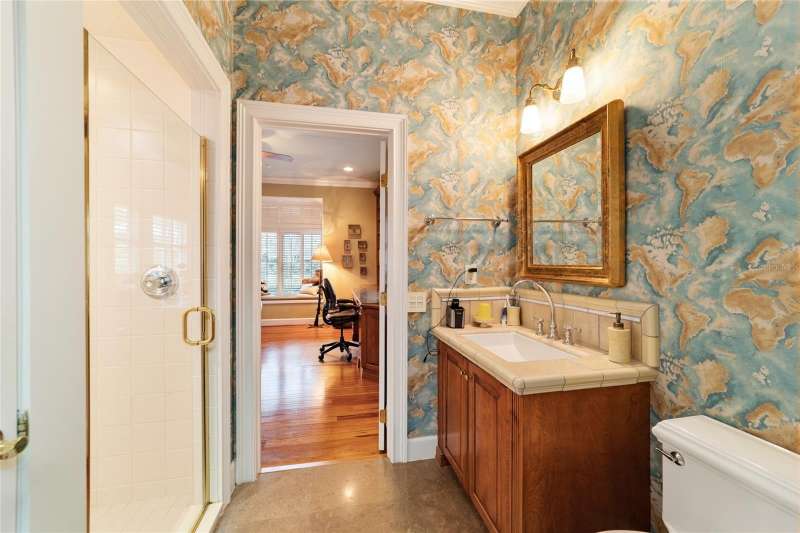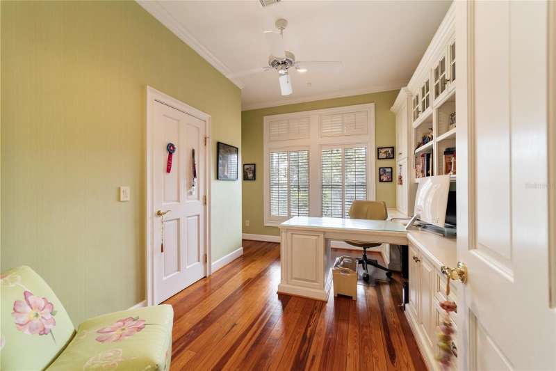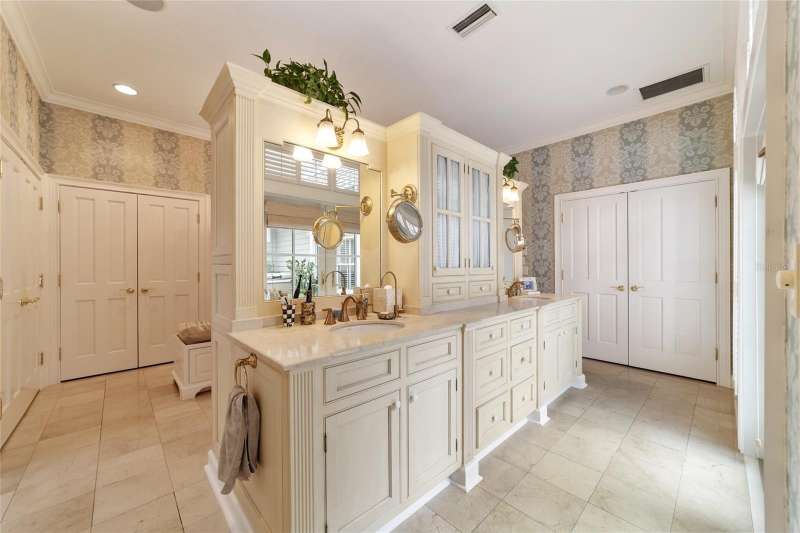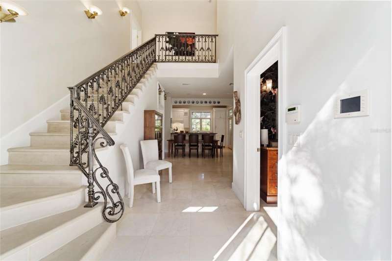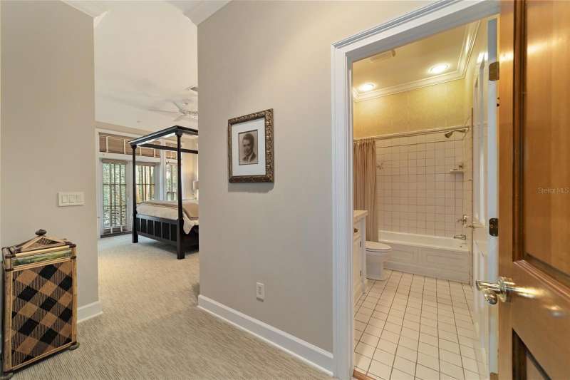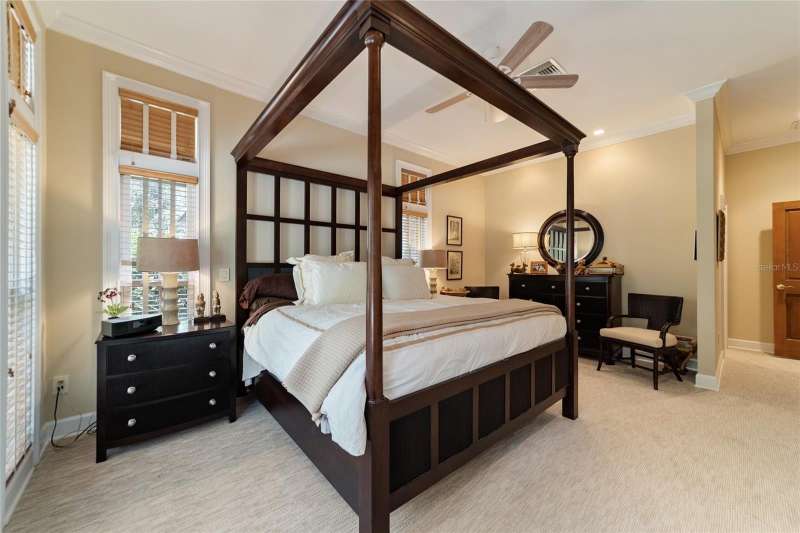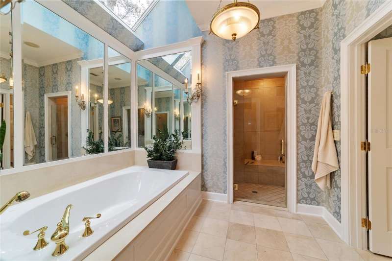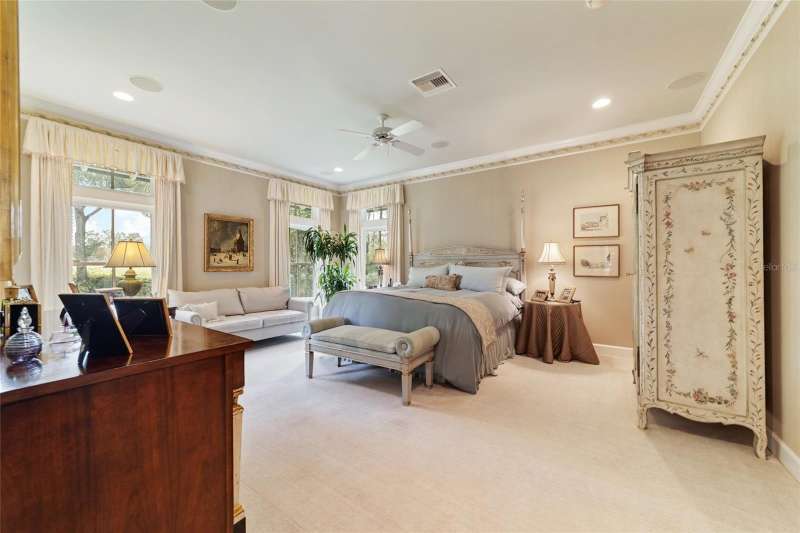 Nestled among beautiful gardens on 2.26 acres in the Country Club of Ocala, this stunning estate features a main residence and a charming guest house. Spanning 7005 sq ft, the main residence has 5 bedrooms, 5 full baths and 2 half baths, each thoughtfully placed for comfort and privacy. As you enter the foyer of this gracious estate home, you are led to the formal living room with gas fireplace and a stunning coffered ceiling. The adjacent formal dining room opens to a southern style veranda, offering views of the beautifully landscaped property. Throughout the main living areas, antique pine floors add warmth and character, while custom built-ins throughout the home crafted by Dixie workshop, provide an abundance of storage. The heart of the home is a gourmet chef’s kitchen, showcasing Brazilian Bahia granite countertops, custom wood cabinetry and a spacious center island with freezer drawers and plenty of space to add additional seating. The breakfast room leads into a cozy family room, with vaulted wood beam ceilings and a wall of built-ins and is the perfect gathering space for friends and family. A private interior courtyard, accessed through the kitchen hallway, provides additional space for outdoor dining or relaxation. Each bedroom is designed with its own private wing and en-suite bath, ensuring privacy for all. The owner’s wing includes a private study and a luxurious primary suite featuring double vanities, a separate tub and shower and built-in closets with a dressing area, connecting seamlessly to an exercise room and a serene private courtyard with a hot tub. A bonus room on the second floor is currently being used as a game room but could have many uses. Small mudroom leads to the 3 car garage, which is climate controlled. The charming guest house spans 3,096 sq ft and features kitchen with granite countertops with seating for barstools and dining area that opens out to family room/ game room. In addition, guest home has 2 bedrooms, 2 full baths and a half bath, along with a large exercise room with an infrared sauna, offering a perfect retreat for visitors or extended family. This estate is a true outdoor enthusiast's paradise, with golf course frontage on two sides with views of holes 15 and 16, including a tranquil water view. Enjoy your own sports court, suitable for pickleball, volleyball, or basketball, conveniently connected to a dedicated outdoor putting green or dive into luxury with the infinity pool and spa, heated and equipped with a salt system, featuring a stunning water spout and fireball accent that create a captivating ambiance. A pergola adds a stylish touch to the outdoor space, perfect for al fresco dining and relaxation. The expansive grounds are fully fenced, with a brand new motorized driveway gate providing both security and elegance. This smart home also features advanced technology for ease of living and convenience, and the home is equipped with a full house generator for peace of mind should there be a power outage. Home has 2 wells, one for irrigation and one for both homes, a water treatment system and a reverse osmosis water filter in the kitchen, master suite, and pool house. Beautiful gardens surround the property, creating a tranquil atmosphere that enhances its sense of serenity and privacy, yet this peaceful retreat is just 15 minutes from Downtown Ocala and within 30 minutes of the World Equestrian Center and the Ocala airport, offering the perfect balance of seclusion and convenience.