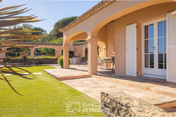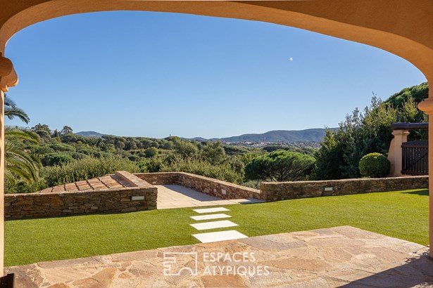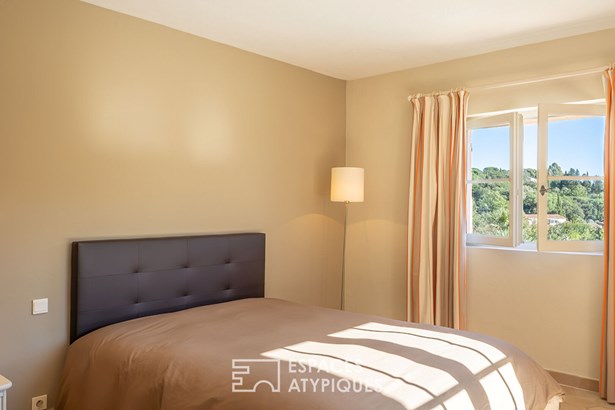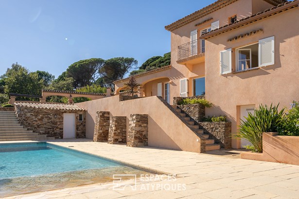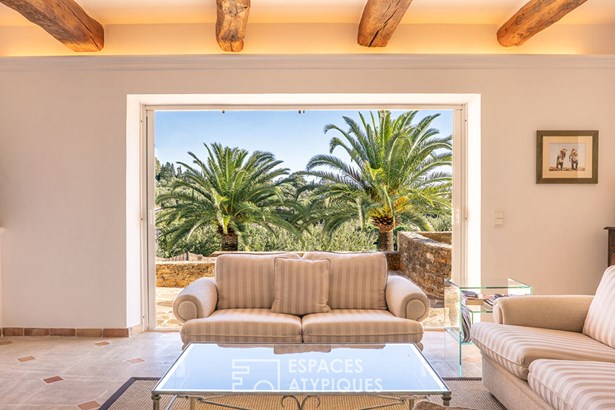 Located at the foot of the castle and the old village of Grimaud, this exceptional property will captivate you with its breathtaking views and quality construction. From its commanding position, this bourgeois mas of approximately 180 sqm, built on two levels, reveals its understated charm, blending Provencal authenticity with a relaxed lifestyle on a 3,100 sqm enclosed plot.
