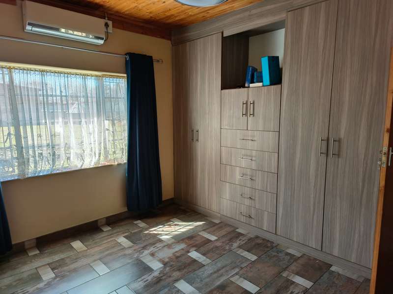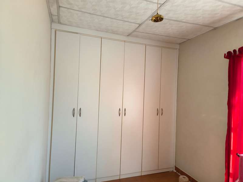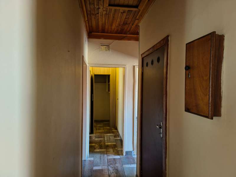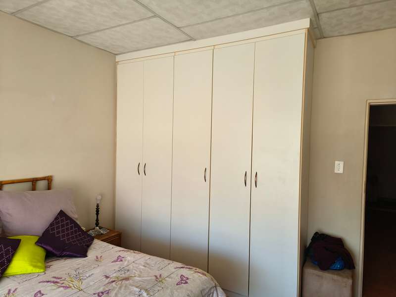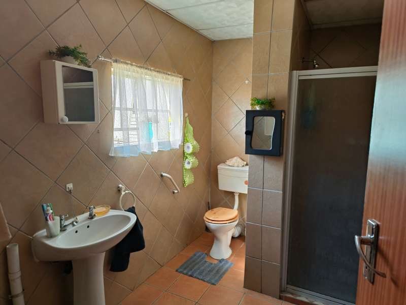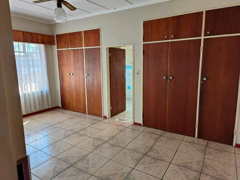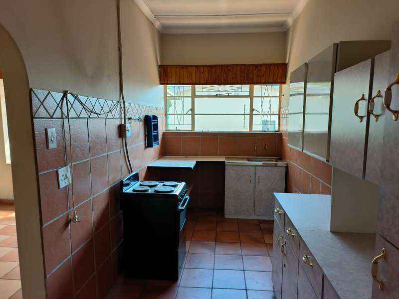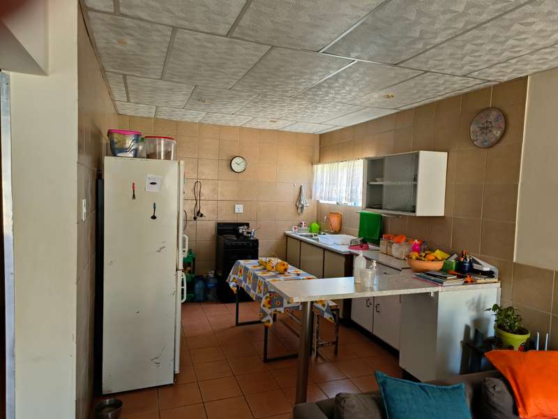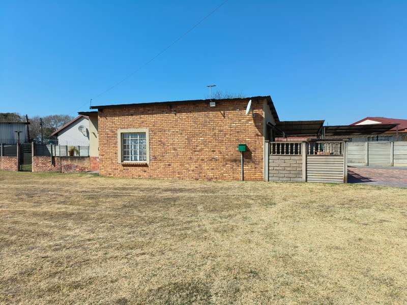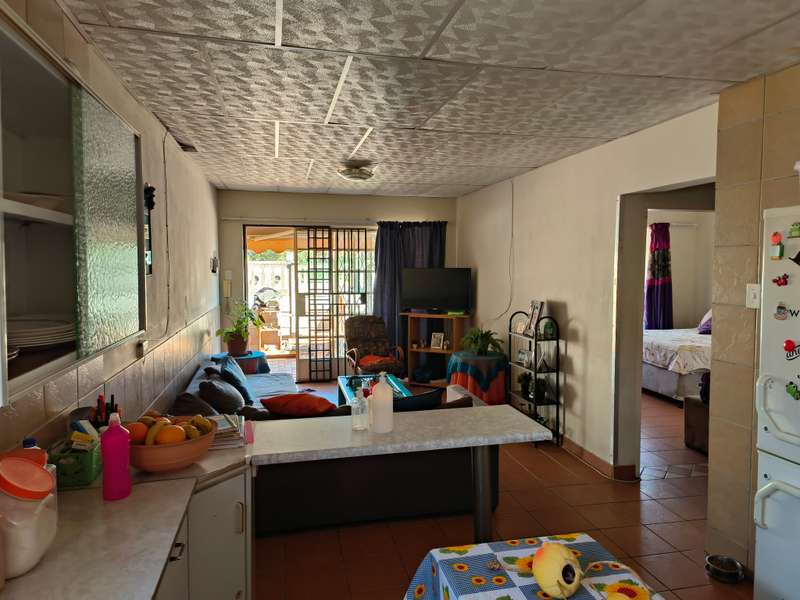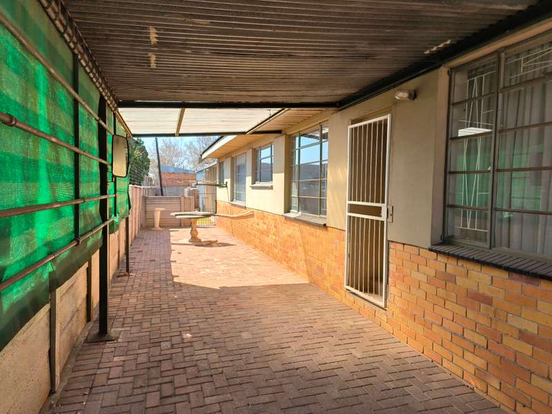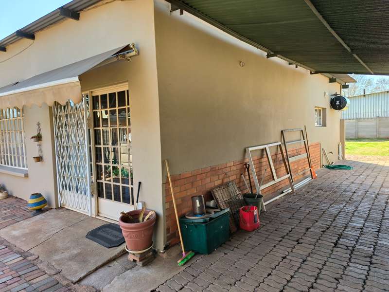 EXCELLENT LOCATION!! A great family home on a 2498 sqm stand with a huge garden and lots of space, close to center of town and all amenities. This property offers 3 spacious bedrooms with 1 bathroom a large lounge dining room and a kitchen with ample cupboards with a gas hob and electric stove with a closed up veranda at the kitchen. Attached to the house is a large 1 bedroom 1 bathroom flat let with a kitchen with it's own entrance and yard area and carport, which area can with a minor change, be switched back to form part of the main house. Further improvements a loose standing 2 bedroom 1 bathroom flat let with a kitchen and living area with it's own closed up yard and a carport, just right for the extended family or which can be rented out for additional income. A steel structure garage and store room with a double carport and a rondawel type steel store room. A well maintained garden with an equipped bore hole pumping +-1200l/h. Property fully fenced with palisade fencing in the front and JvR security. THIS IS A MUST VIEW, DON'T MISS OUT ON THIS ONE!!