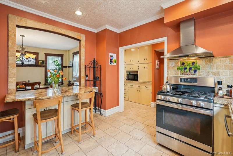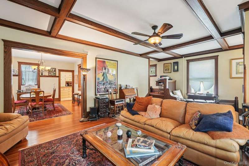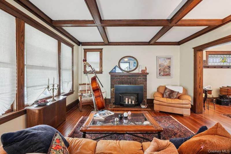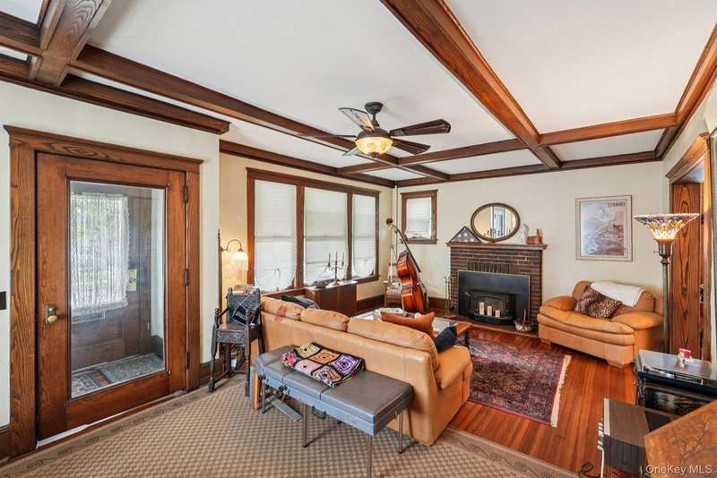 Welcome to 74 E Maple in Suffern ? a timeless 1900 Colonial filled with character, charm, and modern comfort. Nestled on a beautiful tree-lined dead end street just steps from downtown Suffern, this 4-bedroom, 2-bath residence showcases original woodwork, oak hardwood floors, solid wood doors, and orignal doors, doorknobs and hinges. Molding was locally sourced & hand-picked chestnut wood. 9 Foot ceilings.The inviting front porch sets the tone for this warm and welcoming home. Inside, a spacious entry leads to sun-filled living areas including a cozy family room with a wood-burning fireplace with chestnut coffered ceilings. The kitchen is a perfect blend of classic and updated with granite countertops, a walk-through butler's pantry, and an adjoining formal dining room. Off the kitchen, a large family room with a wood-burning stove and sliding doors to a covered deck, ideal for relaxing or entertaining. The stained-glass windows throughout tell the stories of the original owners. The second floor hosts four comfortable bedrooms and an updated full bath with a clawfoot tub. Upstairs, the finished third floor provides vaulted ceilings with a versatile bonus room, perfect as a studio, guest suite, or 5th bedroom. The partially finished walk-out lower level expands the living options with a family room, exercise area, and ample storage. A detached one-car garage completes the property.With its blend of architectural detail, thoughtful updates, and a prime location near shops, dining, and transportation for commuters, half mile to Suffern train station this home is truly one-of-a-kind. In 1924, Lafayette Theatre, also named for the Revolutionary War hero the Marquis de Lafayette open its doors. During the war, Commander-in-Chief General George Washington and his regiment made camp in the village. Lafayette Avenue, the main street of Suffern, is named in honor of Revolutionary.