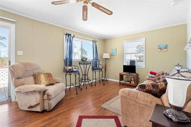 This fisherman's cottage is the perfect get away for you! Located across from the Billy Goat Hole boat launch, you'll make it to the boat launch and back faster than any of your friends! The property also includes a 15 x 35 boat shed. You will find unmatched nature viewing opportunities from this home, positioned between views of the bird sanctuary and Mobile Bay. The 14 x 25 covered back porch is the perfect place for a fish-fry at the end of a nice day on the water. This perfect fisherman's cottage is currently laid out with one bedroom with two closets. The original floor plan had two bedrooms, with one closet each. The missing wall could easily be re-installed and convert this home back to having the two original bedrooms with one full bathroom. You will find a full kitchen and ample living space on the main floor. The 10 x 25 front deck is ideal for enjoying the sun and watching all of the Island life go by. Spend your afternoons watching the boats go by, enjoy looking at the Bay, or take your bikes and hop on the Mobile Bay Ferry for an afternoon at Tacky Jacks. Under the home you will find a finished room that could be additional storage or bunk space, an additional storage area. There is also a bathroom with a shower. Best of all, there is a 15 x 35 boat shed, ready for your boat, complete with a fish cleaning table. Don't miss the chance to own the perfect fisherman's cottage! The neighboring home at 123 Bienville is also listed for sale and the seller will consider selling the vacant lot at 121 Bienville Blvd- offering a truly unheard-of opportunity to own up to three properties in this stunning location! Schedule a showing today to make this your island getaway! * Listing Agent and Brokerage make no representation to the accuracy of the listing description, or statements, including any potential deed restrictions, zoning or local regulations, and other matters or record. Buyer to verify all information independently. Any and all updates are per Seller(s).
