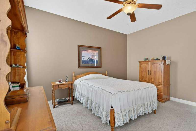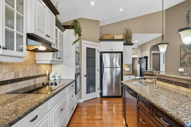 Welcome to your next home in Hillview Estates! This beautiful bungalow sits in one of the neighborhood’s most desirable locations, featuring a walkout basement that backs onto a quiet, peaceful canal. Step inside to an open-concept main floor that feels bright and airy, flowing seamlessly from the front door to large back windows overlooking your private, tree-lined yard. At the front of the home, an office with French doors and large windows offers an ideal workspace or can easily serve as a fourth bedroom. Hardwood floors flow throughout the kitchen and living area. The kitchen features two-tone cabinetry, stone countertops, and a spacious sit-up island, perfect for cooking or entertaining. The living room centers around a stone-clad fireplace, creating a warm, inviting atmosphere. The primary suite includes a walk-in closet and an ensuite bathroom with a shower and large soaking tub. Conveniently, located just outside the bedroom is the main-floor laundry room for easy access. Downstairs, the fully finished walkout basement offers a large recreation area with a second gas fireplace, two generous bedrooms and a full bathroom. One of the bedrooms features French doors that open directly onto the outdoor patio. Additional features include a heated, fully finished garage, a new roof (2025), and a built-in irrigation system. This home is truly move-in ready and waiting for its next owners. Homes like this don’t come up often in Hillview Estates, so book your showing today!