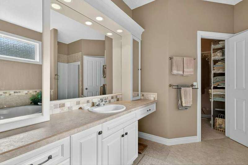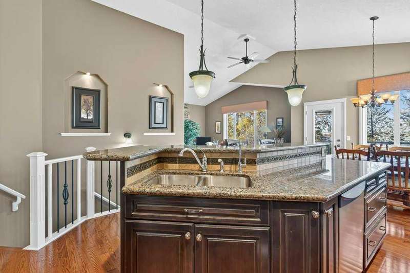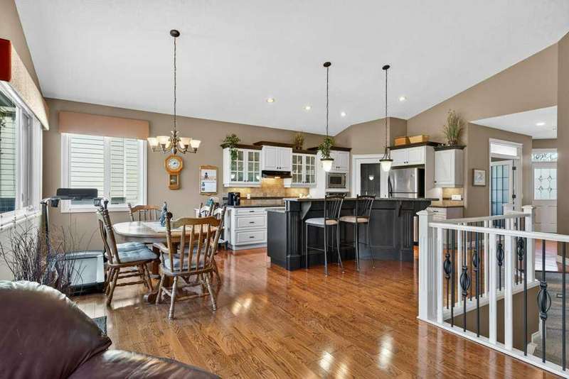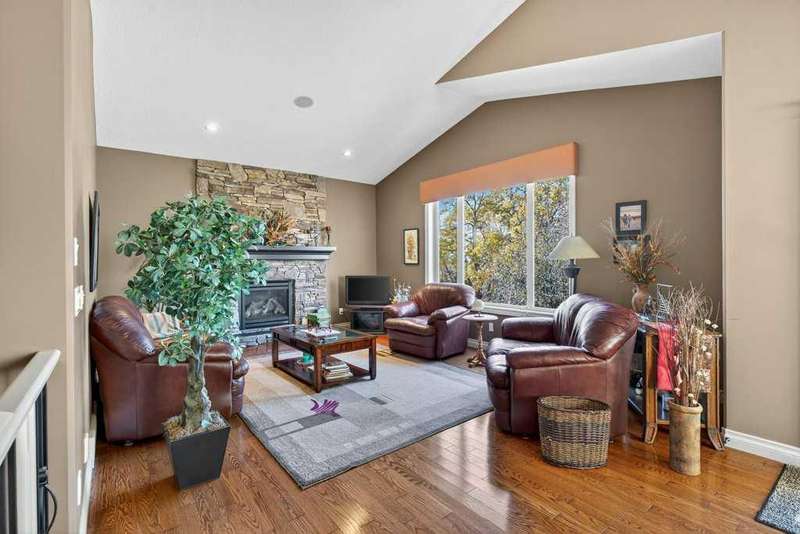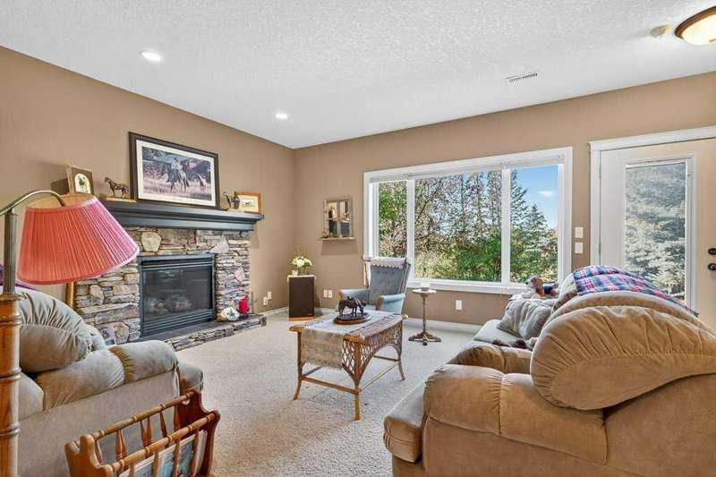 Welcome to your next home in Hillview Estates! This beautiful bungalow sits in one of the neighborhood’s most desirable locations, featuring a walkout basement that backs onto a quiet, peaceful canal. Step inside to an open-concept main floor that feels bright and airy, flowing seamlessly from the front door to large back windows overlooking your private, tree-lined yard. At the front of the home, an office with French doors and large windows offers an ideal workspace or can easily serve as a fourth bedroom. Hardwood floors flow throughout the kitchen and living area. The kitchen features two-tone cabinetry, stone countertops, and a spacious sit-up island, perfect for cooking or entertaining. The living room centers around a stone-clad fireplace, creating a warm, inviting atmosphere. The primary suite includes a walk-in closet and an ensuite bathroom with a shower and large soaking tub. Conveniently, located just outside the bedroom is the main-floor laundry room for easy access. Downstairs, the fully finished walkout basement offers a large recreation area with a second gas fireplace, two generous bedrooms and a full bathroom. One of the bedrooms features French doors that open directly onto the outdoor patio. Additional features include a heated, fully finished garage, a new roof (2025), and a built-in irrigation system. This home is truly move-in ready and waiting for its next owners. Homes like this don’t come up often in Hillview Estates, so book your showing today!