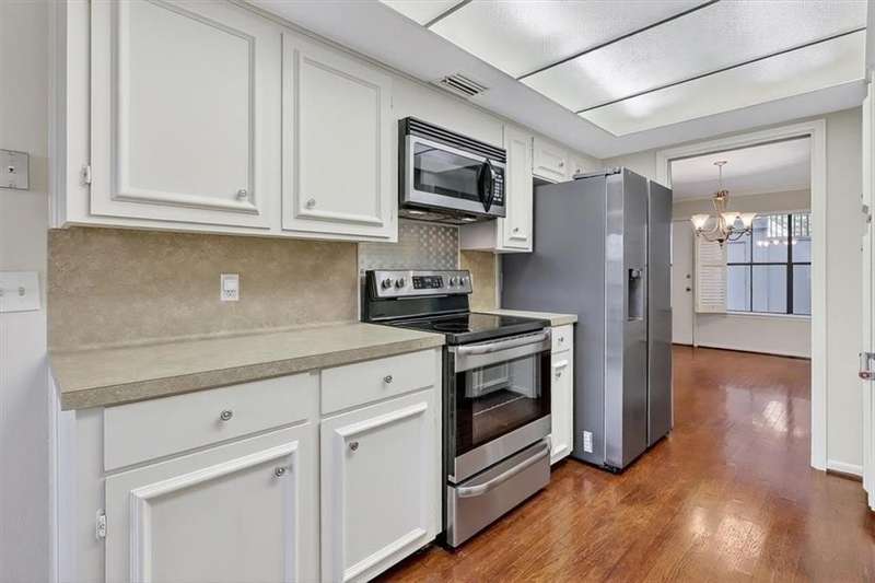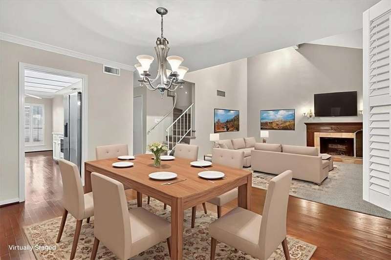 A Country Club Townhome is living at its finest! The property offers privacy and peaceful living with a gated entry and attendant, beautifully manicured grounds, a private front courtyard and a private back patio. An exceptional floor plan offers spacious living with two primary bedrooms. One primary bedroom is downstairs and the second primary bedroom is upstairs, with both offering ensuite baths. A third bedroom and third bathroom are also located upstairs. Bright and fresh, all stainless kitchen appliances, recently replaced hvac and beautiful hardwood floors make this home special. Imagine an evening stroll around the lake where you can enjoy viewing the many ducks and graceful swans that make their home here. Let beauty come into your life. An end unit, always in demand, plus private front courtyard and a covered and private back patio that can be viewed from the living room to bring the outdoors inside. The home also offers all new carpet, a recently replaced AC, a new stove, new microwave, a double garage with alley access, and a side yard.