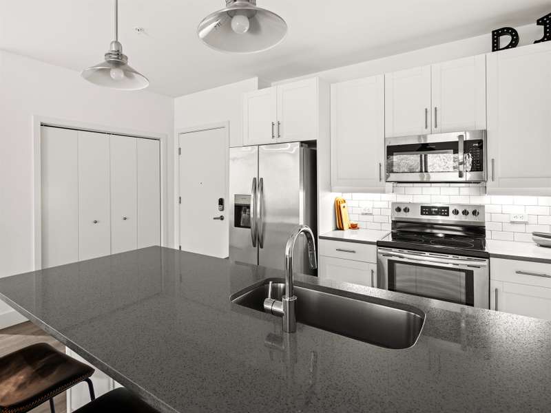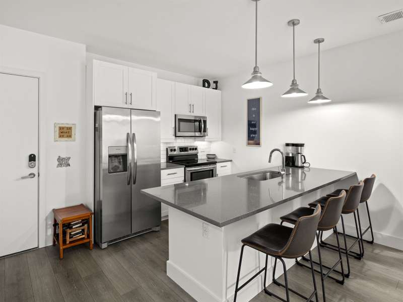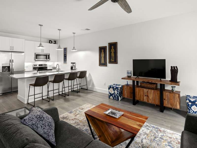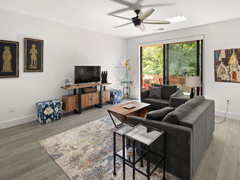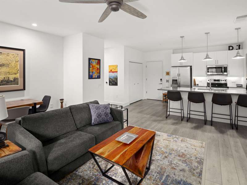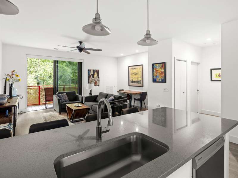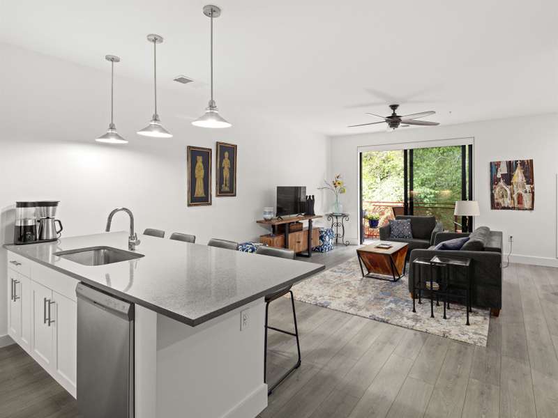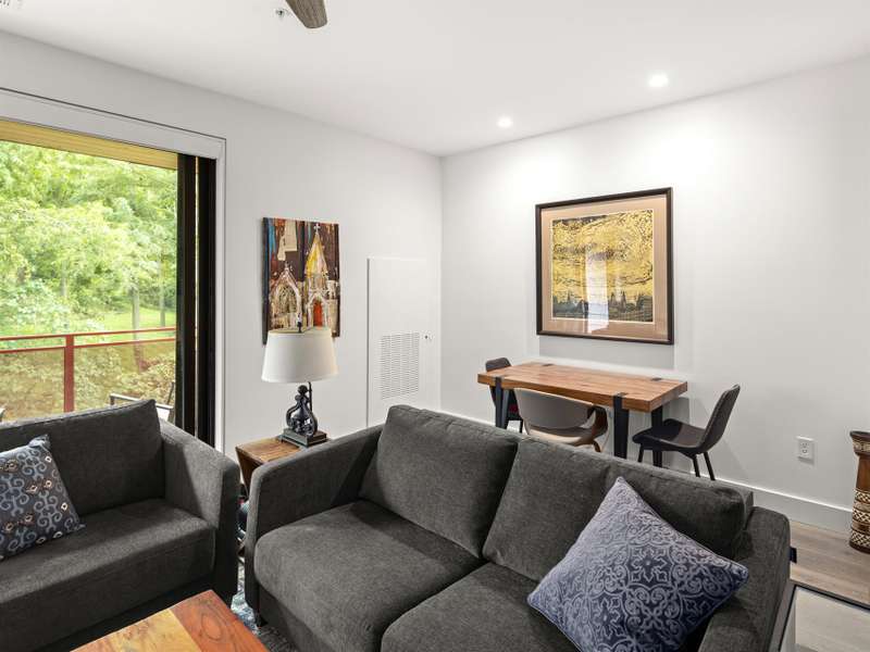 Smart choice opportunity for pied a terre living near vibey West Asheville, The RAD and vibrant downtown. Enjoy New Belgium, the greenway and proximity to all of the culture, arts and outdoors that makes Asheville such a prime place to live. The French Broad River is close by so walk, run, paddle or bike - your choice. There is a great room with space for a dining table or grab a bite at the breakfast bar. Just off the great room is a terrace with a soothing green view. On the quiet side of the building and on the lofty 4th floor you will savor the peace and quiet of home. Gather with neighbors on the large terrrace of the building overlooking New Belgium and the RAD What could be better? Only this: it is the best value in the building! Run don't walk to take a peek at this one bedroom onen bath condo at a super price before it is gone!