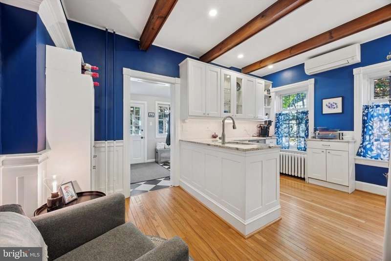 Location, Location, Location and THIS IS IT! This charming twin home, built in 1890, seamlessly blends historic character with modern comforts. The inviting open floor plan with it's high ceilings ,and recent renovations, is accentuated by beautiful wood floors and recessed lighting, creating a warm atmosphere perfect for gatherings. The gourmet kitchen, equipped with a built-in microwave, range, and dishwasher, is a culinary enthusiast's dream, making meal prep a delight. With three spacious bedrooms, this home offers ample space for relaxation and personalization. The thoughtfully designed layout includes one full and one half bathroom, ensuring convenience for both residents and guests. Ceiling fans throughout enhance airflow, adding to the home's comfort. Step outside to discover a quaint exterior featuring sidewalks and street lights, perfect for evening strolls in the neighborhood. The property sits on a manageable 0.05-acre lot, providing just the right amount of outdoor space for gardening or enjoying a morning coffee. Located in a vibrant community, this home is within walking distance from local amenities, including parks, shops, theatre, and dining options, making it easy to enjoy the best of the area in ""Everyone's Home Town"". This property is not just a house; it's a place to create lasting memories. With so many recent updates such as Electric, overhead lighting, refinished flooring, fresh paint and newer w/w carpeting you get to experience the charm and comfort of this delightful home.