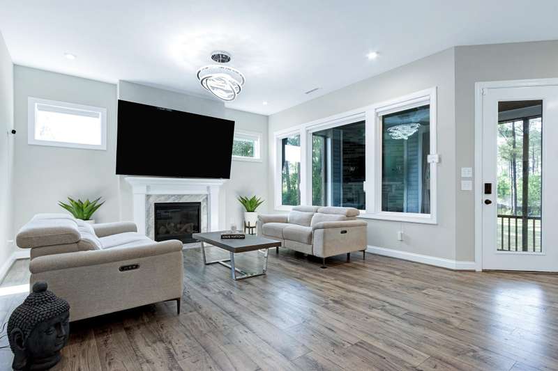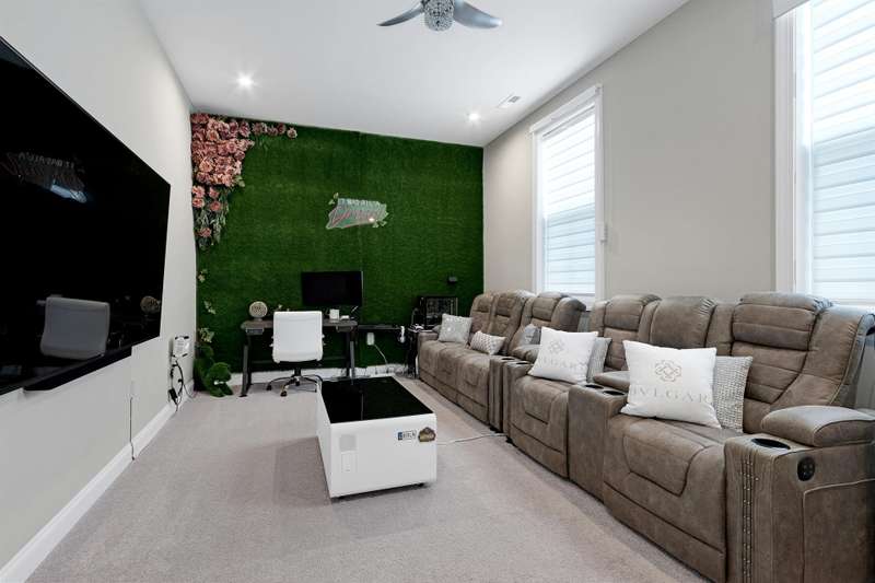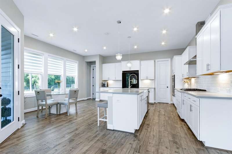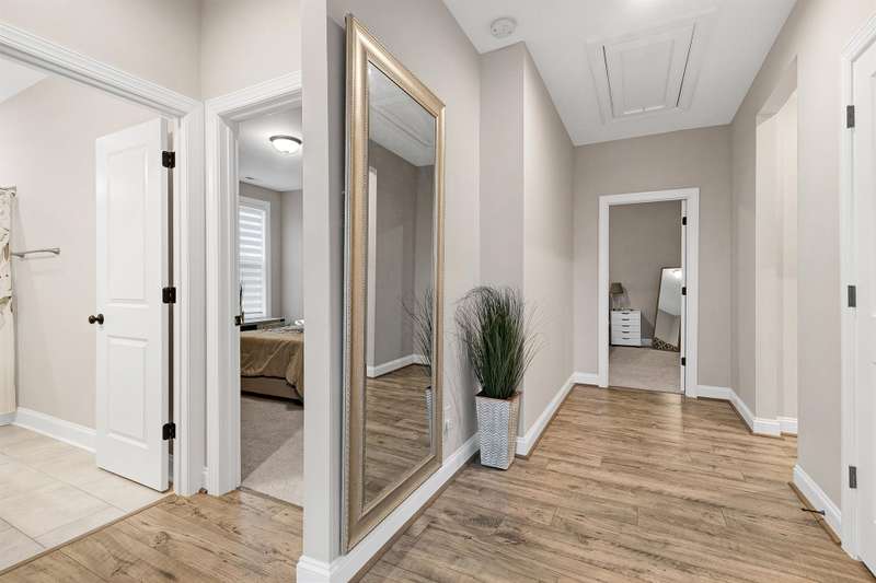 Welcome to this Better-Than-New Beauty in the desirable Weatherford Community, where luxury and serenity meet unmatched convenience. This stunning 5-bedroom, 4.5-bath home sits on a generous .59-acre lot and offers 3,323 square feet of thoughtfully designed living space. Unlike cookie-cutter new construction, this home provides space, privacy and peaceful living just minutes from major destinations, with no sacrifice in style or amenities. This home has curb appeal with drought resistant grass and landscaping, highlighted by exterior landscape lighting. The open concept floor plan includes a dramatic two story natural lit, entry foyer with an 8-ft luxury chandelier, a formal dining room or private office with French doors. The spacious living room features a gas log fireplace, elegant crystal lighting, remote controlled blinds and seamlessly flows into a chef's kitchen, complete with quartz countertops, upgraded stainless steel appliances, tile backsplash, gas cooktop and stainless hood exhaust, built-in wifi controlled wall oven and microwave, large island with seating for four and upgraded pendant lighting, ample cabinetry with soft close, under-cabinet lighting, and a walk-in pantry?plus the smart technology refrigerator conveys, forgot something on the list, no problem - look inside the fridge on the app. This plan offers an oversized breakfast nook for smaller or larger seating, you choose. A main floor guest suite with a private bath offers flexibility for multigenerational living. The drop zone and oversized 2-car garage with wiring for EV Chargers for everyday convenience and lots of storage. Upstairs, the expansive owner's suite features a tray ceiling, chandelier/fan combo, large walk-in closet, and a sunlit spa-inspired bath with separate dual vanities, tile floor, a walk-in ceramic-tiled shower with frameless glass surround, upgraded soaking tub and blinds for privacy, and separate water closet. This spa-like bath offers additional technology with moisture sensing exhaust fan and smart temperature controlled pull out spray handles at vanity sinks and shower control. Three additional bedrooms, two full baths, and a well-appointed laundry room with cabinetry and its own mini refrigerator complete the second floor. The large bonus room?ideal as a media room or flex space?features app-controlled lighting and remote blinds. Additional home features include, smart locks on all doors, app-controlled security, Ethernet wiring, remote-controlled blinds, 10' ceilings on main, and EVP flooring, and upgraded trim throughout. Outdoor living is a dream with a covered front porch, a screened-in back porch with its own gas logs, a grilling area inside a fully fenced backyard. Home offers rare space between neighbors unlike newer construction in higher priced neighborhoods. Conveniently located, with 45 minute commute times to RTP & RDU, 30 minutes to Downtown Raleigh & Cary, 20 minutes to major employers in Holly Springs (Novo Nordisk, Amgen, etc.) major retailers, movie theatres and dining or experience local restaurants, boutique shopping, Jack Marley Park, and more, all minutes away in Angier. Nearby outdoor recreation includes, local parks, dog parks, trails, Raven Rock State Park, Harris and Jordan Lakes, American tobacco trail, 2 hours from beaches and more. Don't miss your chance to own this upgraded, move-in-ready showstopper that blends elegance, smart technology, modern comfort and lifestyle in one exceptional home!