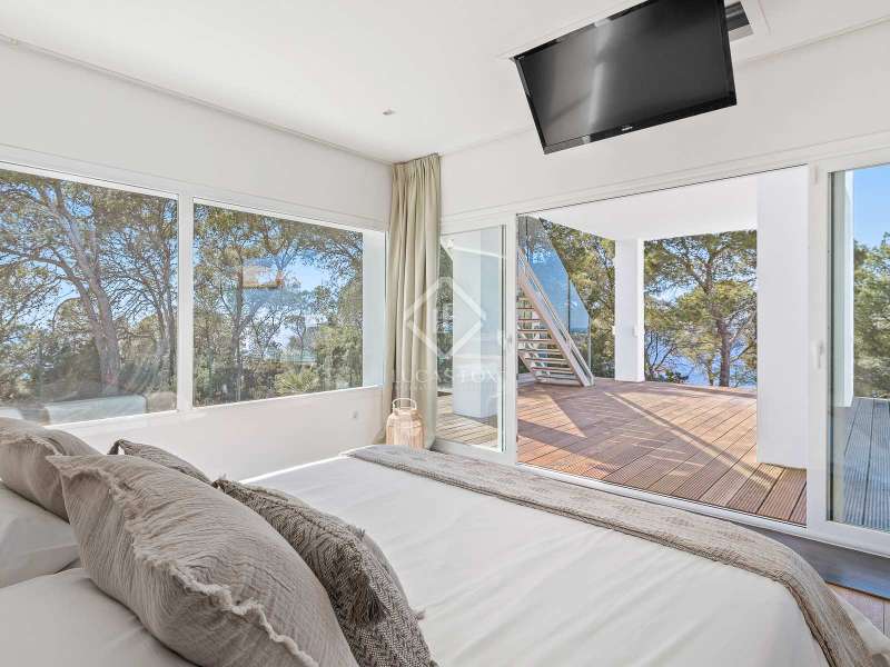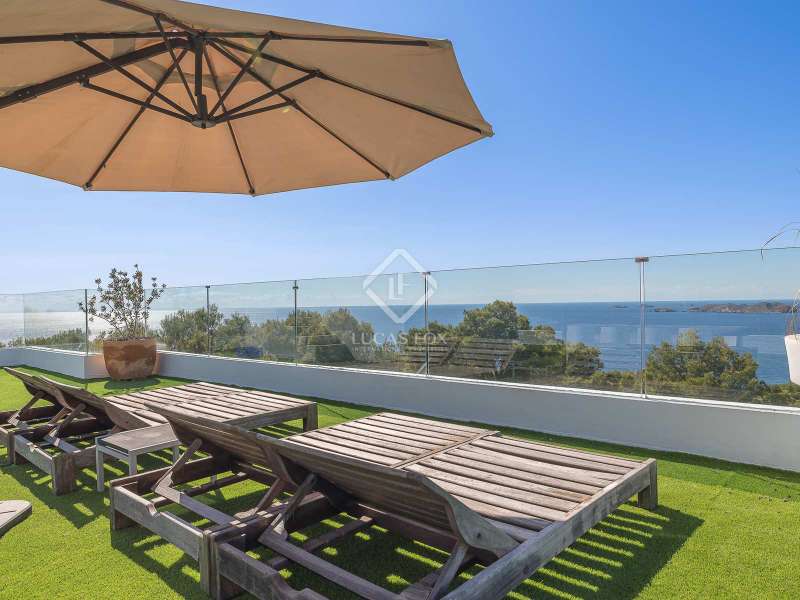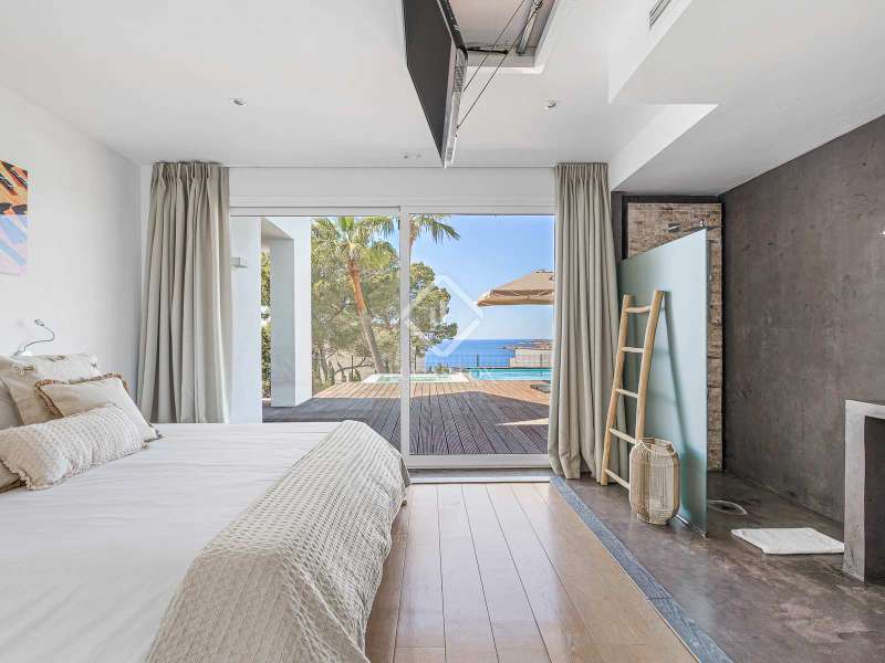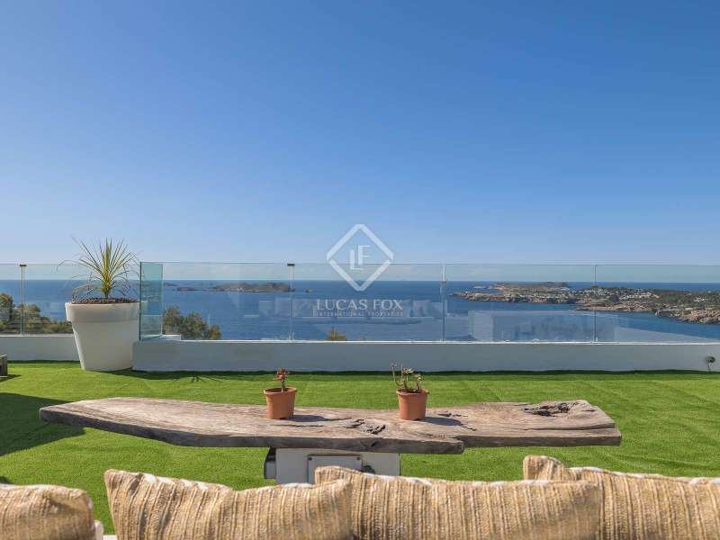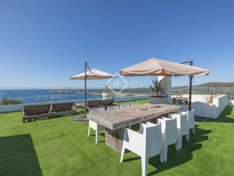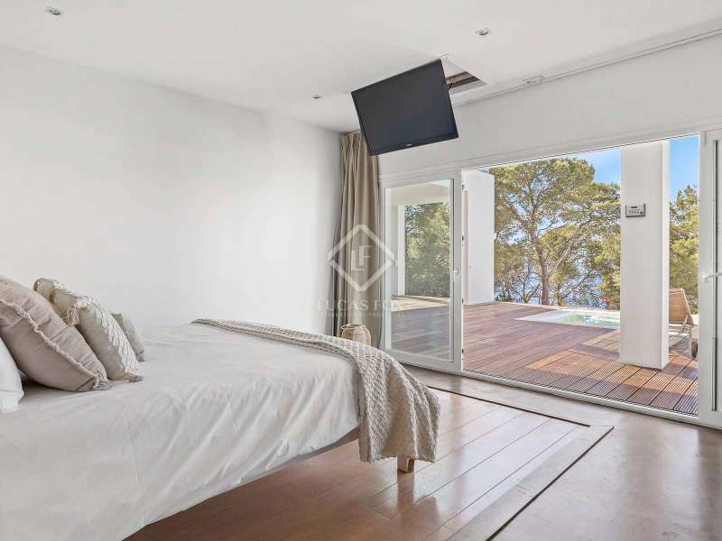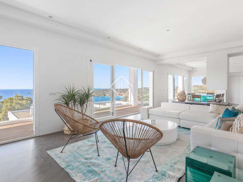 Discover these breathtaking minimalist villas nestled in an extraordinary hilltop location, where uncompromising luxury harmoniously merges with awe-inspiring views of the sea and mountains. As you enter through the automatic gates, a shared entrance welcomes you, gradually unveiling the panoramic vistas as you ascend the winding drive. These villas have been thoughtfully designed to embrace the Mediterranean lifestyle and offer an idyllic backdrop for experiencing the charms of the White Isle. Villa A spans an impressive 650 m², while Villa B encompasses 450 m². Both villas boast two generously proportioned floors, featuring four remarkable bedroom suites and exquisitely designed living areas that exude a cool and open ambiance. Floor-to-ceiling windows frame the captivating views, while the seamlessly integrated terraces effortlessly blend indoor and outdoor spaces. Expansive wooden decks and inviting pools create the perfect ambiance for relaxation and entertainment. Equipped with jacuzzis, they provide a serene spot for sipping cocktails as the sun sets on the horizon. Adding to its allure, Villa A features a remarkable roof terrace, complete with a Jacuzzi, loungers, parasols, a bar, a kitchen, and astonishing vistas that encompass the picturesque beach of Cala Tarida. Surrounded by enchanting gardens adorned with vibrant flowers and graceful palm trees, these villas offer a haven of tranquility. Both properties are equipped with modern conveniences, including a lift, air conditioning, Wi-Fi, an alarm system, video intercom, and a two-car garage with additional parking space for two more vehicles. Indulge in the epitome of luxury living with these remarkable villas, where every detail has been meticulously crafted to provide an extraordinary experience. Contact us today for further information and to arrange a viewing of these exceptional properties.