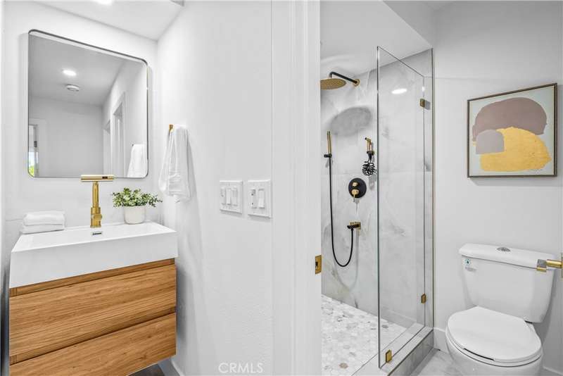 Showcasing stunning panoramic city lights, hills and mountain views is this completely renovated beauty that is situated as an end unit on a quiet, best in the complex street. Wait until you see this one! Enter through a private patio alcove into a light and bright charmer that really takes your breath away. With great light from all new view windows, warm and bright designer paint, and an abundance of living space you are drawn into a truly serene setting. Immediately off the entry is a completely redone guest bath and beyond is the living and dining room great room that has new dual sliding doors out to the expansive view patio. With ample room for a patio table and chairs this is the perfect spot to enjoy a morning cup of coffee or an evening glass of wine or cocktail while taking in the enchanting views. Adjoining the dining room is a fully renovated chef's kitchen which features all new quartz counters, all new stainless-steel appliances including a brand-new electric range, a matching brand-new microwave range hood and a brand-new dishwasher. With ample prep and storage space, and light from a large window over the sink with views out to the entry alcove, this is where the magic happens. Set up as a reverse floor plan, to take advantage of the stunning views, the bedrooms can be found downstairs, and one has a large sliding door out to a lower private patio and a renovated ensuite. The other is light and bright with a large window and a fully updated guest bath with a step-in shower completes the living spaces. With all new flooring and paint, new windows and sliding doors, recessed lighting and everything completely redone, this is the one! There is an attached direct access single car garage, and the entry alcove is set up with a large barn door style garage door making it a second dedicated parking spot. The views alone should sell this home and with everything done, two stunning bedrooms, and 2 car parking, what more could you ask for at this price point? Welcome Home!