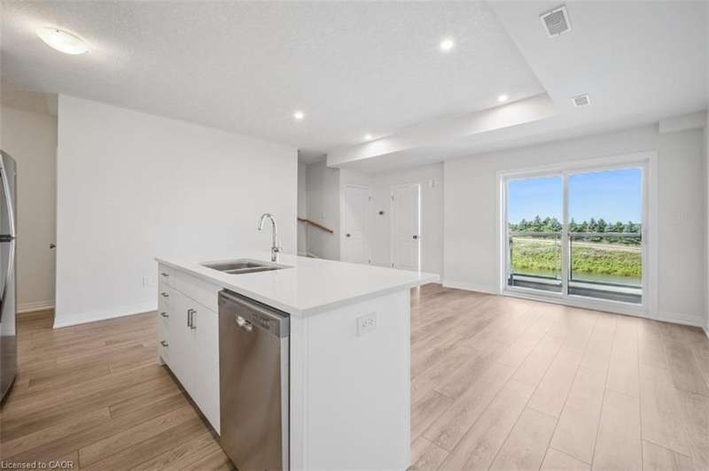 BRAND NEW ENERGY STAR® CERTIFIED STACKED TOWNHOMES NEAR SUNRISE SHOPPING CENTRE! FLEXIBLE MOVE-IN DATES — SECURE YOUR FAVOURITE UNIT TODAY AND MOVE IN ANYTIME NOW THROUGH JANUARY. PARKING INCLUDED! ENJOY QUICK ACCESS TO HIGHWAYS 7/8! Welcome to THE OKANAGAN— a multi-level suite with 2 bedroom, 2.5 bathrooms, high ceilings, premium finishes, and a bright open concept layout. The kitchen features sleek quartz countertops, subway tile backsplash, full-size stainless steel appliances, and an oversized island with plenty of storage, counter space, and breakfast bar seating. The master bedroom features a private ensuite with a glass enclosed walk-in shower and a large walk-in closet. Enjoy two private balconies - one off the living room and another off the master bedroom with breathtaking views of the pond and countryside. Enjoy the convenience of in-suite washer & dryer, and central air conditioning and heat for year round comfort. This family friendly community offers a brand new playground, basketball court, and scenic forested trails — perfect for staying active or simply enjoying the outdoors with your family. Sunrise Shopping Centre is minutes away giving you quick access to everything you need - Walmart, Old Navy, Shoppers Drug Mart, Winners, Starbucks, Canadian Tire, Dollarama, and more. Tenants receive exclusive discounts on Rogers TV and internet services. We are pet-friendly. Utilities are separate. Landlord is responsible for furnace filter replacements and water softener maintenance. Actual unit may vary in layout; interior finishes are consistent. Some photos are virtually staged. Great selection of 2 & 3 bedroom suites available. Connect with our leasing team for more information.