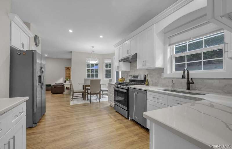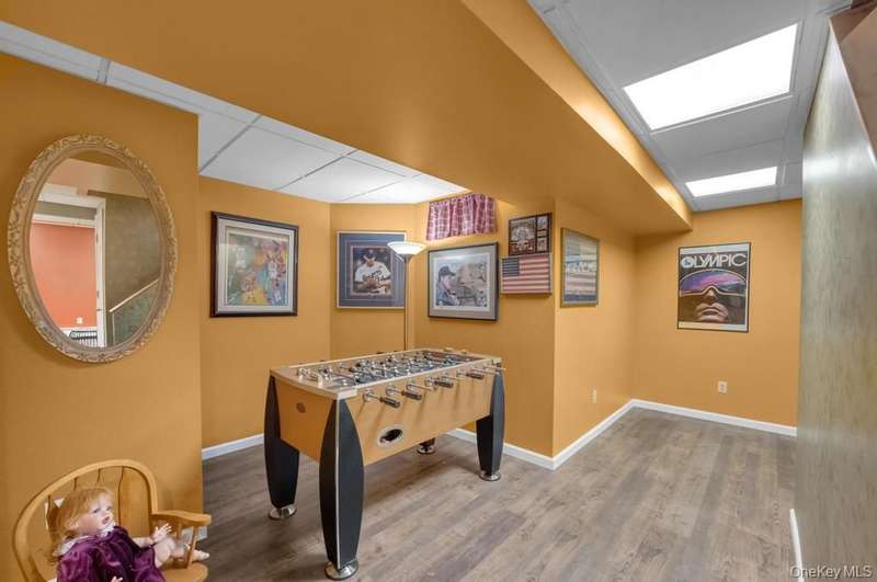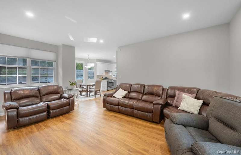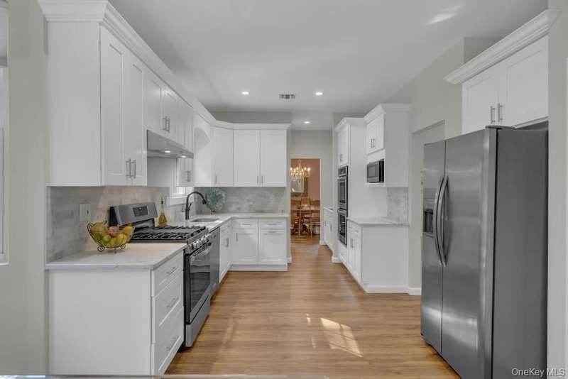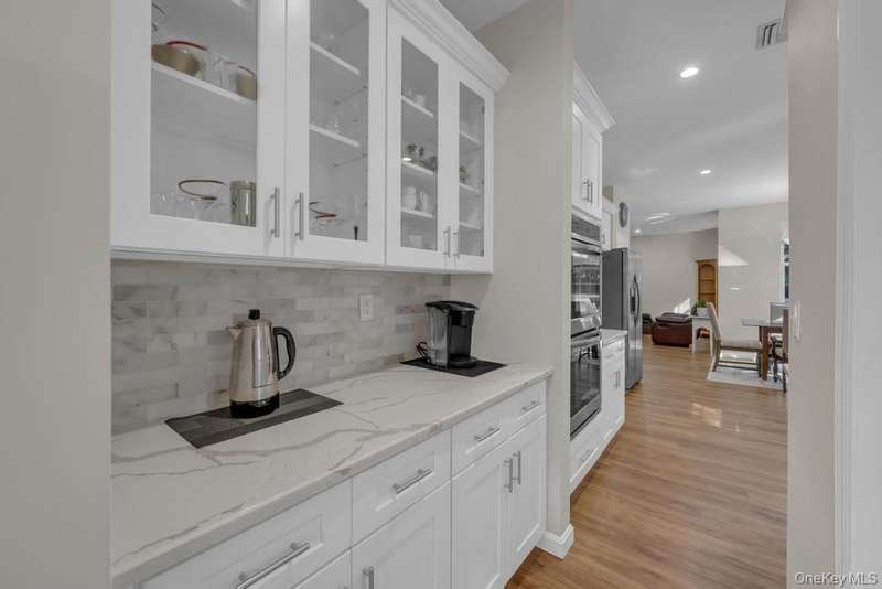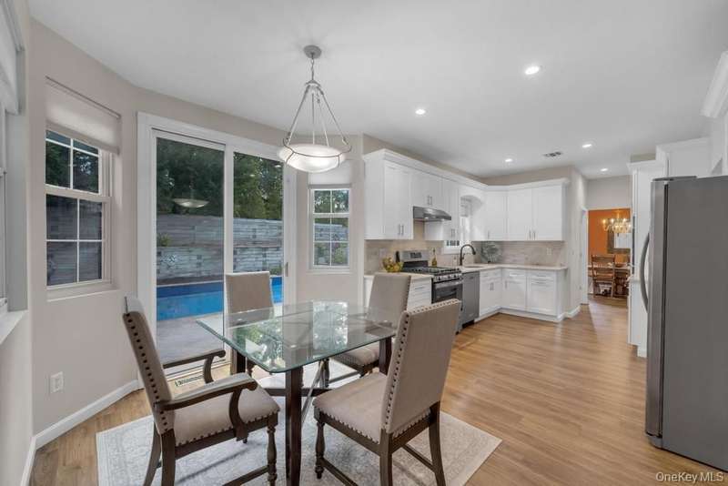 Welcome to 22 Whispering Woods Drive, located in the sought-after Smithtown School District! This beautiful home sits on a .35-acre property and boasts a true resort-style backyard. Step into the two-story entry foyer, where vaulted ceilings set the tone for this inviting home. The young, updated chef's kitchen is a true showstopper, offering plenty of counter space, a wine and coffee bar, and views of the stunning yard. Sliders off the kitchen lead to a paver patio, making summer barbecues easy and enjoyable. The yard is an entertainer's dream, featuring a sparkling inground pool with a new liner and heater, plus a relaxing hot tub. The first floor sitting room is the perfect place to unwind with a good book or can double as a home office. The thoughtful floor plan allows seamless entertaining between the living room, den, and kitchen, while the spacious dining room is ideal for hosting holiday gatherings. Upstairs, you'll find generously sized bedrooms, creating a private retreat for rest and relaxation. The full basement offers additional living space, perfect for a play area, home gym, or theater. Additional highlights include Updated roof and hot water system,150 Amp electric service, LED high hats throughout, Precast cesspool. This home blends style, function, and outdoor living for the ultimate lifestyle experience!