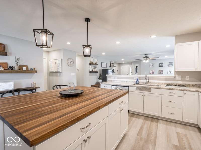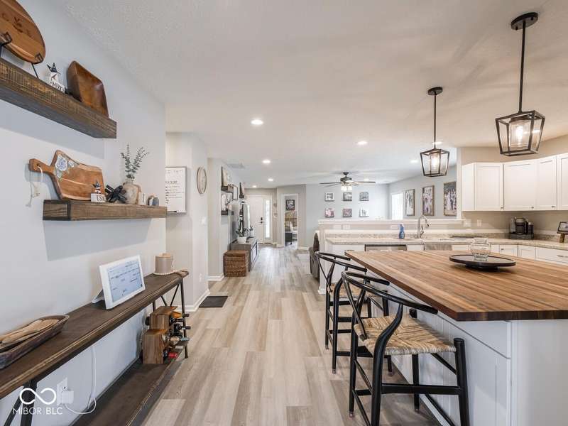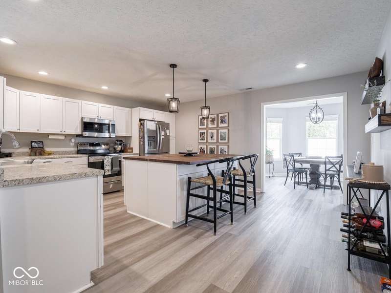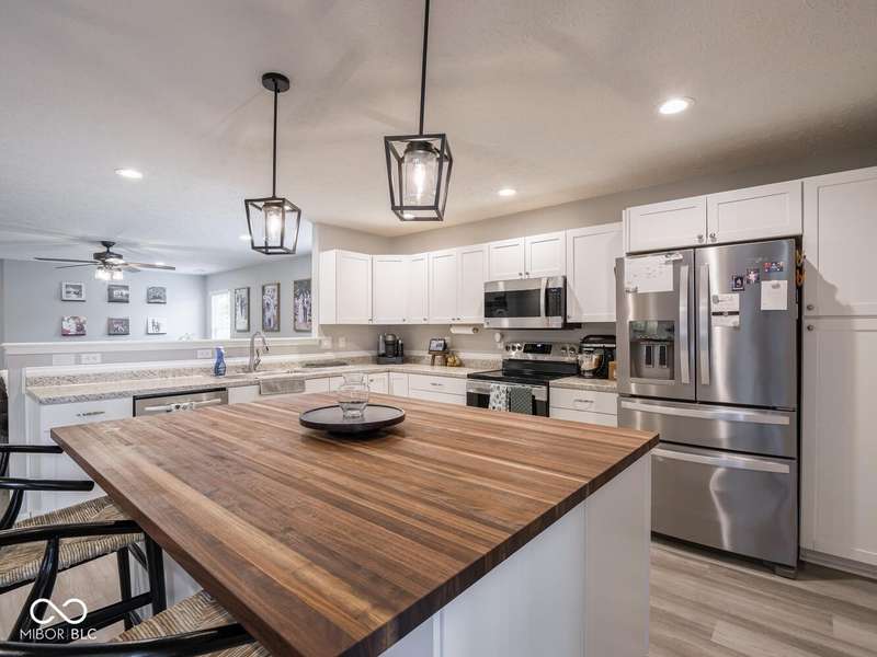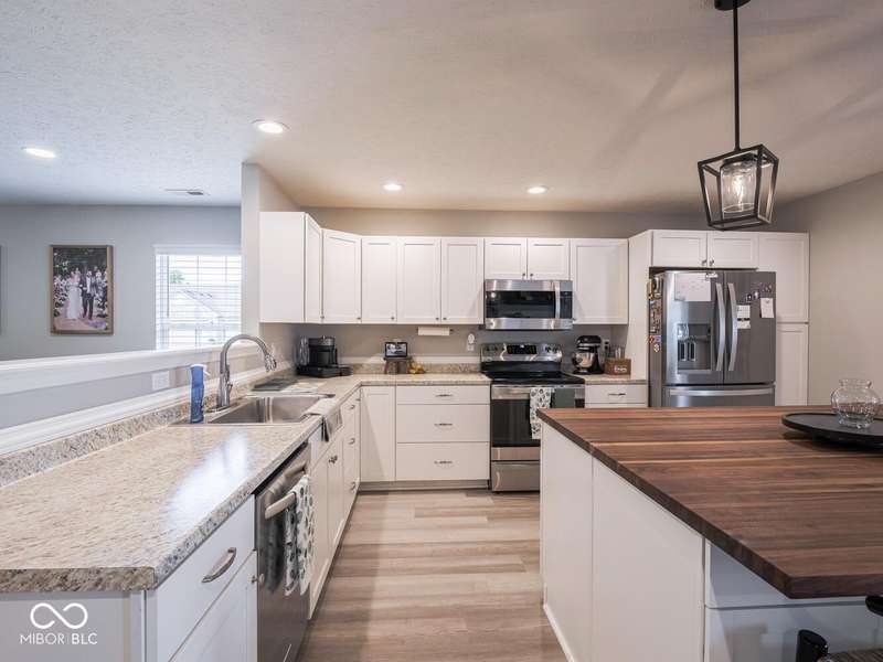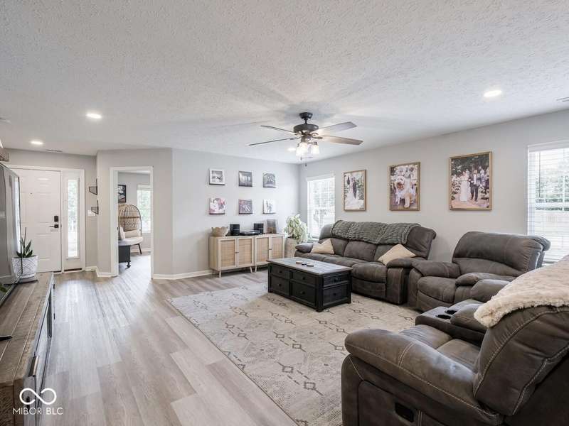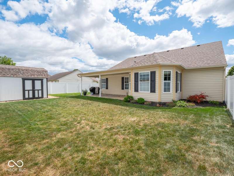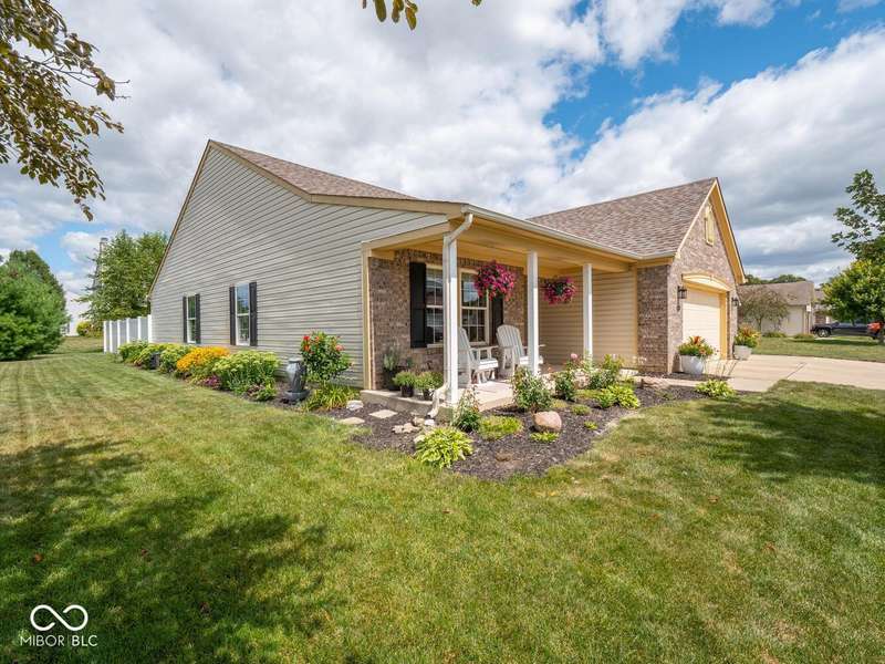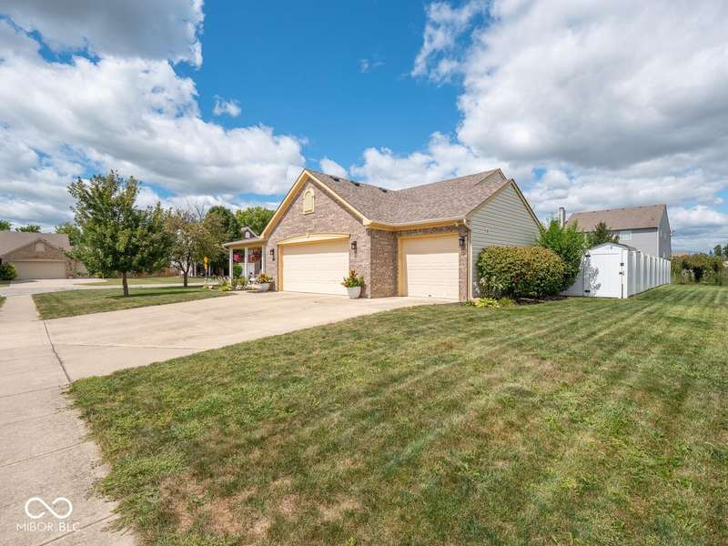 Don't miss this beautifully updated 3-bedroom ranch in Oriole Point. It features a spacious 3-car attached insulated garage and a host of recent upgrades built by local builder Westport Homes. Step inside to find fresh paint, new laminate flooring, added recessed LED lighting, updated light fixtures, door hardware, and an open-concept layout designed for both comfort and entertaining. The kitchen was recently renovated, boasting new cabinets, appliances, and a large center island-perfect for gatherings and everyday living. A bright sunroom/dining nook overlooks the backyard, complementing the large great room for added living space. The primary suite is a true retreat, complete with an updated bath offering double sinks and a custom-tiled walk-in shower. Outdoor living shines with a 22x10 covered patio, ideal for evening relaxation, and a large privacy vinyl fence enclosing the yard. A 12x10 mini barn offers additional storage. Peace of mind comes with significant updates, including a roof replacement in 2019. Move-in ready and thoughtfully upgraded, this home blends modern finishes with everyday functionality- all in a desirable Avon location close to shopping, dining, and top-rated schools.